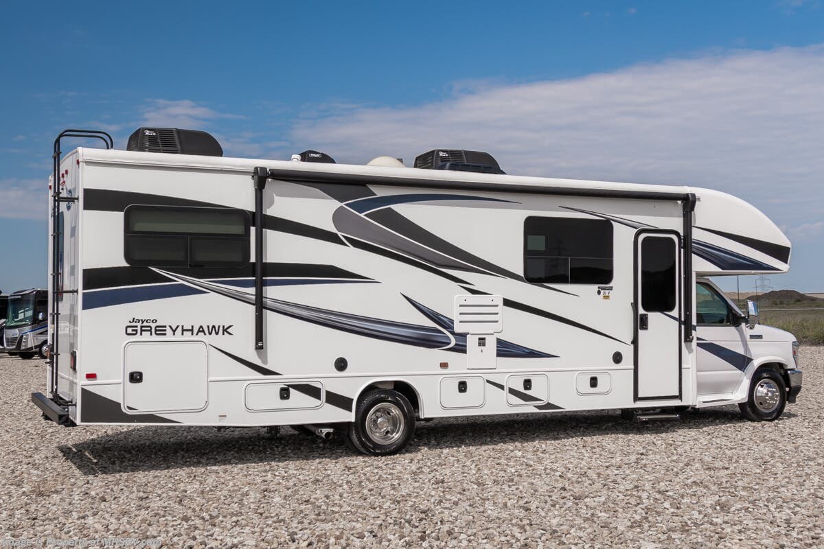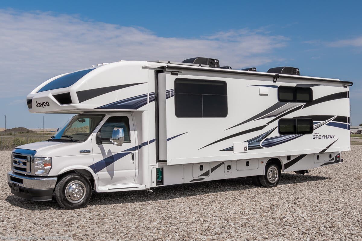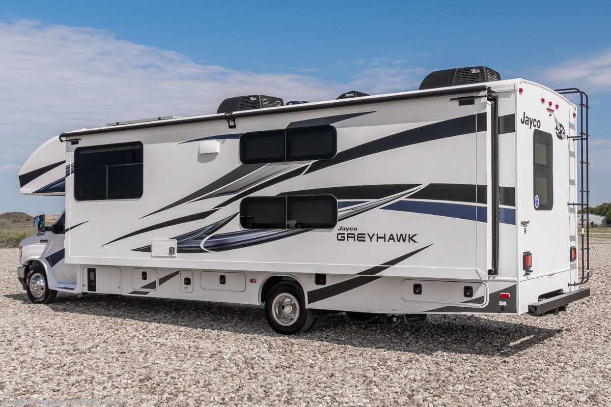 SOLD 10-14-2025 Used Jayco RV for sale – 2022 Jayco Greyhawk 31F is approximately 31’ 0” in length with 2,065 Miles, 1 slides and features LCI auto leveling jacks, 3 camera system, dual A/C’s, Onan gas generator, Ford chassis, Ford 7.3L gas engine, tilt steering wheel, tire monitoring system, keyless entry, power windows, patio awning, pass through storage, LED running lights, exterior shower, fiberglass roof, ladder, solar, inverter, leather seating, sleeper booth, 7 foot ceiling, 3 burner gas range with oven, overhead loft and much more. For additional details on this unit and our entire inventory including brochures, window sticker, videos, photos, reviews & testimonials as well as additional information about Motor Home Specialist and our manufacturers please visit us at MHSRV.com or call 800-335-6054 for our Texas location or 334-288-0331 for our Alabama location. At Motor Home Specialist, we DO NOT charge any prep or orientation fees like you will find at other dealerships. Read Thousands upon Thousands of 5-Star Reviews at MHSRV.com and See What They Had to Say About Their Experience at Motor Home Specialist.
