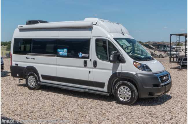 1-27-24 New 2023 Thor Motor Coach Tellaro is powered by the RAM® Promaster 3500 XT window van chassis, brought to life by a 3.6 liter V-6 with 280 horsepower and 260 lb-ft. of torque and is approximately 20 feet 11 inches in length. NEW Chassis Features include a 9 Speed Transmission, Digital Display & factory swivel seats from Ram! The Tellaro was made for the outdoor adventure with the bike racks able to fit two adult bikes & easily fold up out of the way, and patio awning with reinforced leg supports. This amazing new motor home also includes sliding screen door at entry way, multi-media touchscreen dash radio, back-up monitor, leatherette swivel captain’s chairs, keyless entry system, aluminum wheels, euro-style cabinet doors, premium window shades, large skylight, fold-able king bed, magnetic rear screen door, living area TV with outdoor viewing capability, WiFi 4G Winegard Connect, Onan generator, Rapid Camp multiplex control system, solar panel with solar charge controller, holding tanks with heat pads and so much more. This adventure-ready RV features the optional Power Pack Electrical System as well as the Pop-Top Sky Bunk with an additional large sleeping area for 2 and a vented skylight all while retaining your rooftop A/C! MSRP $169,512. For additional details on this unit and our entire inventory including brochures, window sticker, videos, photos, reviews & testimonials as well as additional information about Motor Home Specialist and our manufacturers please visit us at MHSRV.com or call 800-335-6054. At Motor Home Specialist, we DO NOT charge any prep or orientation fees like you will find at other dealerships. All sale prices include a 200-point inspection, interior & exterior wash, detail service and a fully automated high-pressure rain booth test and coach wash that is a standout service unlike that of any other in the industry. You will also receive a thorough coach orientation with an MHSRV technician, a night stay in our delivery park featuring landscaped and covered pads with full hook-ups and much more! Read Thousands upon Thousands of 5-Star Reviews at MHSRV.com and See What They Had to Say About Their Experience at Motor Home Specialist. WHY PAY MORE? WHY SETTLE FOR LESS?