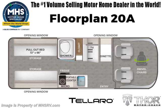 2023 Thor Motor Coach Tellaro 20A W/ New 9 Speed Tranmission, Power Pack, Pop-Top Sky Bunk, Large Digital Display, Truma & More Floorplan