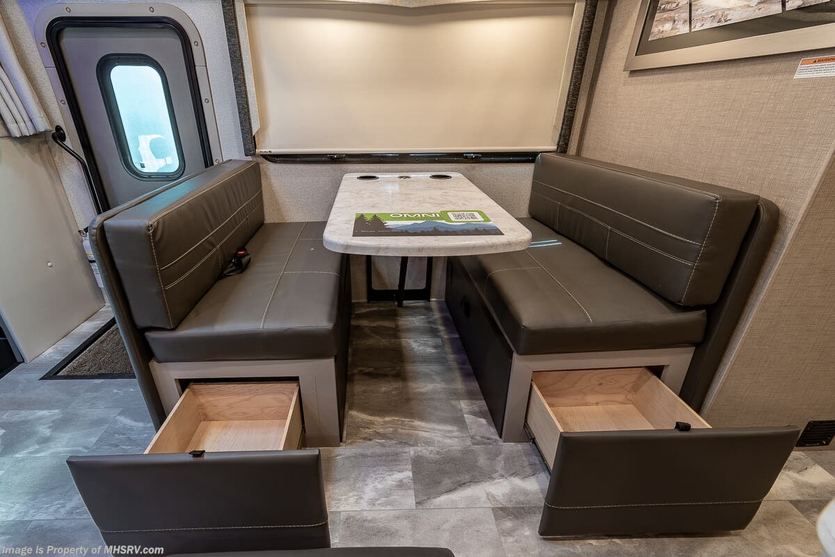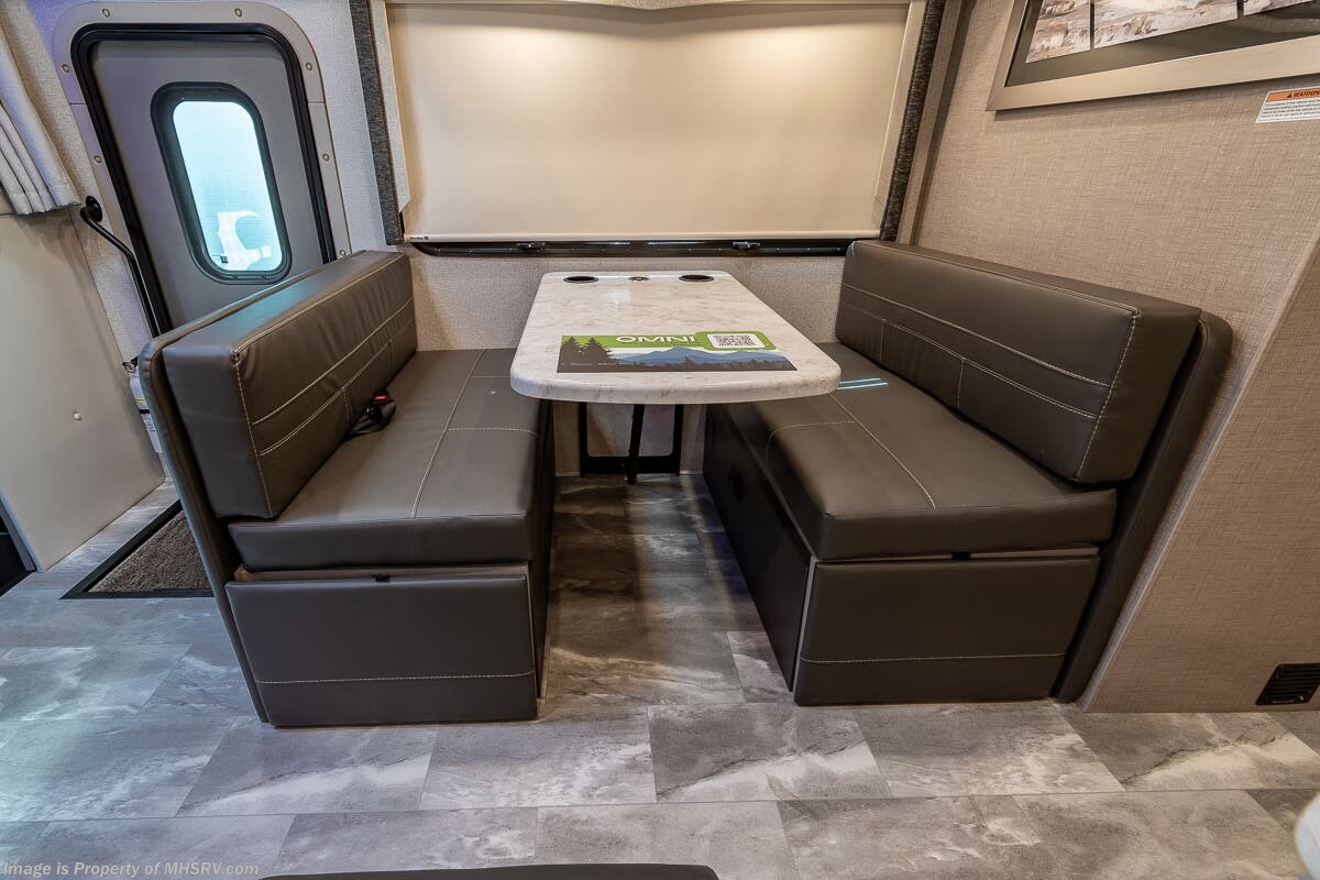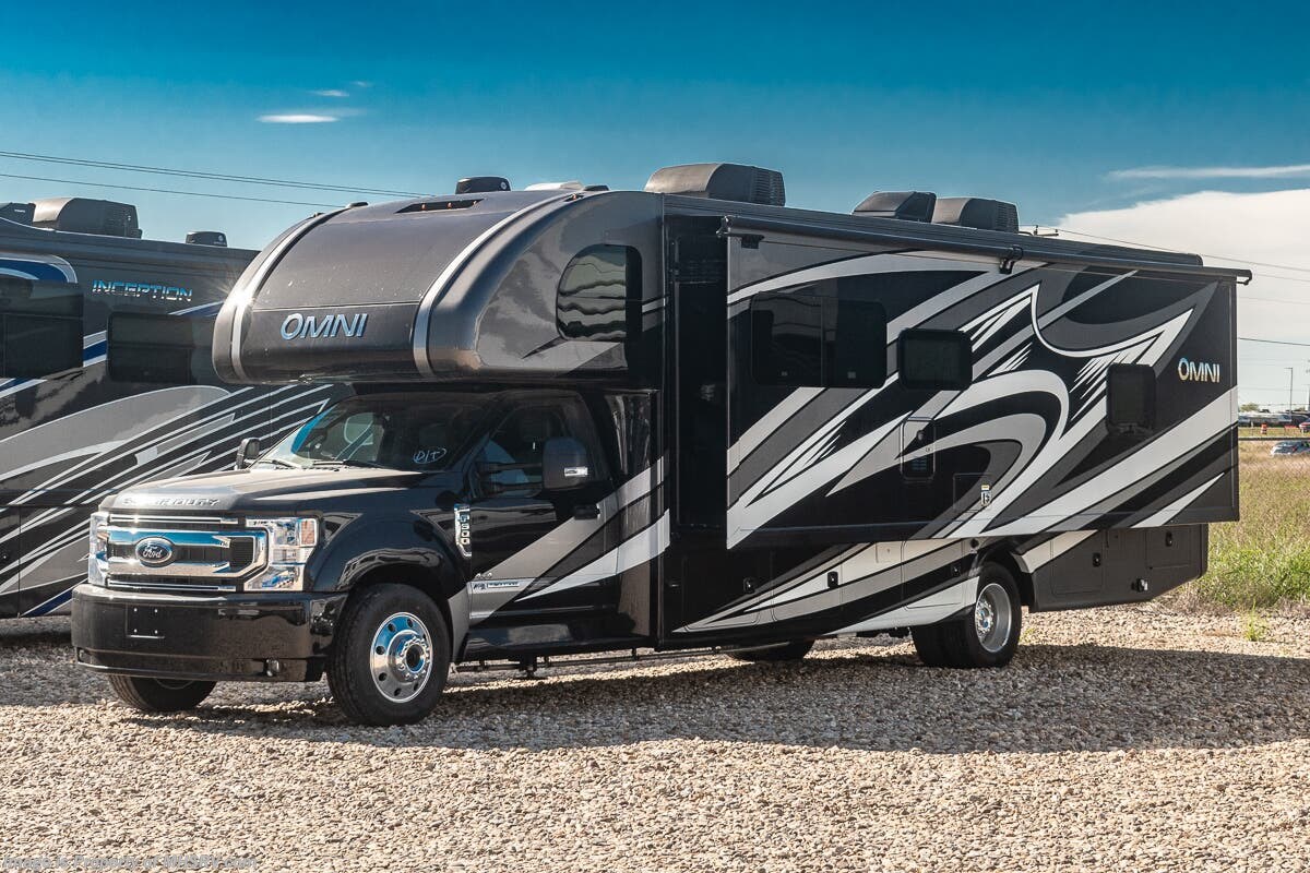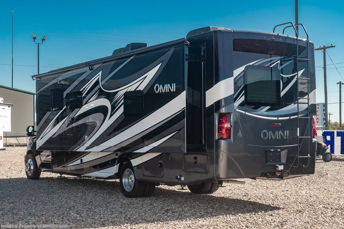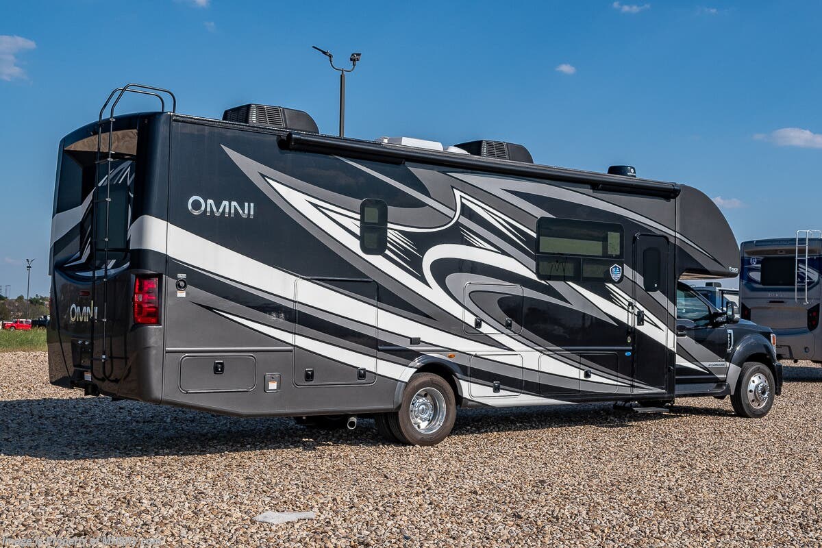 1/29/2024 MSRP $294,510. New 2023 Thor Motor Coach Omni SV34 Super C is approximately 35 feet 6 inches in length with a full wall slide and is powered by the Ford® 6.7L Power Stroke® V8 turbo diesel engine with 330HP, 825 lb.-ft. torque and 10 speed transmission with selectable drive modes including Tow/Haul, Eco, Deep Sand/Snow. Also includes a SYNC 3 Enhanced Voice Recognition Communications and Entertainment System, 8" Color LCD touchscreen with swiping capability, 911 assist, AppLink and smart-charging USB ports and navigation. This beautiful RV also features the optional upgraded cabinetry. The Omni Super C also features a 3 camera monitoring system, aluminum wheels, automatic leveling jacks, power patio awning with LED lighting, frameless windows, keyless entry, residential refrigerator, large OTR convection microwave, solid surface kitchen counter top, ball bearing drawer guides, king size bed, large TV in living area, exterior entertainment center with sound bar, 6KW Onan diesel generator with automatic generator start, multiplex wiring control system, tankless water heater, 1800-watt inverter and much more. For additional details on this unit and our entire inventory including brochures, window sticker, videos, photos, reviews & testimonials as well as additional information about Motor Home Specialist and our manufacturers please visit us at MHSRV.com or call 800-335-6054. At Motor Home Specialist, we DO NOT charge any prep or orientation fees like you will find at other dealerships. All sale prices include a 200-point inspection, interior & exterior wash, detail service and a fully automated high-pressure rain booth test and coach wash that is a standout service unlike that of any other in the industry. You will also receive a thorough coach orientation with an MHSRV technician, a night stay in our delivery park featuring landscaped and covered pads with full hook-ups and much more! Read Thousands upon Thousands of 5-Star Reviews at MHSRV.com and See What They Had to Say About Their Experience at Motor Home Specialist. WHY PAY MORE? WHY SETTLE FOR LESS?