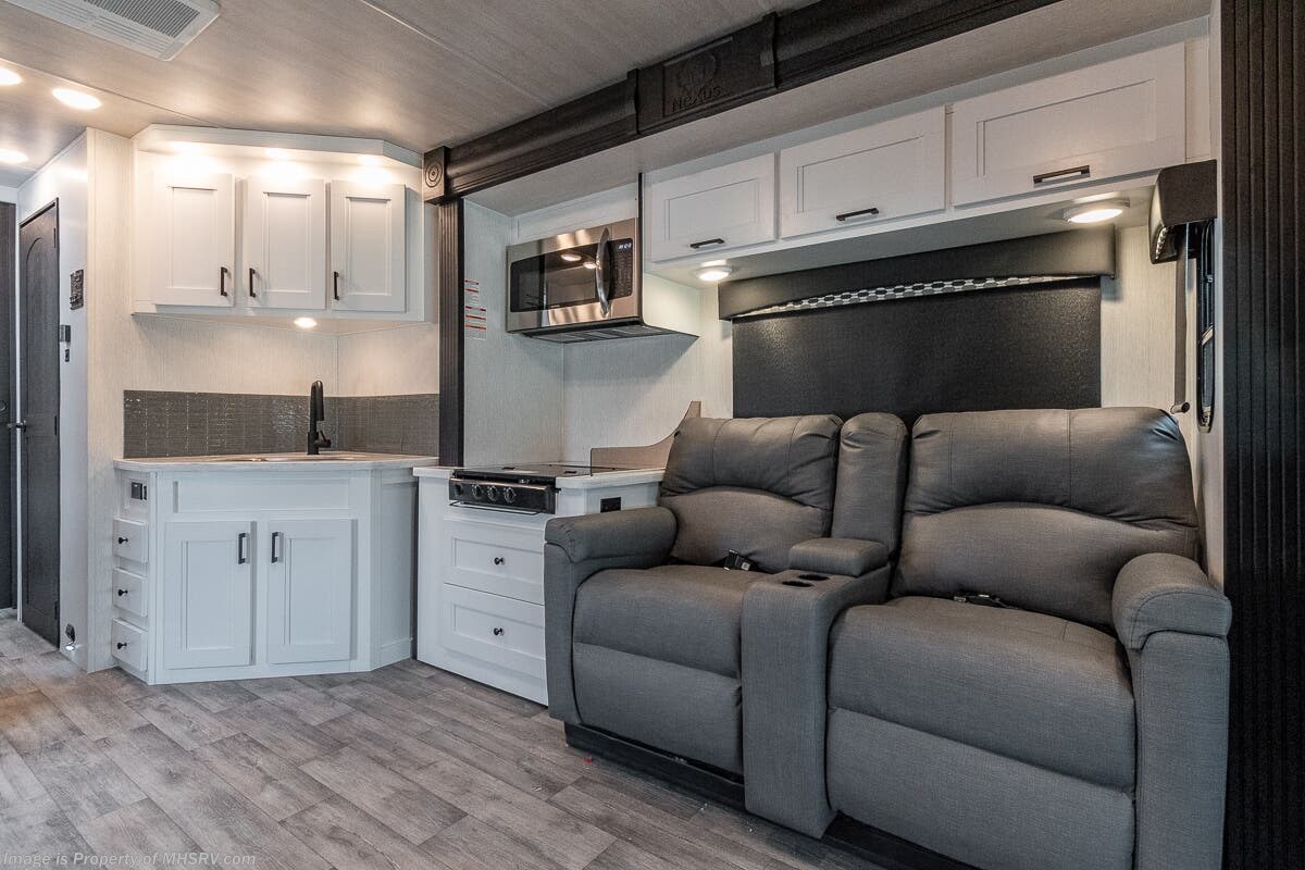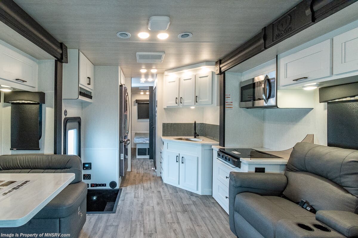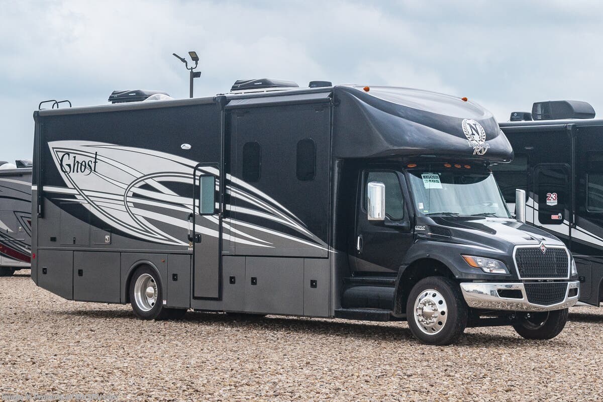 4/20/2024 M.S.R.P. $333,475- New 2024 Nexus Ghost 33DS Luxury International Diesel Super C RV for Sale at Motor Home Specialist; the #1 Volume Selling Motor Home Dealership in the World. This unit is approximately 34 feet in length and features 3 slides, a 360HP Cummins diesel engine, International chassis, and a king bed. Options include the deluxe 4-color full body paint exterior, theater seating, exterior entertainment center, Mobileye collision warning and solar. This luxurious RV also features the Ghost Value Package which includes a 6-speed 3000 series transmission, composite substrate in walls and roof, high strength alloy steel frame throughout, one piece fiberglass cap and metal HVAC ducting. Additional features found in the Nexus RV include galvanized steel storage boxes, heated and enclosed holding tanks, upgraded flooring and "plug and play" electrical harnesses throughout the coach making every Nexus RV's electrical system more dependable. Strength, Safety and Customer Satisfaction are the 3 cornerstones found in every Nexus RV. The strength of the International chassis is nothing short of legendary and the 360HP diesel engine delivers exceptional power and performance. The construction of the Nexus RV far exceeds the industry norm. First, and arguable foremost, the Nexus RV boast an all STEEL cage construction instead of the normal aluminum framed construction found in the competition. Steel cage construction is 72% stronger than aluminum and is only common place is RVs such as the Foretravel Realm or a Prevost bus conversion; both of which would have an M.S.R.P. value well over $1 million dollars! That same commitment to strength and safety is found throughout the Nexus line-up. You will also find construction highlights such as 2 layers of Azdel substrate in the sidewalls & roof! The Azdel product provides 3X the insulation value of wood and is 50% lighter which will help optimize your engine’s performance and fuel economy, and because it is not a wood material harvested from the rain forest it is both greener and provides a less that 1% chance of retaining any moisture that could ever lead to wall separation or mold. It is also formaldehyde free, impact resistant and a sound absorbing material creating a much quieter RV. To further protect and insulate the RV from the elements Nexus utilizes high grade UV protected automotive window seals. The roof is a pre-stamped metal roof truss system that is further highlighted by the exterior layer of seamless fiberglass as opposed to the normal TPO or "rubber roofs" found in most RVs built today. The steel roof is also designed to incorporate Nexus RV's Easy-Flow Air Distribution system. This HVAC ducting is a tried-and-true system that provides more evenly distributed A/C throughout the coach as well as helps promote cleaner air and reduce allergens. For additional details on this unit and our entire inventory including brochures, window sticker, videos, photos, reviews & testimonials as well as additional information about Motor Home Specialist and our manufacturers please visit us at MHSRV.com or call 800-335-6054. At Motor Home Specialist, we DO NOT charge any prep or orientation fees like you will find at other dealerships. All sale prices include a 200-point inspection, interior & exterior wash, detail service and a fully automated high-pressure rain booth test and coach wash that is a standout service unlike that of any other in the industry. You will also receive a thorough coach orientation with an MHSRV technician, a night stay in our delivery park featuring landscaped and covered pads with full hook-ups and much more! Read Thousands upon Thousands of 5-Star Reviews at MHSRV.com and See What They Had to Say About Their Experience at Motor Home Specialist. WHY PAY MORE? WHY SETTLE FOR LESS?