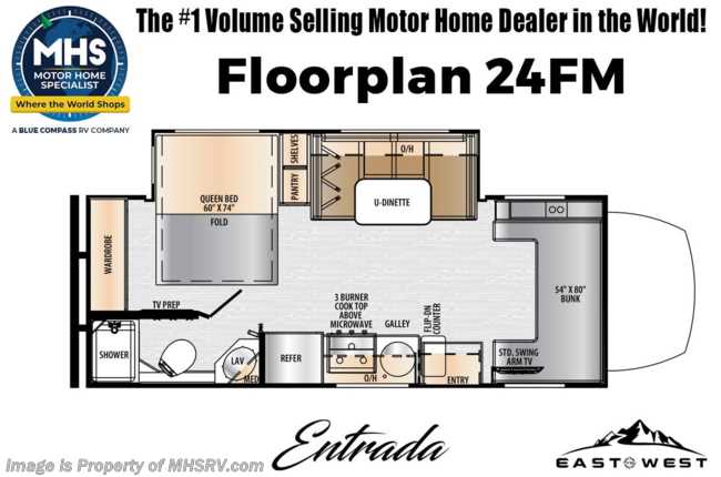 SOLD 8-7-2025 MSRP $176,525. New 2025 Entrada M Class from Forest River 24FM Model measures approximately 25 feet 7 inches in length and features the Mercedes-Benz Sprinter 3500 chassis. Special new features include active braking & lane assist, wet wiper system, distance regulator, navigation system, new frontcap with windshield, new interior and voice command steering wheel integration. This RV comes with optional automatic leveling jacks and roof mounted solar. You will also find the Entrada Value Package boasting a generator, 30K BTU furnace, back up & side view camera with monitor, Winegard Air 360+ Antenna, large refrigerator, slide room toppers, fiberglass running boards, reinforced sidewalls, tank heaters, upgraded A/C, and the exterior LP quick connect. East to West is a division of Forest River. East to West takes pride in the five guiding principles and corporate philosophy which focuses on people working together to create high-quality, value-added products that deliver the ultimate RV experience. You’ll find all of this and much more in each Entrada built. Shop hundreds of class C gas RVs at 1 location! Choose from Fleetwood Altitude - Gulf Stream BT Cruiser - Thor Chateau - Four Winds - Geneva and Quantum - Entegra Coach Odyssey Odyssey SE and Esteem - East to West Entrada - Forest River Forester - Forester LE - Nexus Phantom - Viper and much more. We also sell quality pre-owned models such as Jayco Greyhawk – Redhawk - Redhawk SE - Thor Magnitude - Winnebago Spirit - and Minnie Winnie - Coachmen Freelander and Leprechaun - Forest River Sunseeker Classic - Sunseeker LE – Solera - Holiday Rambler Incline and much more. Visit MHSRV.com for our complete line-up and the sale prices that have made us the #1 volume selling motor home dealership in the world 12 years in a row! ! For more complete details on this unit and our entire inventory including brochures, window sticker, videos, photos, reviews & testimonials as well as additional information about Motor Home Specialist and our manufacturers please visit us at MHSRV.com or call 800-335-6054. All sale prices include a multi-point inspection, interior & exterior wash, detail service, and a fully automated high-pressure rain booth test and coach wash that is a standout service unlike that of any other in the industry. You will also receive a thorough coach orientation with an MHSRV technician, a night stay in our delivery park featuring landscaped and covered pads with full hook-ups, and much more! Read Thousands upon Thousands of 5-Star Reviews at MHSRV.com and see what they had to say about their experience at Motor Home Specialist. MHSRV.com or 800-335-6054 - Why Pay More? Why Settle for Less?