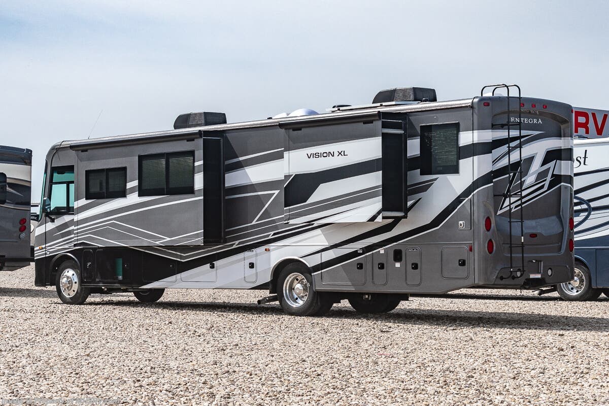 MSRP $248,739. The All-New 2025 Entegra Coach Vision XL 36A Class A Luxury RV for sale at Motor Home Specialist; the #1 Volume Selling Motor Home Dealership in the World. The Entegra Coach Vision XL is built for your next adventure and includes all new features such as new exterior graphics package, all new full body paint exteriors, infotainment center changed to Sony w/apple car play and android auto, solid surface counters upgraded to match in bathroom and bedroom. This amazing RV boasts Customer Value Package which features 5.5 KW generator, 50 amp electrical service, 1,200 watt inverter, Automatic hydraulic leveling jacks, Backup and sideview camera, Driver/passenger cockpit table, Electric awning with LED lights, Exterior entertainment center with LED TV and single disc DVD/FM radio, Frameless windows, Infotainment system, E-Z Drive Elite package, LED TV in living room, Roller shades, Slideout cover awnings and Solid-surface kitchen countertops. Optional equipment includes the beautiful full body paint, front overhead bunk, theater seats, combination washer/dryer and upgraded interior. The Vision XL's impressive list of standard features that truly set it apart from the competition include Entegra's unparalleled 2 year warranty, one-piece fiberglass front cap, panoramic windshield with power shade, seamless crowned fiberglass roof, ball-bearing drawer guides, large shower and much more. **Unit Not California CARB Compliant and Cannot be Registered in California**. Shop hundreds of class A motorhomes all at 1 location! Choose from Thor A.C.E. – Resonate – Hurricane – Windsport – Luminate – Indigo – Vegas – Axis – Challenger – Miramar Fleetwood Flair – Fortis – Flex – Bounder - Forest River Georgetown - FR3 – Entegra Coach Vision – Vision XL – Emblem – Holiday Rambler Admiral – Eclipse – Invicta – Vacationer - and much more. We also sell quality pre-owned models such as Jayco Alante SE – Alante – Precept – Precept Prestige – Tiffin Allegro Open Road – Newmar Canyon Star – Bay Star – Winnebago Vista – Sunstar – Adventurer – Coachmen Mirada – Pursuit - Encore and much more. Visit MHSRV.com for our complete line-up and the sale prices that have made us the #1 volume selling motor home dealership in the world 12 years in a row! For additional details on this unit and our entire inventory including brochures, window sticker, videos, photos, reviews & testimonials as well as additional information about Motor Home Specialist and our manufacturers please visit us at MHSRV.com or call 800-335-6054. At Motor Home Specialist, we DO NOT charge any prep or orientation fees like you will find at other dealerships. All sale prices include a multi-point inspection, interior & exterior wash, detail service and a fully automated high-pressure rain booth test and coach wash that is a standout service unlike that of any other in the industry. You will also receive a thorough coach orientation with an MHSRV technician, a night stay in our delivery park featuring landscaped and covered pads with full hook-ups and much more! Read Thousands upon Thousands of 5-Star Reviews at MHSRV.com and see what they had to say about their experience at Motor Home Specialist. MHSRV.com or 800-335-6054 - Why Pay More? Why Settle for Less?