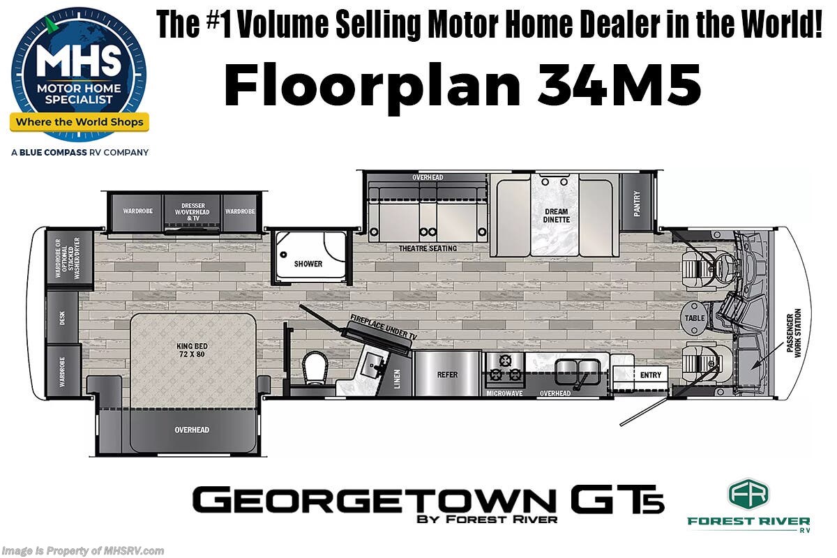 2025 Forest River Georgetown GT5 34M5 RV W/ King Bed, Fireplace, Theater Seats, Washer/Dryer & More Floorplan