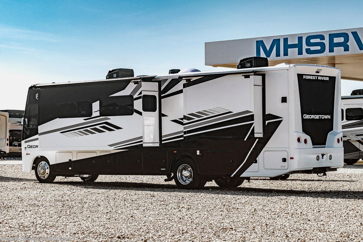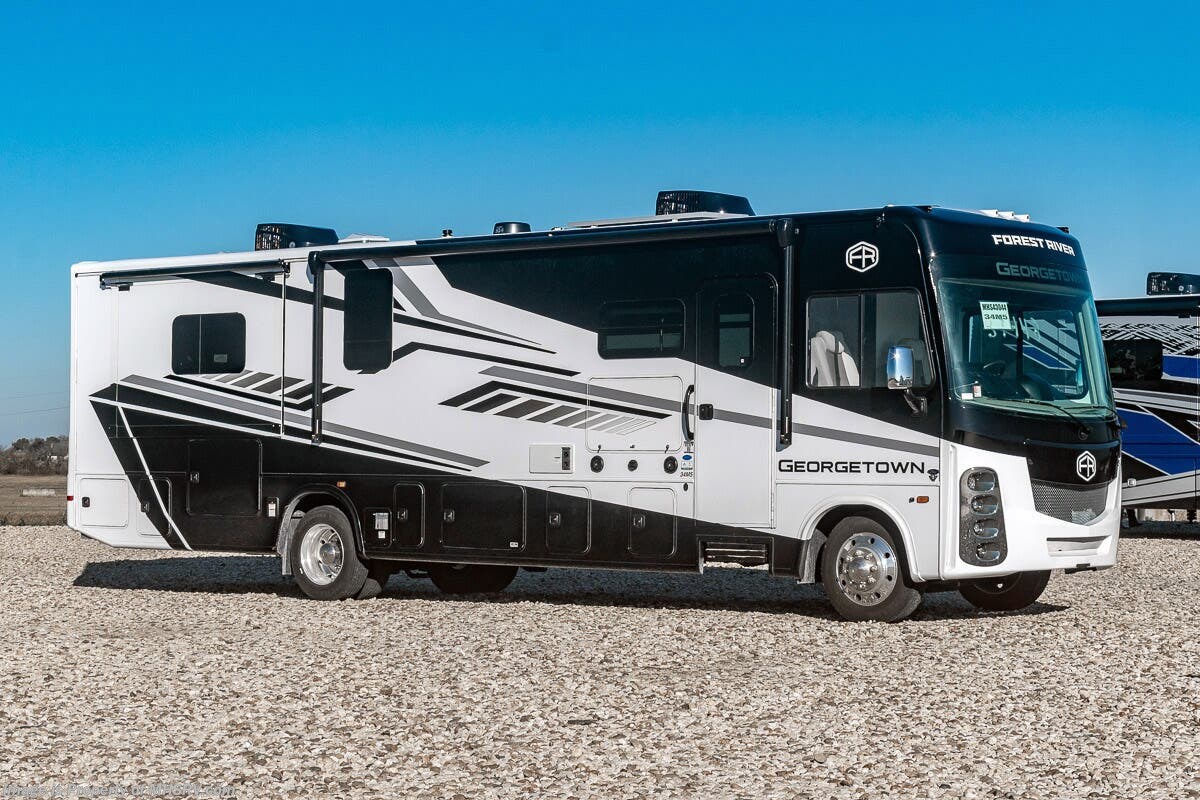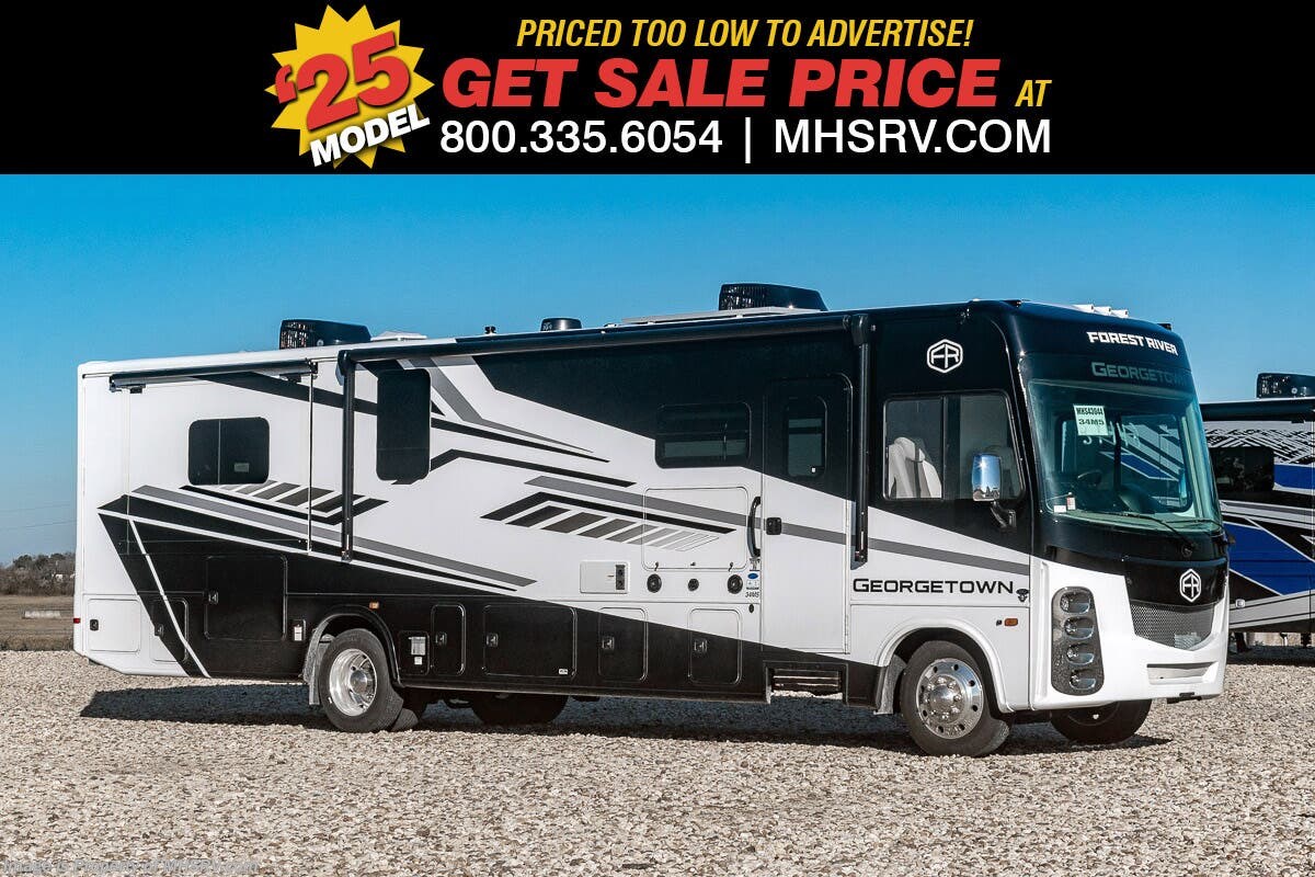 SOLD 10-24-2025 MSRP $224,716. New 2025 Forest River Georgetown 5 Series GT5 Model 34M5. The Georgetown 34M5 measures approximately 37 feet 11 inch in length. Floor plan highlights include (3) slide-out rooms, theater seating, a king size bed in the master suite, and a massive living and dining area perfect for the big families and extended stays! It rides the Ford® chassis with high performance 7.3L PFI V-8. You will also find a 6-speed TorqShift® automatic transmission, an updated instrument cluster, automatic headlights and a tilt and telescoping steering wheel. In addition, this RV features the Artic package, forced air heat for holding tanks, CPAP Prep, porcelain toilet, solid surface kitchen countertops and raised panel solid wood cabinet doors. Optional equipment includes the Stackable washer/dryer. Shop hundreds of class A motorhomes all at 1 location! Choose from Thor A.C.E. – Resonate – Hurricane – Windsport – Luminate – Indigo – Vegas – Axis – Challenger – Miramar Fleetwood Flair – Fortis – Flex – Bounder - Forest River Georgetown - FR3 – Entegra Coach Vision – Vision XL – Emblem – Holiday Rambler Admiral – Eclipse – Invicta – Vacationer - and much more. We also sell quality pre-owned models such as Jayco Alante SE – Alante – Precept – Precept Prestige – Tiffin Allegro Open Road – Newmar Canyon Star – Bay Star – Winnebago Vista – Sunstar – Adventurer – Coachmen Mirada – Pursuit - Encore and much more. Visit MHSRV.com for our complete line-up and the sale prices that have made us the #1 volume selling motor home dealership in the world 12 years in a row! For additional details on this unit and our entire inventory including brochures, window sticker, videos, photos, reviews & testimonials as well as additional information about Motor Home Specialist and our manufacturers please visit us at MHSRV.com or call 800-335-6054. At Motor Home Specialist, we DO NOT charge any prep or orientation fees like you will find at other dealerships. All sale prices include a 200-point inspection, interior & exterior wash, detail service and a fully automated high-pressure rain booth test and coach wash that is a standout service unlike that of any other in the industry. You will also receive a thorough coach orientation with an MHSRV technician, a night stay in our delivery park featuring landscaped and covered pads with full hook-ups and much more! Read Thousands upon Thousands of 5-Star Reviews at MHSRV.com and See What They Had to Say About Their Experience at Motor Home Specialist. WHY PAY MORE? WHY SETTLE FOR LESS?