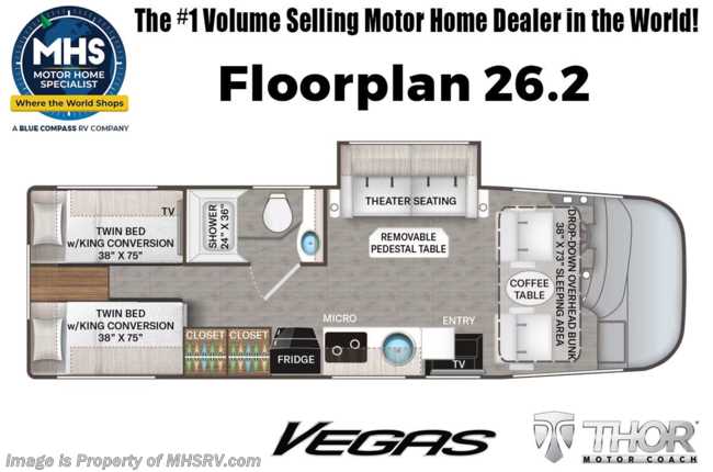 2025 Thor Motor Coach Vegas 26.2 W/ Electric Stabilizer System, Pwr Drivers Seat, OH Loft & Theater Seating Floorplan