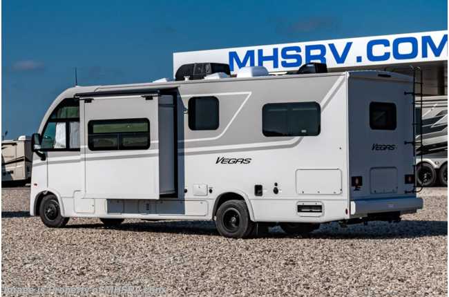 SOLD 8-6-2025 MSRP $186,991. New 2025 Thor Motor Coach Vegas RUV Model 26.2. This RV measures approximately 27 feet 2 inches in length and features a drop-down overhead loft, slide-out and a bedroom TV. The Vegas also features the new Ford E-Series chassis with a 7.3L V-8 engine and a six speed automatic transmission. This beautiful RV features the optional Electric Stabilizing system, full body paint and power drivers seat. The Vegas also boasts an impressive list of standard features including the Winegard Connect 2.0 WiFi, rotary battery disconnect switch, adjustable shelving bracketry, Rapidcamp + Multiplex system, power privacy shade on windshield, tankless water heater, touchscreen radio that features navigation and back-up monitor, , lateral power patio awning with integrated LED lighting and much more. Shop hundreds of class A motorhomes all at 1 location! Choose from Thor A.C.E. – Resonate – Hurricane – Windsport – Luminate – Indigo – Vegas – Axis – Challenger – Miramar Fleetwood Flair – Fortis – Flex – Bounder - Forest River Georgetown - FR3 – Entegra Coach Vision – Vision XL – Emblem – Holiday Rambler Admiral – Eclipse – Invicta – Vacationer - and much more. We also sell quality pre-owned models such as Jayco Alante SE – Alante – Precept – Precept Prestige – Tiffin Allegro Open Road – Newmar Canyon Star – Bay Star – Winnebago Vista – Sunstar – Adventurer – Coachmen Mirada – Pursuit - Encore and much more. Visit MHSRV.com for our complete line-up and the sale prices that have made us the #1 volume selling motor home dealership in the world 12 years in a row! For additional details on this unit and our entire inventory including brochures, window sticker, videos, photos, reviews & testimonials as well as additional information about Motor Home Specialist and our manufacturers please visit us at MHSRV.com or call 800-335-6054. At Motor Home Specialist, we DO NOT charge any prep or orientation fees like you will find at other dealerships. All sale prices include a 200-point inspection, interior & exterior wash, detail service and a fully automated high-pressure rain booth test and coach wash that is a standout service unlike that of any other in the industry. You will also receive a thorough coach orientation with an MHSRV technician, a night stay in our delivery park featuring landscaped and covered pads with full hook-ups and much more! Read Thousands upon Thousands of 5-Star Reviews at MHSRV.com and See What They Had to Say About Their Experience at Motor Home Specialist. WHY PAY MORE? WHY SETTLE FOR LESS?