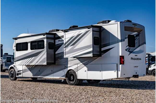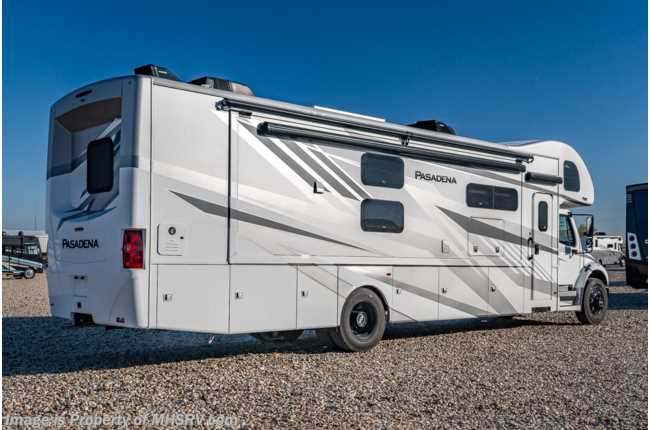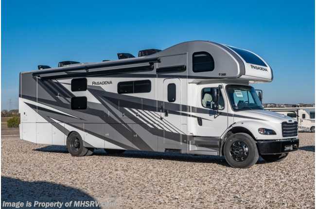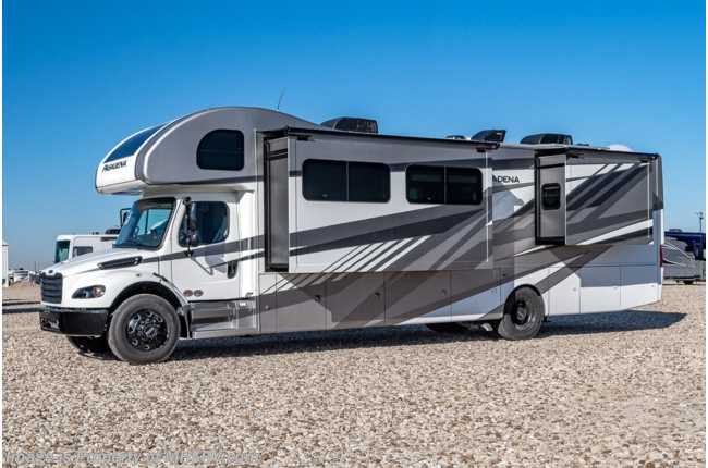 SOLD 4/1/2025 MSRP $376,703. New 2025 Thor Motor Coach Pasadena 38XL Bath & ½ Bunk Model. This luxury Super C is approximately 39 feet 10 inches in length with a Freightliner chassis, Cummins 6.7L ISB engine w/360HP, Tilt-A-View inclining King Bed, stainless residential refrigerator with ice maker, exterior entertainment center, and a spacious dream dinette. Options include the solar charging system. This beautiful motorhome includes upgraded features such as the dual 15K BTU A/Cs with dual heat pumps, LVT tile flooring, solar charging now monitored through the Firefly monitor panel, shower miser, Oxygenics shower head, new hardwood cabinet doors, new decorative mirror and the upgraded storage box in home theater seating. The Pasadena has an incredible list of standard features including the air-ride suspension, full-hydraulic automatic leveling jack system, 8KW Onan diesel generator, solar panel, tankless water heater, legless power patio awning, frameless dual pane windows, Winegard ConnecT 4G Wi-Fi System and much more. **Unit Not California CARB Compliant and Cannot be Registered in California**. Shop hundreds of motorhomes including Super C RVs at 1 location! Choose from Entegra Accolade – Accolade XL – Accolade XT – Esteem XL – Dynamax DX3 – Dynaquest XL – Europa – isata 5 - Thor Magnitude – Magnitude Grand – Omni – Omni Trail – Pasadena – Inception - East to West Bravado – Nexus Ghost – Wraith – Rebel – Verrado and much more. We also sell quality pre-owned models such as Jayco Seneca XT – Seneca – Seneca Prestige - Greyhawk XL – Tiffin Allegro Bay – Newmar Super Star – Supreme Aire – Renegade Veracruz – Valencia – Verona – Verona LE – Explorer – Coachmen Entourage and much more. Visit MHSRV.com for our complete line-up and the sale prices that have made us the #1 volume selling motor home dealership in the world 12 years in a row! For additional details on this unit and our entire inventory including brochures, window sticker, videos, photos, reviews & testimonials as well as additional information about Motor Home Specialist and our manufacturers please visit us at MHSRV.com or call 800-335-6054. At Motor Home Specialist, we DO NOT charge any prep or orientation fees like you will find at other dealerships. All sale prices include a multi-point inspection, interior & exterior wash, detail service and a fully automated high-pressure rain booth test and coach wash that is a standout service unlike that of any other in the industry. You will also receive a thorough coach orientation with an MHSRV technician, a night stay in our delivery park featuring landscaped and covered pads with full hook-ups and much more! Read Thousands upon Thousands of 5-Star Reviews at MHSRV.com and see what they had to say about their experience at Motor Home Specialist. MHSRV.com or 800-335-6054 - Why Pay More? Why Settle for Less?