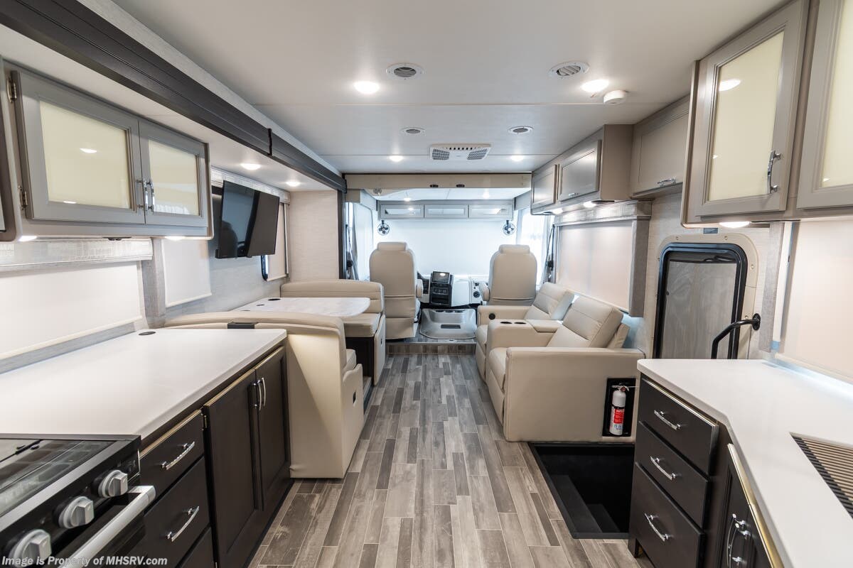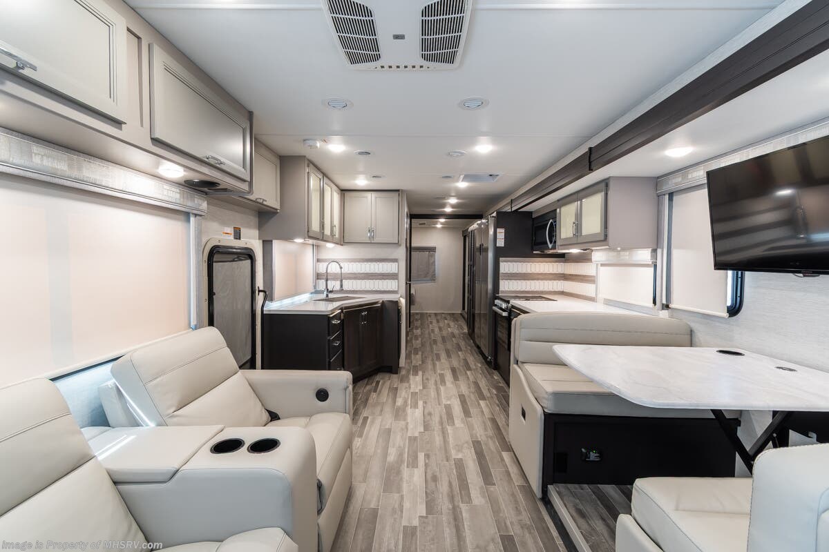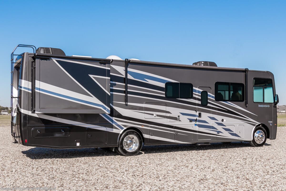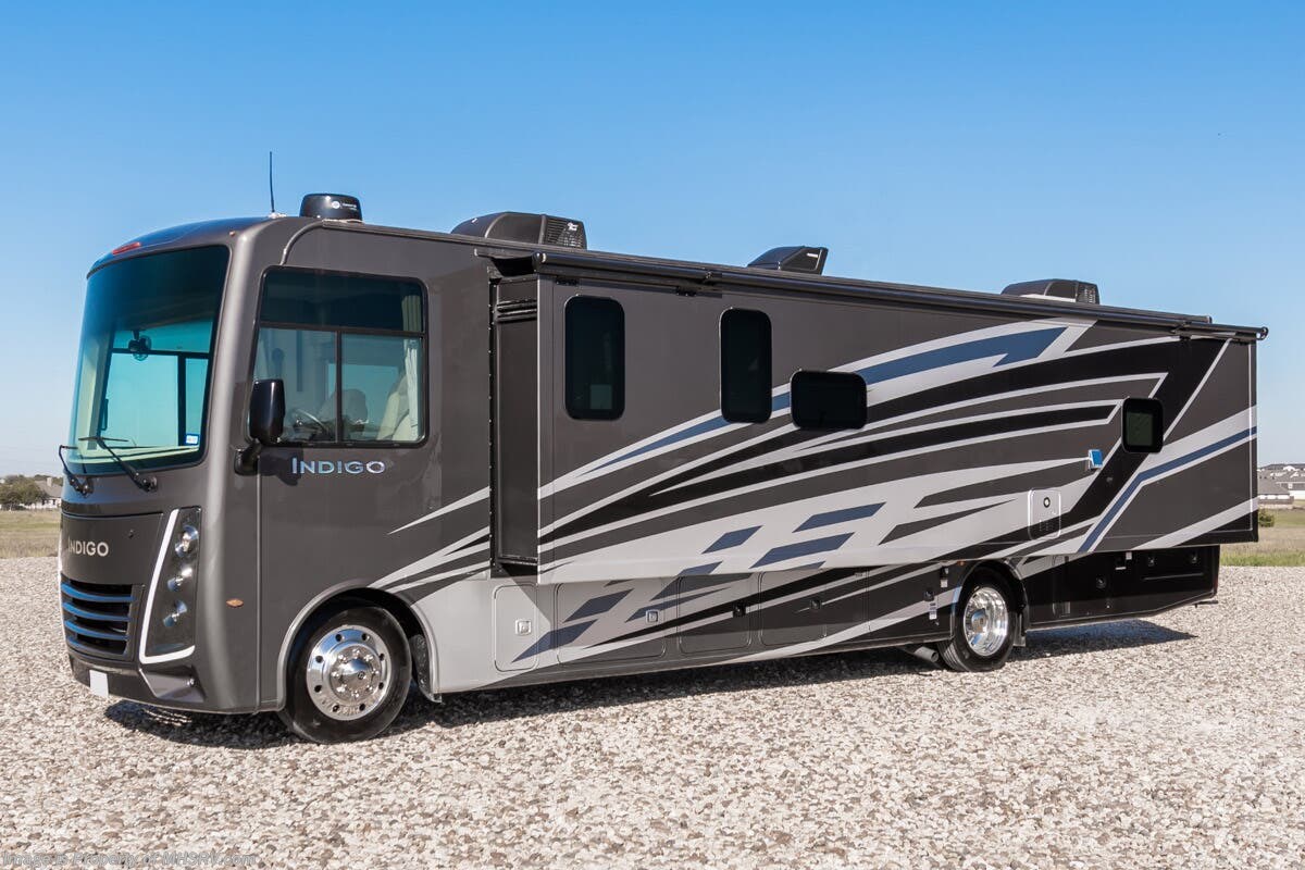 Used Thor Motor Coach RV for sale – 2025 Thor Indigo DD35 is approximately 36’ 10” in length with 2,891 Miles, 2 slides and features LCI hydraulic jacks, aluminum wheels, full body paint, 3 camera system, dual A/C’s, Ford 7.3L gas engine, Ford chassis, tilt/telescoping steering wheel, smart wheel, tire monitoring system, power visor, cruise control, patio awning, pass through storage, LED running lights, black tank flush, water filtration system, exterior shower, exterior TV, clear paint mask, solar, ladder, inverter, leather seating, sleeper booth, combination washer/dryer, 7 foot ceiling, dual pane windows, fireplace, multiplex control panel, hardwood cabinets, convection microwave, residential refrigerator, 3 burner gas range with oven, king bed, overhead loft, theater seats and much more. For additional details on this unit and our entire inventory including brochures, window sticker, videos, photos, reviews & testimonials as well as additional information about Motor Home Specialist and our manufacturers please visit us at MHSRV.com or call 800-335-6054 for our Texas location or 334-288-0331 for our Alabama location. At Motor Home Specialist, we DO NOT charge any prep or orientation fees like you will find at other dealerships. Read Thousands upon Thousands of 5-Star Reviews at MHSRV.com and See What They Had to Say About Their Experience at Motor Home Specialist.