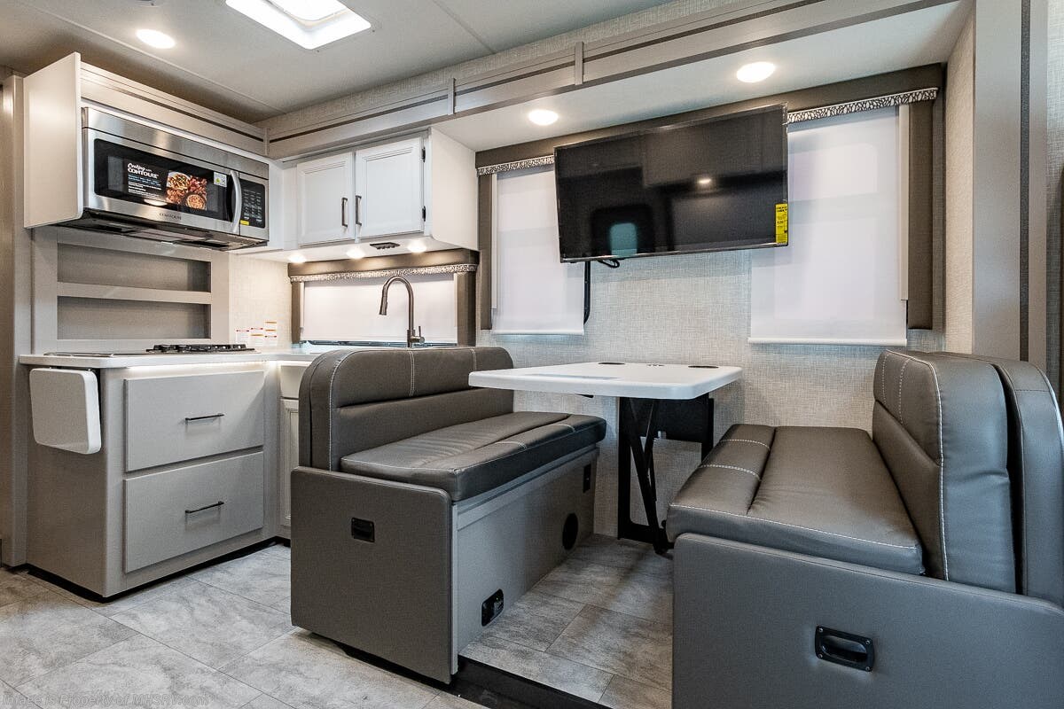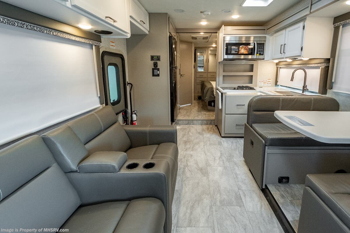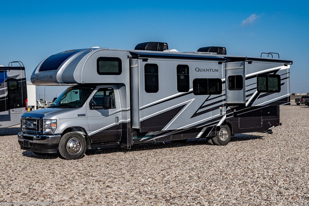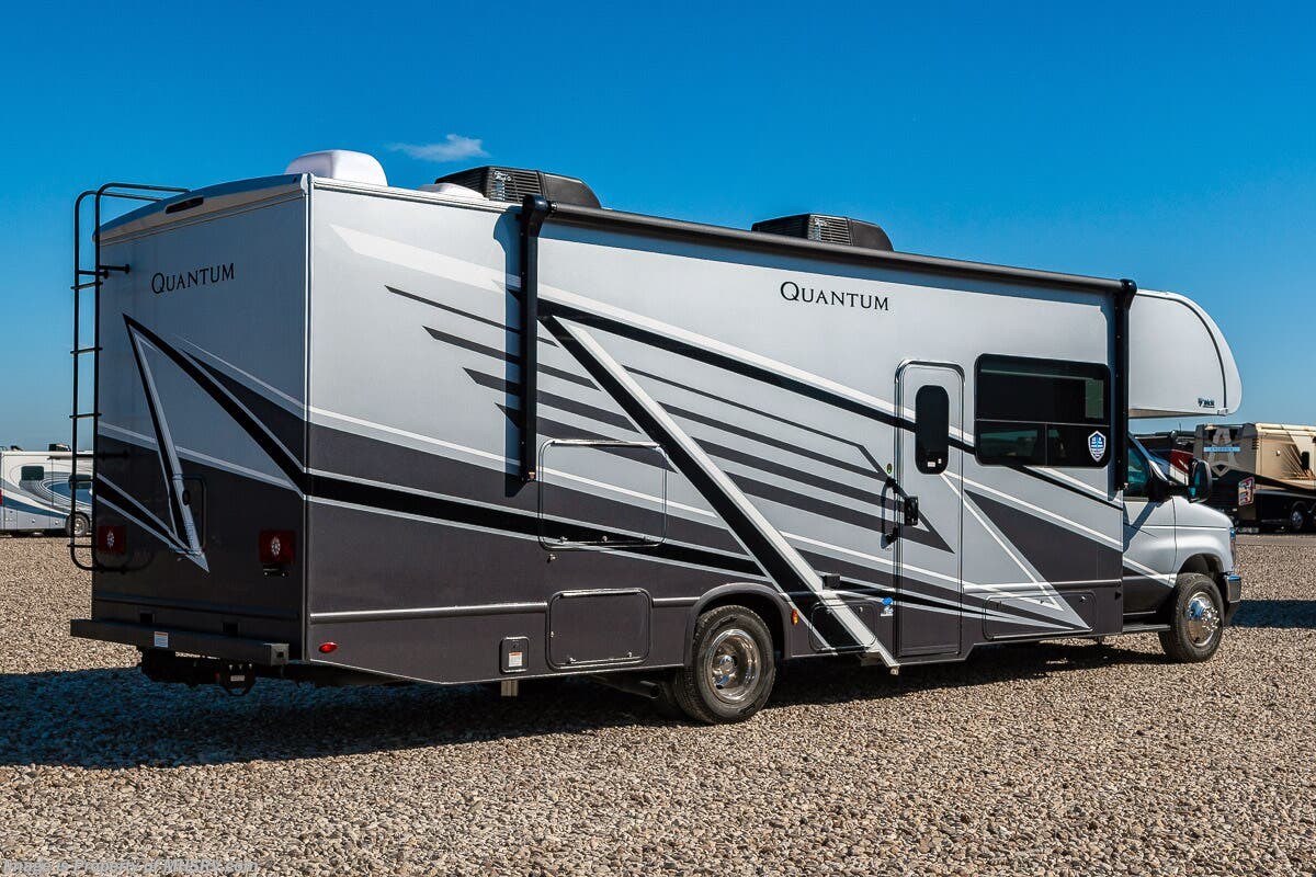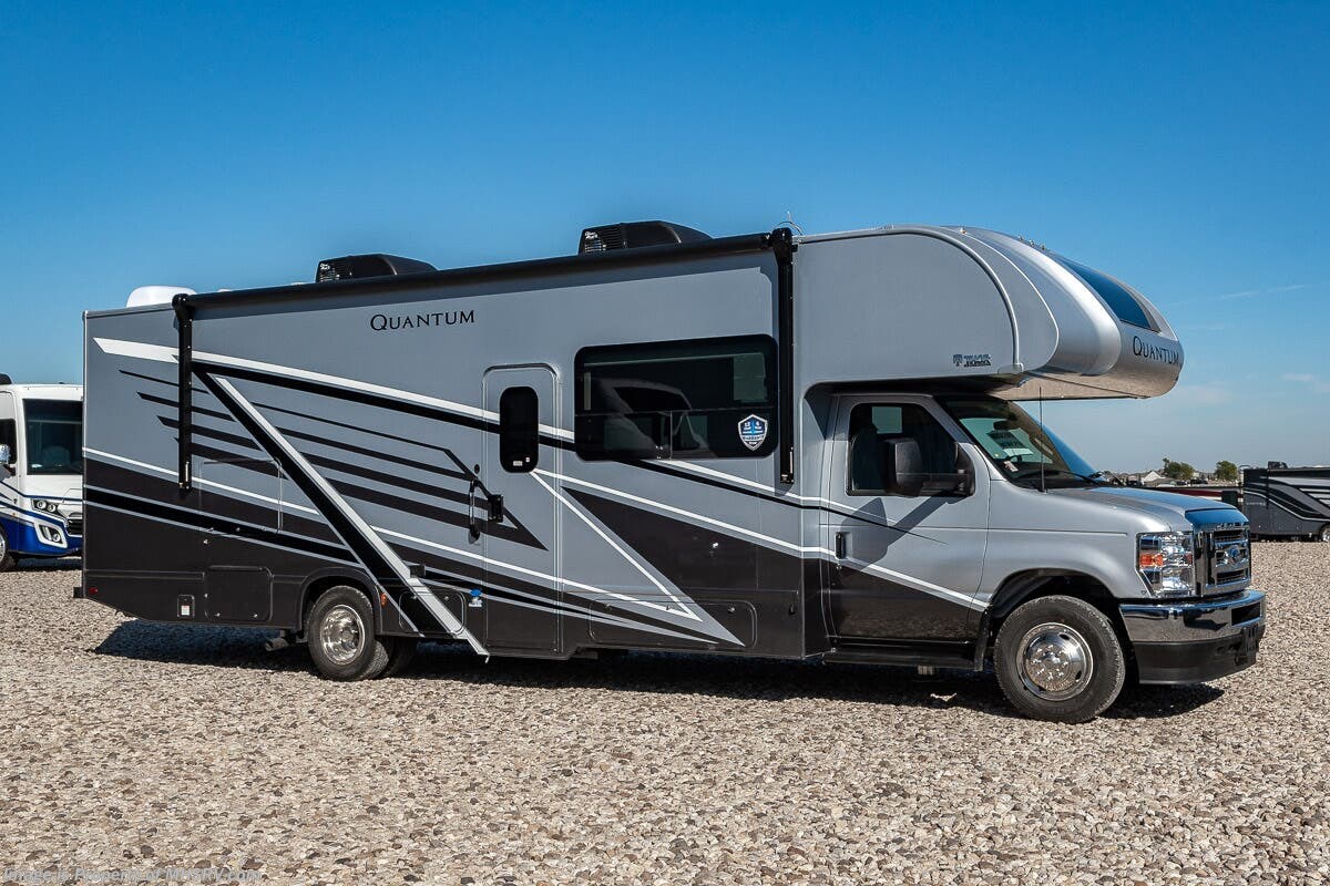 SOLD 9/3/2025 MSRP $197,904. New 2025 Thor Motor Coach Quantum KW29 Class C RV is approximately 31 feet in length with two slides and a Ford chassis. More features include touchscreen dash radio, SmoothTECH suspension, back-up monitor, stainless steel wheel liners, solid surface kitchen counter-top, premium window privacy shades. The Quantum luxury Class C RV has an incredible list of standard features including beautiful hardwood cabinets, a cabover loft with skylight (N/A with cabover entertainment center), dash applique, power windows and locks, power patio awning with integrated LED lighting, in-dash media center, gas generator, cab A/C, battery disconnect switch and much more. Additional options include the cabover child safety net, leatherette theater seats and full body paint. Shop hundreds of class C gas RVs at 1 location! Choose from Fleetwood Altitude - Gulf Stream BT Cruiser - Thor Chateau - Four Winds - Geneva and Quantum - Entegra Coach Odyssey Odyssey SE and Esteem - East to West Entrada - Forest River Forester - Forester LE - Nexus Phantom - Viper and much more. We also sell quality pre-owned models such as Jayco Greyhawk – Redhawk - Redhawk SE - Thor Magnitude - Winnebago Spirit - and Minnie Winnie - Coachmen Freelander and Leprechaun - Forest River Sunseeker Classic - Sunseeker LE – Solera - Holiday Rambler Incline and much more. Visit MHSRV.com for our complete line-up and the sale prices that have made us the #1 volume selling motor home dealership in the world 12 years in a row! For additional details on this unit and our entire inventory including brochures, window sticker, videos, photos, reviews & testimonials as well as additional information about Motor Home Specialist and our manufacturers please visit us at MHSRV.com or call 800-335-6054. At Motor Home Specialist, we DO NOT charge any prep or orientation fees like you will find at other dealerships. All sale prices include a 200-point inspection, interior & exterior wash, detail service and a fully automated high-pressure rain booth test and coach wash that is a standout service unlike that of any other in the industry. You will also receive a thorough coach orientation with an MHSRV technician, a night stay in our delivery park featuring landscaped and covered pads with full hook-ups and much more! Read Thousands upon Thousands of 5-Star Reviews at MHSRV.com and See What They Had to Say About Their Experience at Motor Home Specialist. WHY PAY MORE? WHY SETTLE FOR LESS?