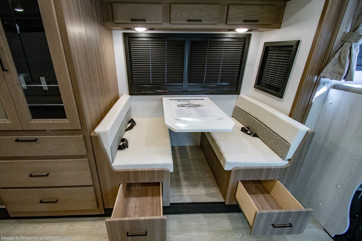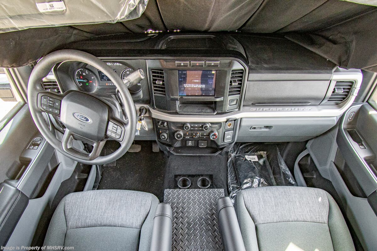 Approximately 32 feet 0 inches in length with one slide out and is powered by the Ford® 6.7L Power Stroke® V8 turbo diesel engine with 330HP and 10 speed transmission with selectable drive modes including Tow/Haul, Eco, Deep Sand/Snow. Also includes a SYNC 3 Enhanced Voice Recognition Communications and Entertainment System, 8" Color LCD touchscreen with swiping capability, 911 assist, AppLink and smart-charging USB ports and navigation. The Bravado Super C also features a 8KW Cummins Onan generator, residential convection microwave, 50 amp service, enclosed drain valves, outside shower, flush floor construction and much more.