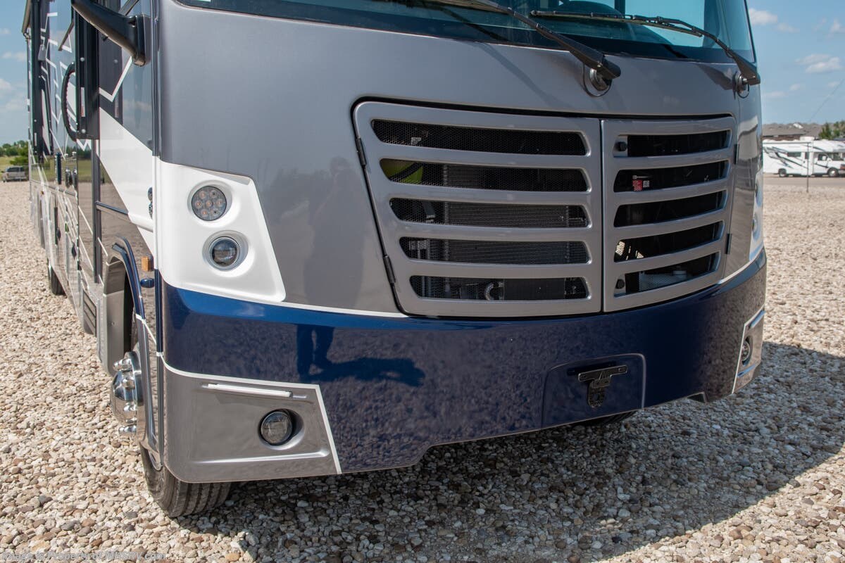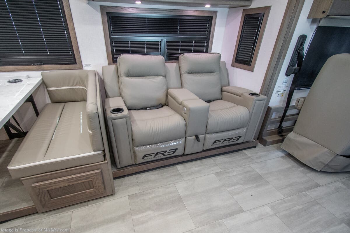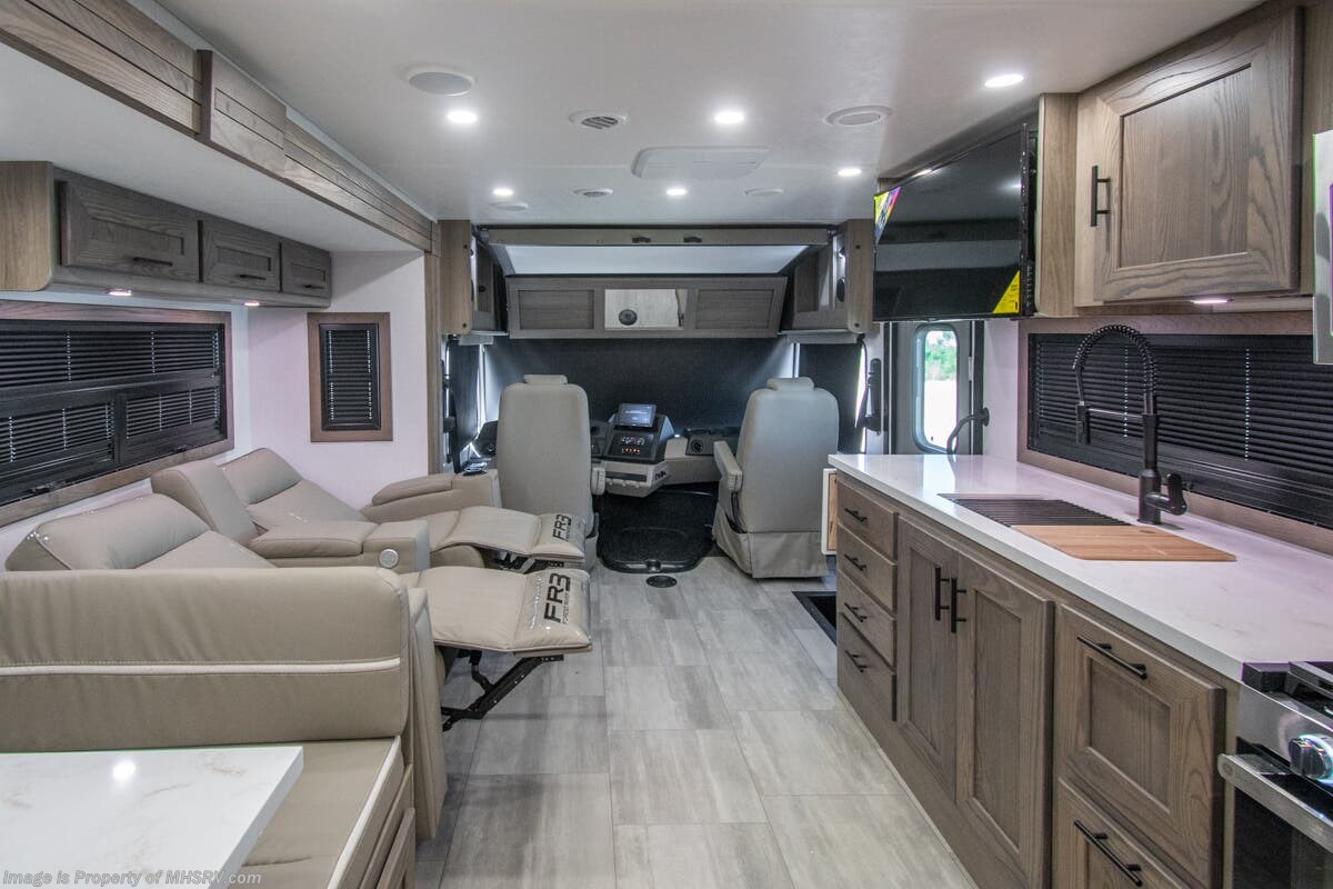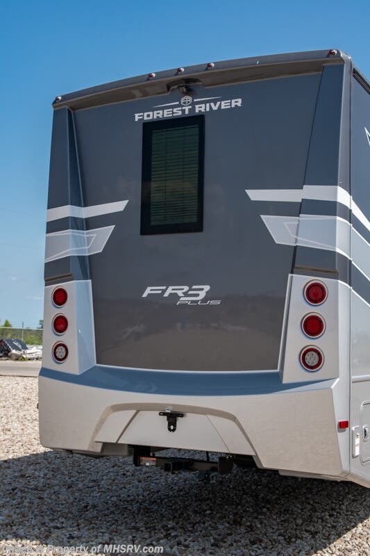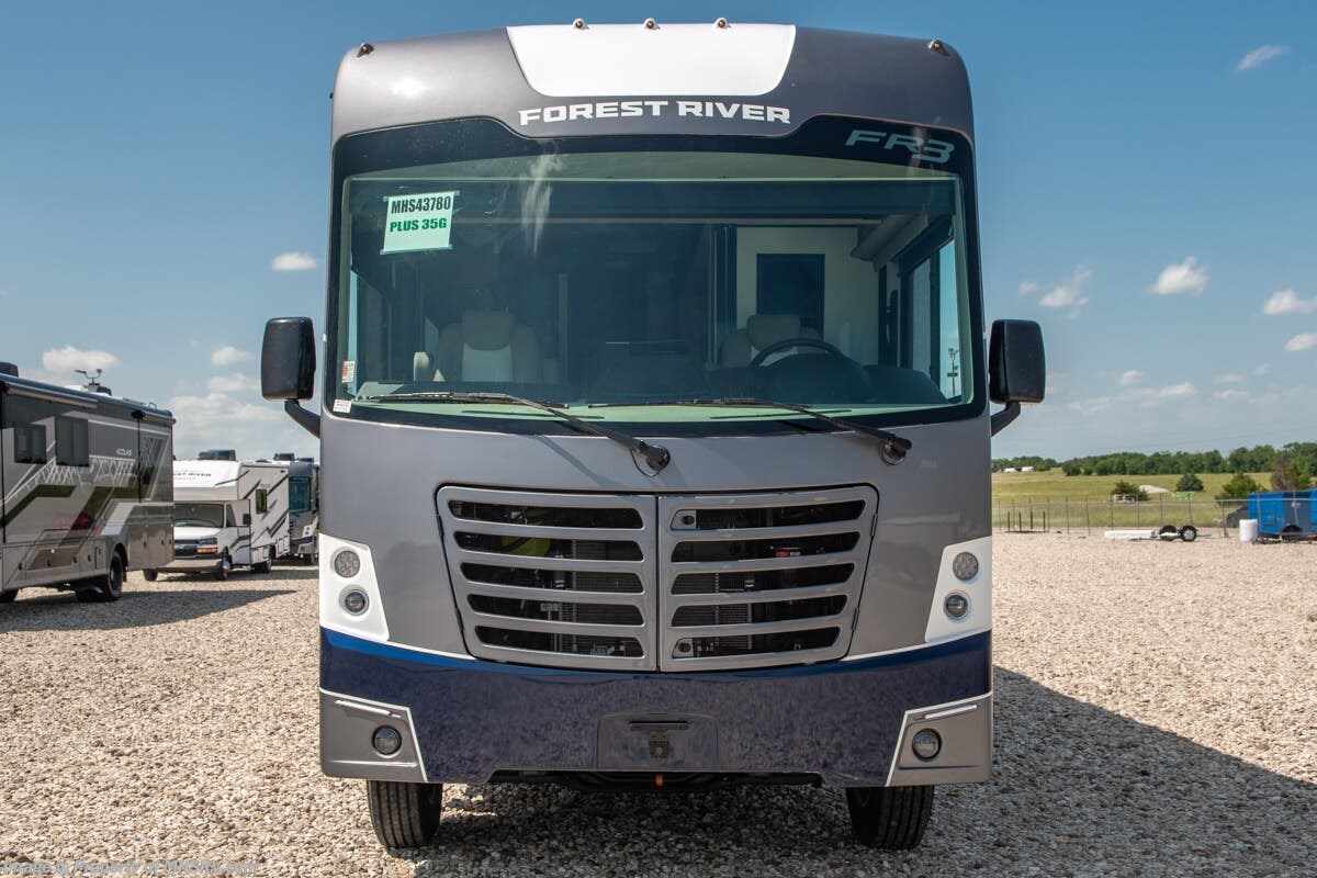 This RV measures approximately 37 feet 7 inches in length and features 3 slide outs, large living area, power loft bed, flip-up countertop and a king size bed. This beautiful new motorhome also features the new Ford chassis with 7.3L PFI V-8, a 6-speed TorqShift® automatic transmission. A few of the standard features the beautiful FR3 Plus boasts include slide room topper awnings, power patio awning with LED light strip, 4-point hydraulic leveling jacks, LED lighting throughout unit, power front sun shade, 6KW generator, 3 burner cook top with oven and flush mount stove cover, porcelain toilet, solid surface kitchen countertops, heated holding tanks and so much more.