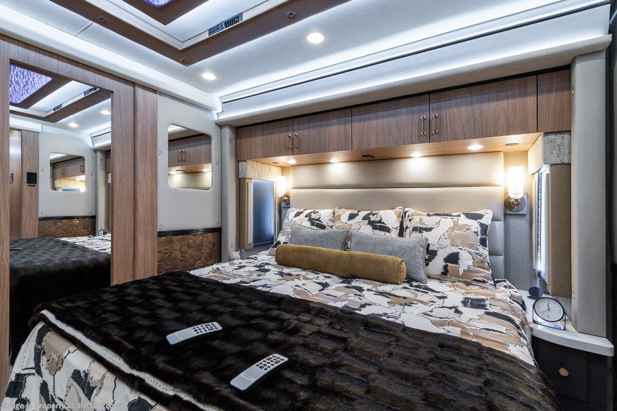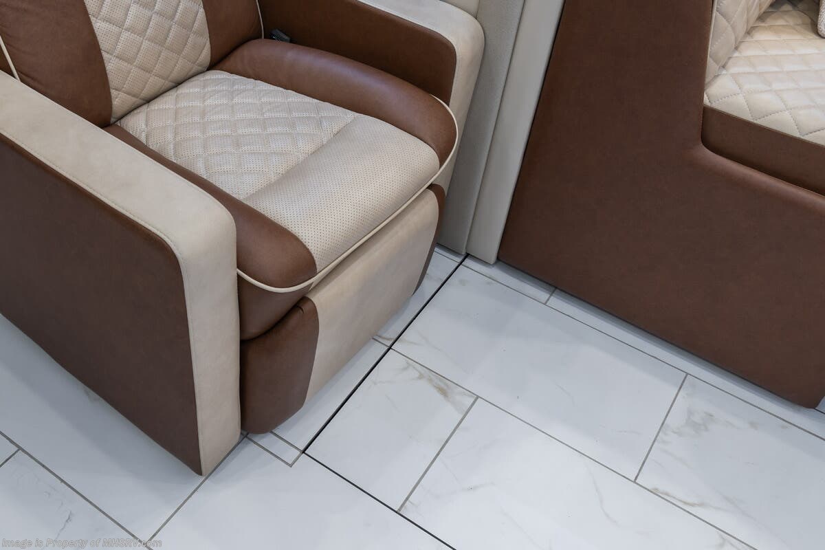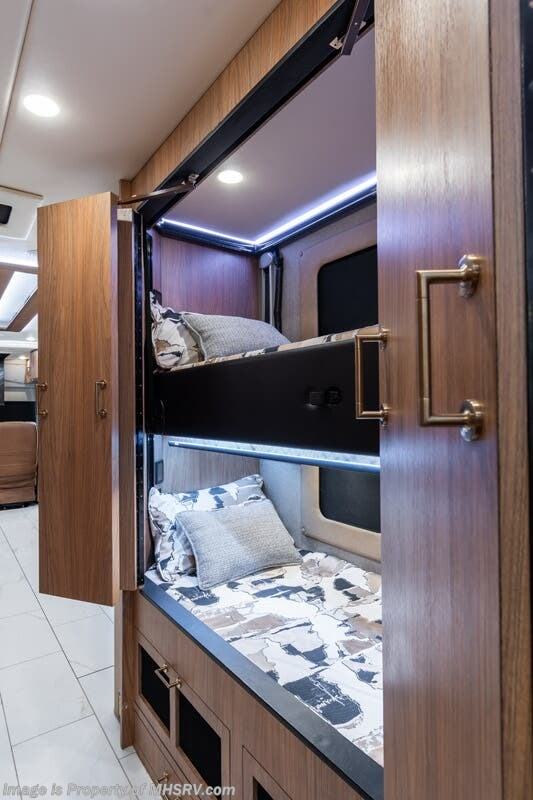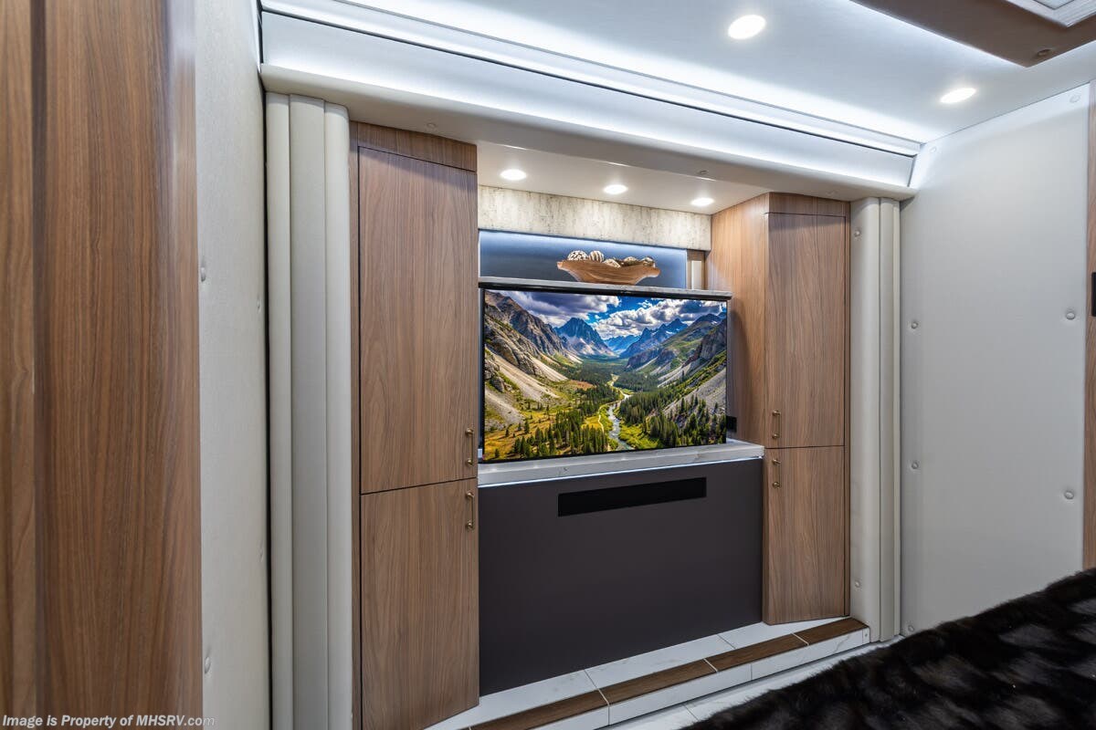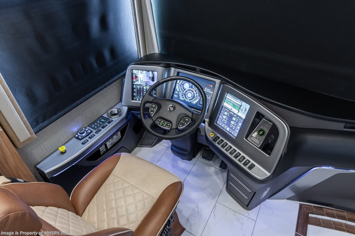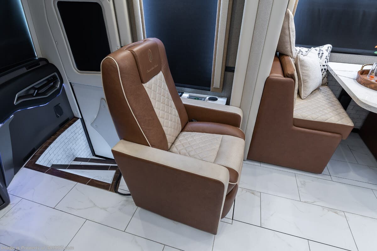 M.S.R.P. $1,778,430 - The 2026 Foretravel Realm Presidential takes the luxury motor coach market to all new heights and further propels the legacy of Foretravel. The Foretravel Realm stands alone as the finest motor coach of its kind available on the market today. It rides on Spartan's Premier K4 chassis, that is exclusive to Foretravel, offering incomparable ride, handling, and safety. This extraordinary motor coach is the Luxury Villa Bunk with Spa (LVB) floor plan with the all-new Sovereign interior décor package that is paired perfectly with the Imperial exterior paint scheme that can only be found on the Realm Presidential Series. Shop a huge selection of luxury diesel pusher motorhomes all at 1 location! Choose from American Coach Eagle – Dream – Entegra Coach Cornerstone – Anthem – Aspire – Fleetwood Palisade – Discovery LXE – Holiday Rambler Armada – Foretravel Realm – Foretravel Realm Presidential and more. We also buy and sell quality pre-owned models such Newmar King Aire – Essex – London Aire – Mountain Aire – Dutch Star - Tiffin Zephyr – Allegro Bus – Phaeton – Prevost Liberty Lady – Millennium - Marathon – Newell and much more. Visit MHSRV.com for our complete line-up and the sale prices that have made us the #1 volume selling motor home dealership in the world 12 years in a row! The LVB floor plan is also unlike that of any other luxury motor coach in the world, offering premier bunk accommodations and 2 full baths. The option that transforms this Realm into a Spa-like retreat is the ultra-high-end massaging tub in the master bath. The Kohler Archer® bath combines BubbleMassage™ and Bask® heated surface to create a soothing spa session. 120 air jets release thousands of heated air bubbles to cushion and massage your body allowing you to massage your back, midsection, and feet as well as control the intensity with 18 different levels. The tub is masterfully tiled and includes a large ledge and a flat-panel TV that is beautifully encased and angled downward for great visibility while using the tub or shower. You will also find a true flat floor design throughout the Realm Presidential Series including, not only Foretravel's premium flat floor slide-out rooms but also the bedroom to master bath transition. The Presidential Series also boasts a 600D Aqua Hot Hydronic Heating system. You will find the premier Valid digital dash with VDC control, along with the Valid air ride suspension, electronic suspension control with self-leveling feature, driver and passenger coach monitors, tire pressure sensors, beautiful full tile floors and back-splashes, ultra-high-end quartz counter tops throughout, premium brand refrigerator and convection microwave, LED accent lighting throughout, a beautiful curved entry way step, Executive entrance steps, a designer entry door with LED accent lighting, 4K QLED TVs where applicable, upgraded cab stereo and sub-woofer, heated and cooled leather pilot and co-pilot seats, recessed and upgraded ceiling features in the galley and bedroom, recessed cook top, an 8-camera system including 6 perimeter 360 Delta Mobile cameras for the ultimate in coach visibility, dual integrated power awnings, power entry door awning, exterior entertainment center, (2) electric sliding cargo trays, exterior freezer, full coach and multi-color LED ground effect lighting package, unmistakable full body paint exterior with Armor-Coat sprayed protection below windshield, chrome grill and accent package, (2) 3000 watt inverters, Gold Heat floor tile heating system, solar panel package, dishwasher drawer, 5.1 surround sound in living room and StarLink antenna. The Spartan K4 chassis is not only massive in stature but boasts a best-in-class Independent Front Suspension system, a passive steering rear tag axle for incomparable handling and maneuverability as well as the Performance Choice® anti-roll bar with selectable drive modes, and automatic traction control. You will know instantly, once behind the wheel of a Realm, that this chassis is truly a cut above all other luxury motor coach chassis. It is powered by a Cummins 605HP diesel. You will also find additional advanced safety features on a Realm like a fire suppression system for the engine, Tyron Bead-Lock wheel safety bands, and steel construction rather than aluminum found in the competition. You will also enjoy the ultimate in slide-out room fit and finish. These slides are undoubtedly head and shoulders above the competition. They feature pneumatic seals that provide a literal airtight seal completely around the entire slide-out room regardless of slide position for the premium in fit, finish, and function. They also feature a power drop-down flooring system that gives the Realm not only a flat-floor when extended, but a true flat-floor when retracted as well. (No uneven floor surfaces, damaging rollers, poorly sealed rubber gaskets, etc.) The Realm also features a flat floor bedroom to master bath transition. You won't find that in the competition; Nor will you find a *3-YEAR or 50K MILE SPARTAN NO-COST MAINTENANCE PLAN INCLUDED - (A Realm Exclusive) and a *2-YEAR or 24K MILE LIMITED WARRANTY. For more details contact Motor Home Specialist today. REALM, by definition, is a royal kingdom; a domain within which anything may occur, prevail, or dominate. The Realm of Dreams is here and available at Motor Home Specialist, the #1 Volume Selling Motor Home Dealership in the World. Visit MHSRV.com or call 800-335-6054 for complete details, photos, videos, brochures, and more. The Foretravel Realm Presidential Series... Your Kingdom Awaits.
