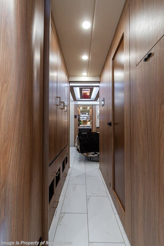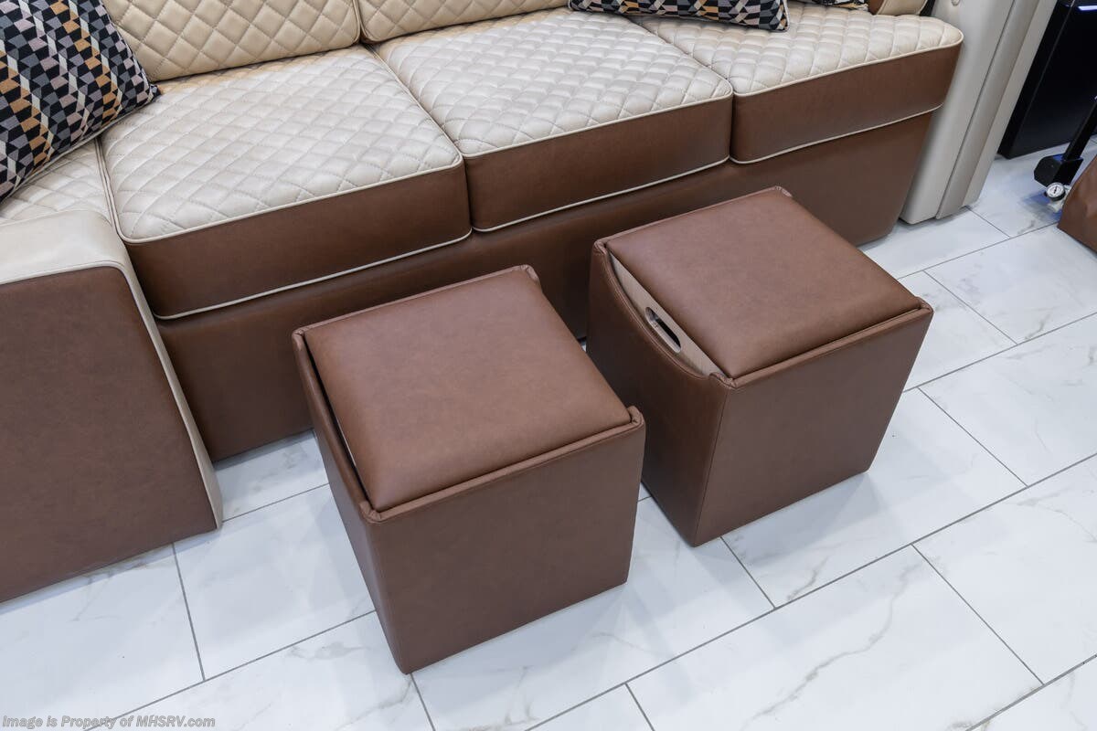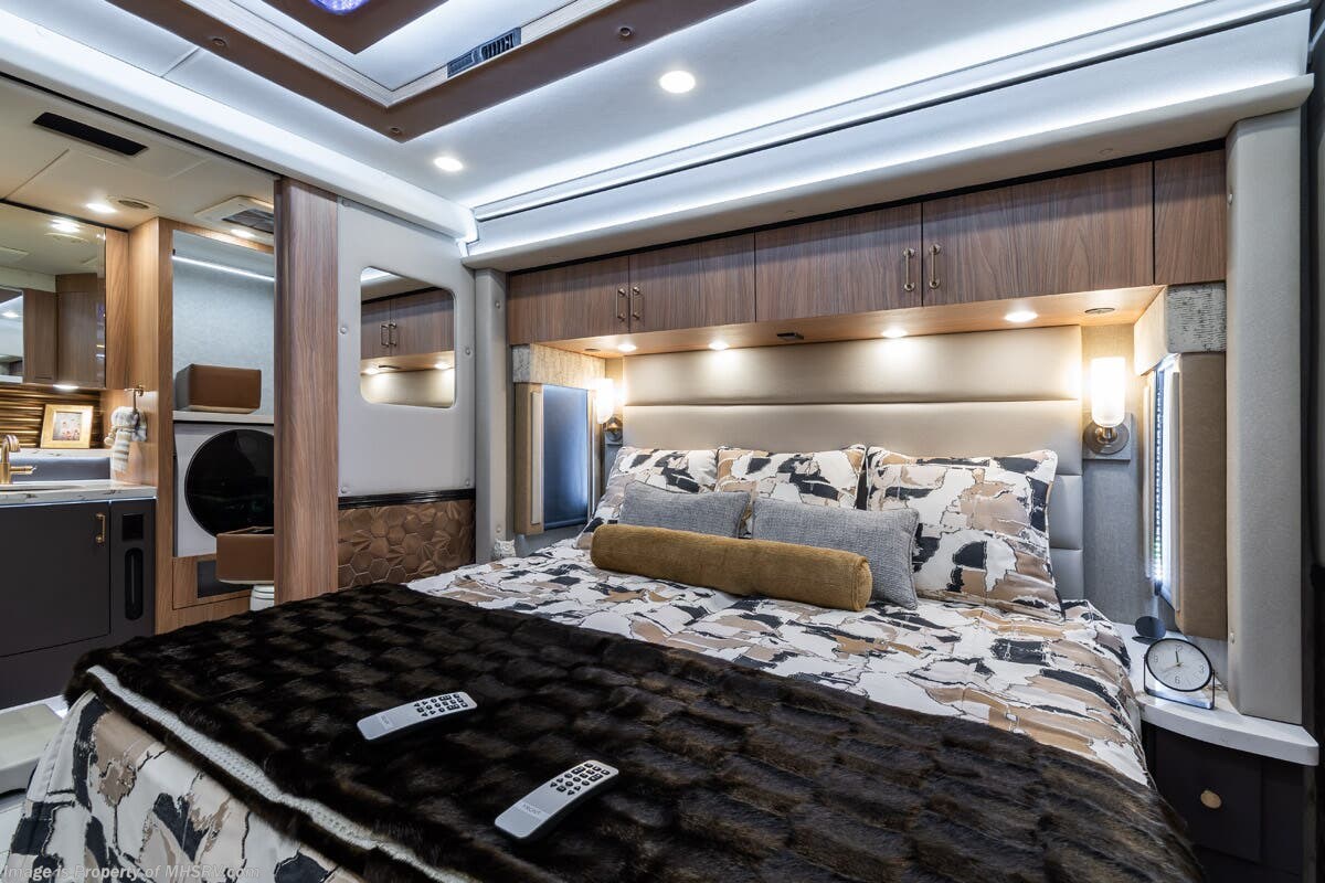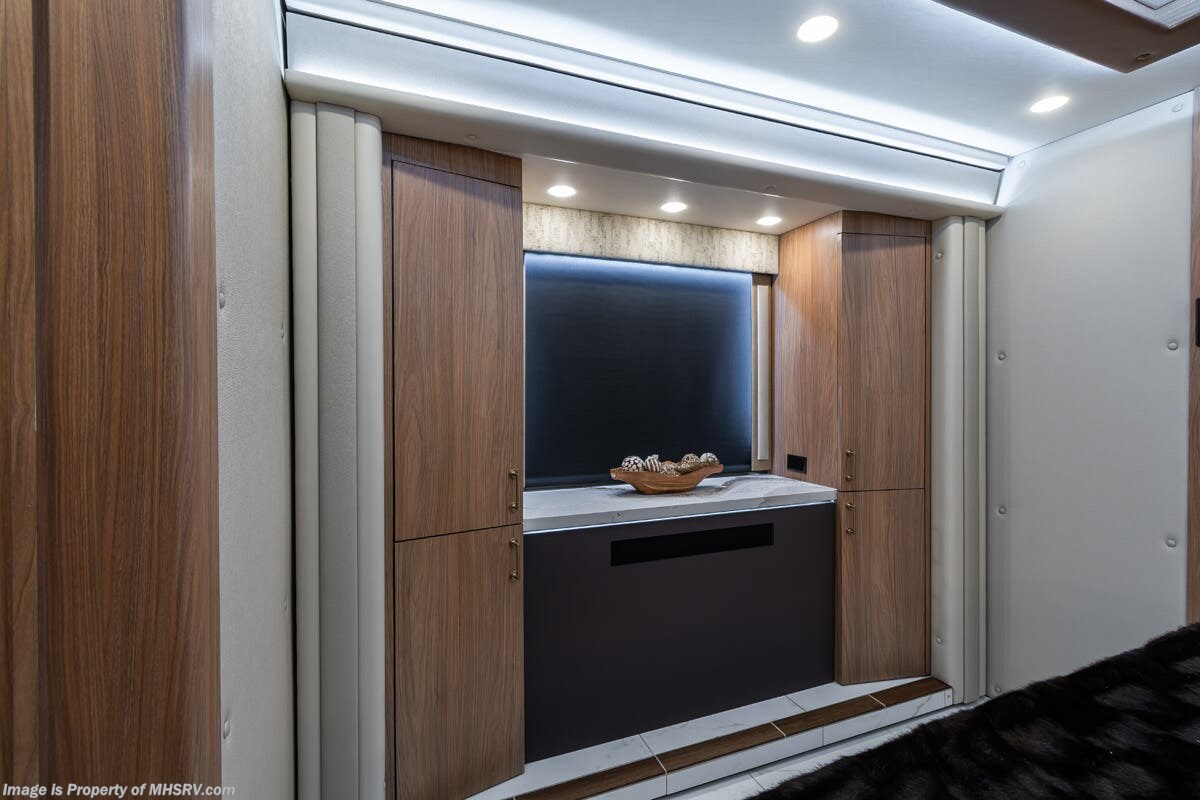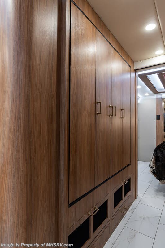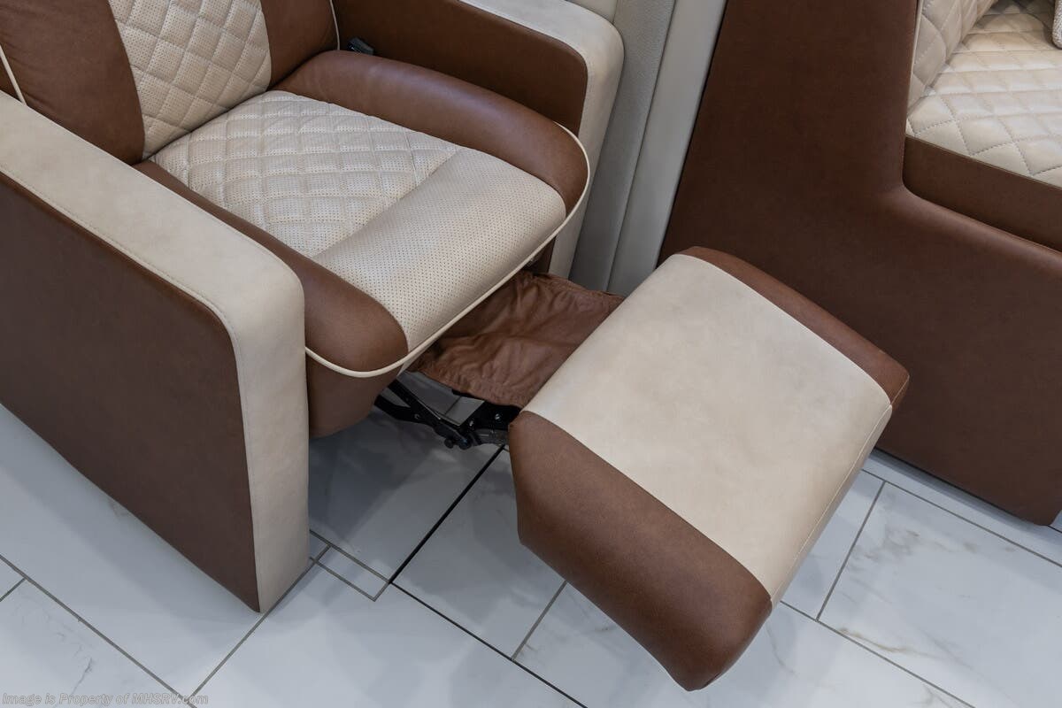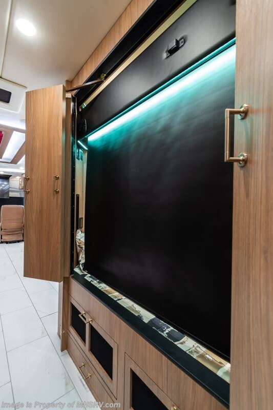 M.S.R.P. $1,778,430 - The 2026 Foretravel Realm Presidential takes the luxury motor coach market to all new heights and further propels the legacy of Foretravel. The Foretravel Realm stands alone as the finest motor coach of its kind available on the market today. It rides on Spartan's Premier K4 chassis, that is exclusive to Foretravel, offering incomparable ride, handling, and safety. This extraordinary motor coach is the Luxury Villa Bunk with Spa (LVB) floor plan with the all-new Sovereign interior décor package that is paired perfectly with the Imperial exterior paint scheme that can only be found on the Realm Presidential Series. Shop a huge selection of luxury diesel pusher motorhomes all at 1 location! Choose from American Coach Eagle – Dream – Entegra Coach Cornerstone – Anthem – Aspire – Fleetwood Palisade – Discovery LXE – Holiday Rambler Armada – Foretravel Realm – Foretravel Realm Presidential and more. We also buy and sell quality pre-owned models such Newmar King Aire – Essex – London Aire – Mountain Aire – Dutch Star - Tiffin Zephyr – Allegro Bus – Phaeton – Prevost Liberty Lady – Millennium - Marathon – Newell and much more. Visit MHSRV.com for our complete line-up and the sale prices that have made us the #1 volume selling motor home dealership in the world 12 years in a row! The LVB floor plan is also unlike that of any other luxury motor coach in the world, offering premier bunk accommodations and 2 full baths. The option that transforms this Realm into a Spa-like retreat is the ultra-high-end massaging tub in the master bath. The Kohler Archer® bath combines BubbleMassage™ and Bask® heated surface to create a soothing spa session. 120 air jets release thousands of heated air bubbles to cushion and massage your body allowing you to massage your back, midsection, and feet as well as control the intensity with 18 different levels. The tub is masterfully tiled and includes a large ledge and a flat-panel TV that is beautifully encased and angled downward for great visibility while using the tub or shower. You will also find a true flat floor design throughout the Realm Presidential Series including, not only Foretravel's premium flat floor slide-out rooms but also the bedroom to master bath transition. The Presidential Series also boasts a 600D Aqua Hot Hydronic Heating system. You will find the premier Valid digital dash with VDC control, along with the Valid air ride suspension, electronic suspension control with self-leveling feature, driver and passenger coach monitors, tire pressure sensors, beautiful full tile floors and back-splashes, ultra-high-end quartz counter tops throughout, premium brand refrigerator and convection microwave, LED accent lighting throughout, a beautiful curved entry way step, Executive entrance steps, a designer entry door with LED accent lighting, 4K QLED TVs where applicable, upgraded cab stereo and sub-woofer, heated and cooled leather pilot and co-pilot seats, recessed and upgraded ceiling features in the galley and bedroom, recessed cook top, an 8-camera system including 6 perimeter 360 Delta Mobile cameras for the ultimate in coach visibility, dual integrated power awnings, power entry door awning, exterior entertainment center, (2) electric sliding cargo trays, exterior freezer, full coach and multi-color LED ground effect lighting package, unmistakable full body paint exterior with Armor-Coat sprayed protection below windshield, chrome grill and accent package, (2) 3000 watt inverters, Gold Heat floor tile heating system, solar panel package, dishwasher drawer, 5.1 surround sound in living room and StarLink antenna. The Spartan K4 chassis is not only massive in stature but boasts a best-in-class Independent Front Suspension system, a passive steering rear tag axle for incomparable handling and maneuverability as well as the Performance Choice® anti-roll bar with selectable drive modes, and automatic traction control. You will know instantly, once behind the wheel of a Realm, that this chassis is truly a cut above all other luxury motor coach chassis. It is powered by a Cummins 605HP diesel. You will also find additional advanced safety features on a Realm like a fire suppression system for the engine, Tyron Bead-Lock wheel safety bands, and steel construction rather than aluminum found in the competition. You will also enjoy the ultimate in slide-out room fit and finish. These slides are undoubtedly head and shoulders above the competition. They feature pneumatic seals that provide a literal airtight seal completely around the entire slide-out room regardless of slide position for the premium in fit, finish, and function. They also feature a power drop-down flooring system that gives the Realm not only a flat-floor when extended, but a true flat-floor when retracted as well. (No uneven floor surfaces, damaging rollers, poorly sealed rubber gaskets, etc.) The Realm also features a flat floor bedroom to master bath transition. You won't find that in the competition; Nor will you find a *3-YEAR or 50K MILE SPARTAN NO-COST MAINTENANCE PLAN INCLUDED - (A Realm Exclusive) and a *2-YEAR or 24K MILE LIMITED WARRANTY. For more details contact Motor Home Specialist today. REALM, by definition, is a royal kingdom; a domain within which anything may occur, prevail, or dominate. The Realm of Dreams is here and available at Motor Home Specialist, the #1 Volume Selling Motor Home Dealership in the World. Visit MHSRV.com or call 800-335-6054 for complete details, photos, videos, brochures, and more. The Foretravel Realm Presidential Series... Your Kingdom Awaits.