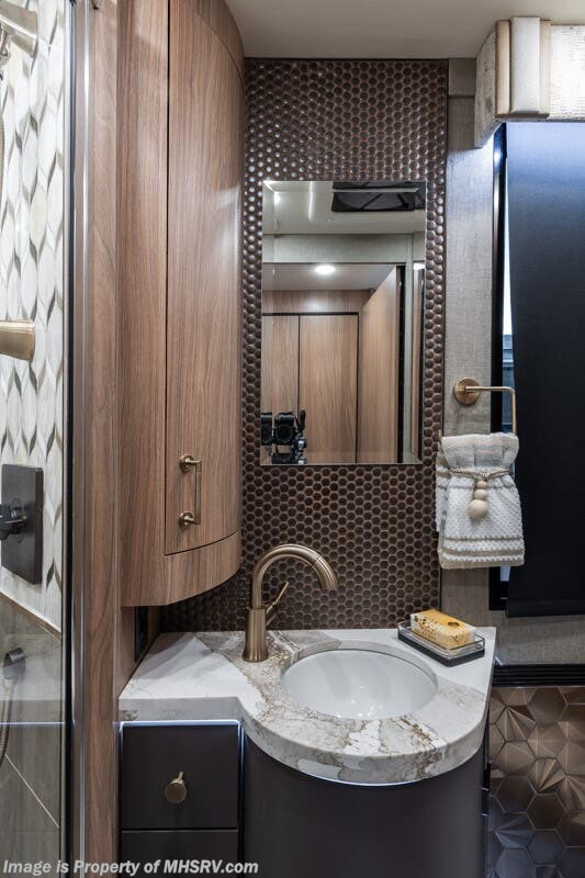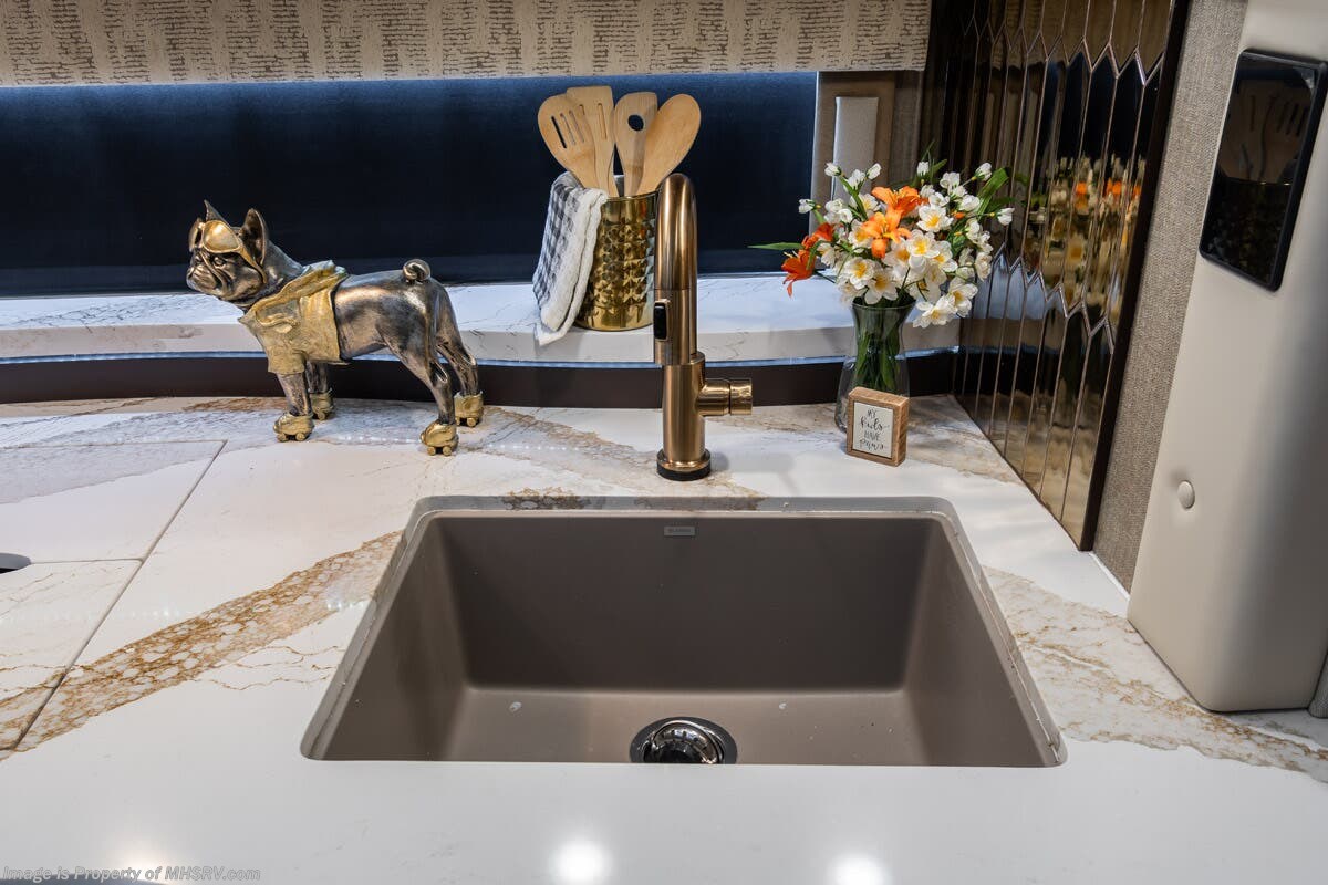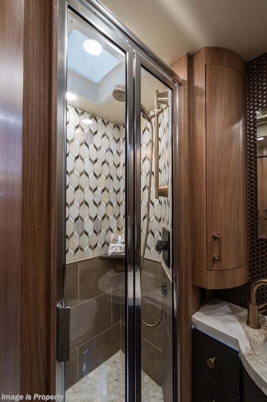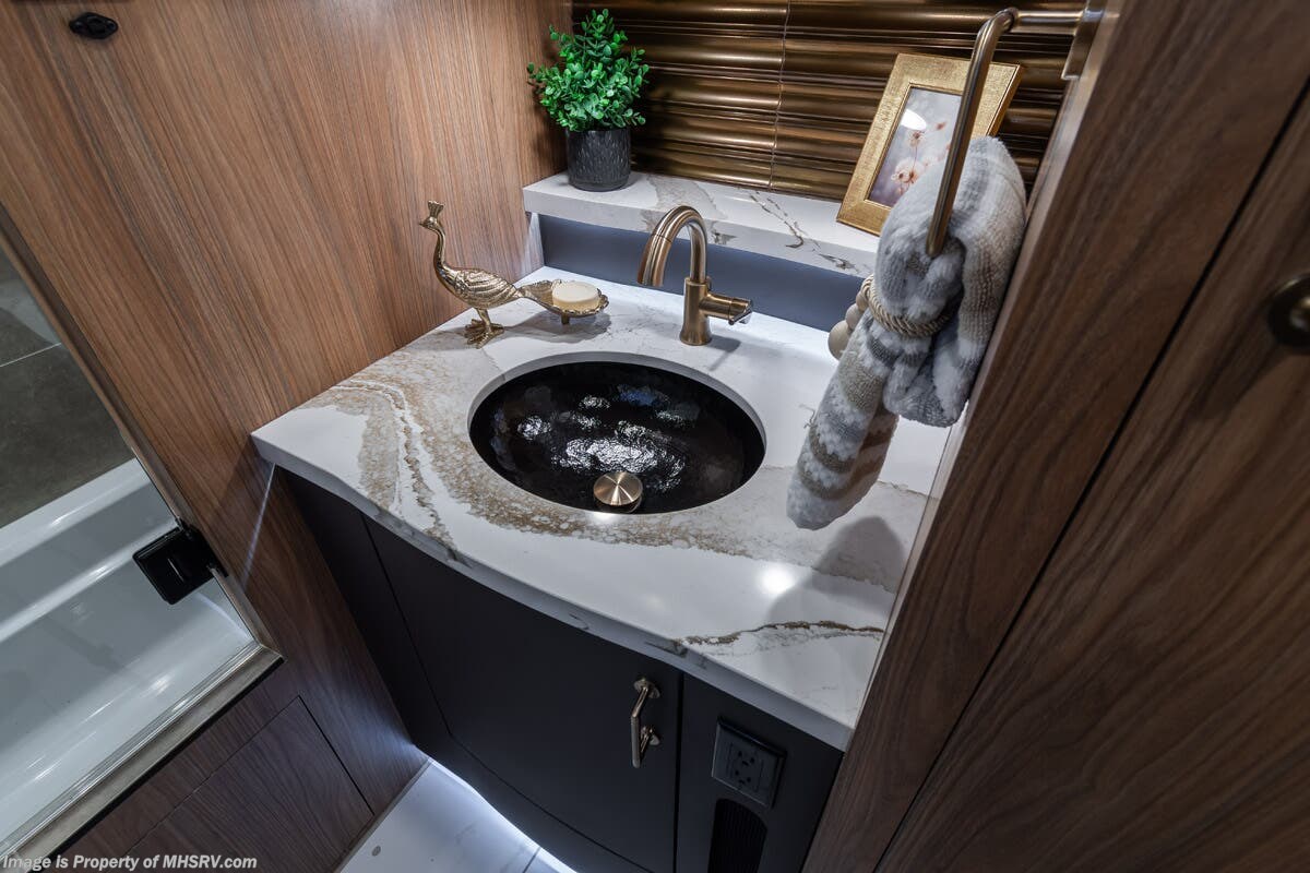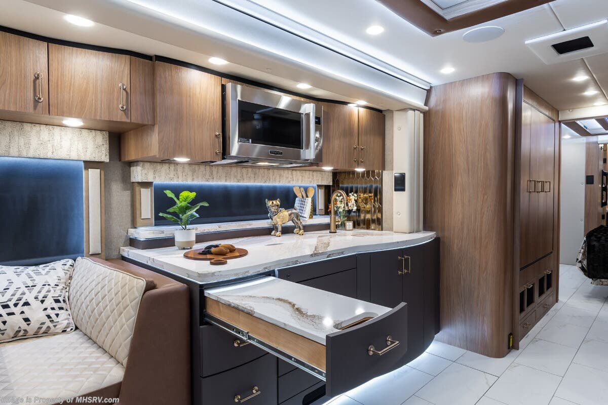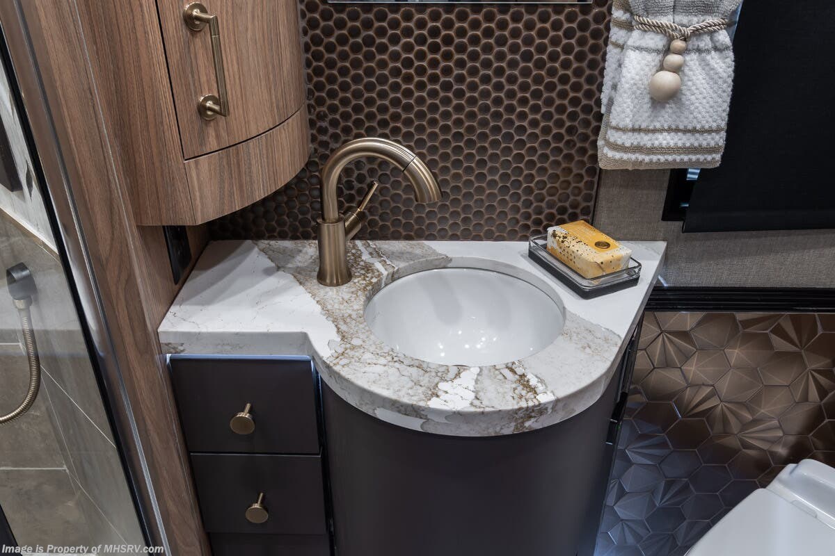 M.S.R.P. $1,778,430 - The 2026 Foretravel Realm Presidential takes the luxury motor coach market to all new heights and further propels the legacy of Foretravel. The Foretravel Realm stands alone as the finest motor coach of its kind available on the market today. It rides on Spartan's Premier K4 chassis, that is exclusive to Foretravel, offering incomparable ride, handling, and safety. This extraordinary motor coach is the Luxury Villa Bunk with Spa (LVB) floor plan with the all-new Sovereign interior décor package that is paired perfectly with the Imperial exterior paint scheme that can only be found on the Realm Presidential Series. Shop a huge selection of luxury diesel pusher motorhomes all at 1 location! Choose from American Coach Eagle – Dream – Entegra Coach Cornerstone – Anthem – Aspire – Fleetwood Palisade – Discovery LXE – Holiday Rambler Armada – Foretravel Realm – Foretravel Realm Presidential and more. We also buy and sell quality pre-owned models such Newmar King Aire – Essex – London Aire – Mountain Aire – Dutch Star - Tiffin Zephyr – Allegro Bus – Phaeton – Prevost Liberty Lady – Millennium - Marathon – Newell and much more. Visit MHSRV.com for our complete line-up and the sale prices that have made us the #1 volume selling motor home dealership in the world 12 years in a row! The LVB floor plan is also unlike that of any other luxury motor coach in the world, offering premier bunk accommodations and 2 full baths. The option that transforms this Realm into a Spa-like retreat is the ultra-high-end massaging tub in the master bath. The Kohler Archer® bath combines BubbleMassage™ and Bask® heated surface to create a soothing spa session. 120 air jets release thousands of heated air bubbles to cushion and massage your body allowing you to massage your back, midsection, and feet as well as control the intensity with 18 different levels. The tub is masterfully tiled and includes a large ledge and a flat-panel TV that is beautifully encased and angled downward for great visibility while using the tub or shower. You will also find a true flat floor design throughout the Realm Presidential Series including, not only Foretravel's premium flat floor slide-out rooms but also the bedroom to master bath transition. The Presidential Series also boasts a 600D Aqua Hot Hydronic Heating system. You will find the premier Valid digital dash with VDC control, along with the Valid air ride suspension, electronic suspension control with self-leveling feature, driver and passenger coach monitors, tire pressure sensors, beautiful full tile floors and back-splashes, ultra-high-end quartz counter tops throughout, premium brand refrigerator and convection microwave, LED accent lighting throughout, a beautiful curved entry way step, Executive entrance steps, a designer entry door with LED accent lighting, 4K QLED TVs where applicable, upgraded cab stereo and sub-woofer, heated and cooled leather pilot and co-pilot seats, recessed and upgraded ceiling features in the galley and bedroom, recessed cook top, an 8-camera system including 6 perimeter 360 Delta Mobile cameras for the ultimate in coach visibility, dual integrated power awnings, power entry door awning, exterior entertainment center, (2) electric sliding cargo trays, exterior freezer, full coach and multi-color LED ground effect lighting package, unmistakable full body paint exterior with Armor-Coat sprayed protection below windshield, chrome grill and accent package, (2) 3000 watt inverters, Gold Heat floor tile heating system, solar panel package, dishwasher drawer, 5.1 surround sound in living room and StarLink antenna. The Spartan K4 chassis is not only massive in stature but boasts a best-in-class Independent Front Suspension system, a passive steering rear tag axle for incomparable handling and maneuverability as well as the Performance Choice® anti-roll bar with selectable drive modes, and automatic traction control. You will know instantly, once behind the wheel of a Realm, that this chassis is truly a cut above all other luxury motor coach chassis. It is powered by a Cummins 605HP diesel. You will also find additional advanced safety features on a Realm like a fire suppression system for the engine, Tyron Bead-Lock wheel safety bands, and steel construction rather than aluminum found in the competition. You will also enjoy the ultimate in slide-out room fit and finish. These slides are undoubtedly head and shoulders above the competition. They feature pneumatic seals that provide a literal airtight seal completely around the entire slide-out room regardless of slide position for the premium in fit, finish, and function. They also feature a power drop-down flooring system that gives the Realm not only a flat-floor when extended, but a true flat-floor when retracted as well. (No uneven floor surfaces, damaging rollers, poorly sealed rubber gaskets, etc.) The Realm also features a flat floor bedroom to master bath transition. You won't find that in the competition; Nor will you find a *3-YEAR or 50K MILE SPARTAN NO-COST MAINTENANCE PLAN INCLUDED - (A Realm Exclusive) and a *2-YEAR or 24K MILE LIMITED WARRANTY. For more details contact Motor Home Specialist today. REALM, by definition, is a royal kingdom; a domain within which anything may occur, prevail, or dominate. The Realm of Dreams is here and available at Motor Home Specialist, the #1 Volume Selling Motor Home Dealership in the World. Visit MHSRV.com or call 800-335-6054 for complete details, photos, videos, brochures, and more. The Foretravel Realm Presidential Series... Your Kingdom Awaits.
