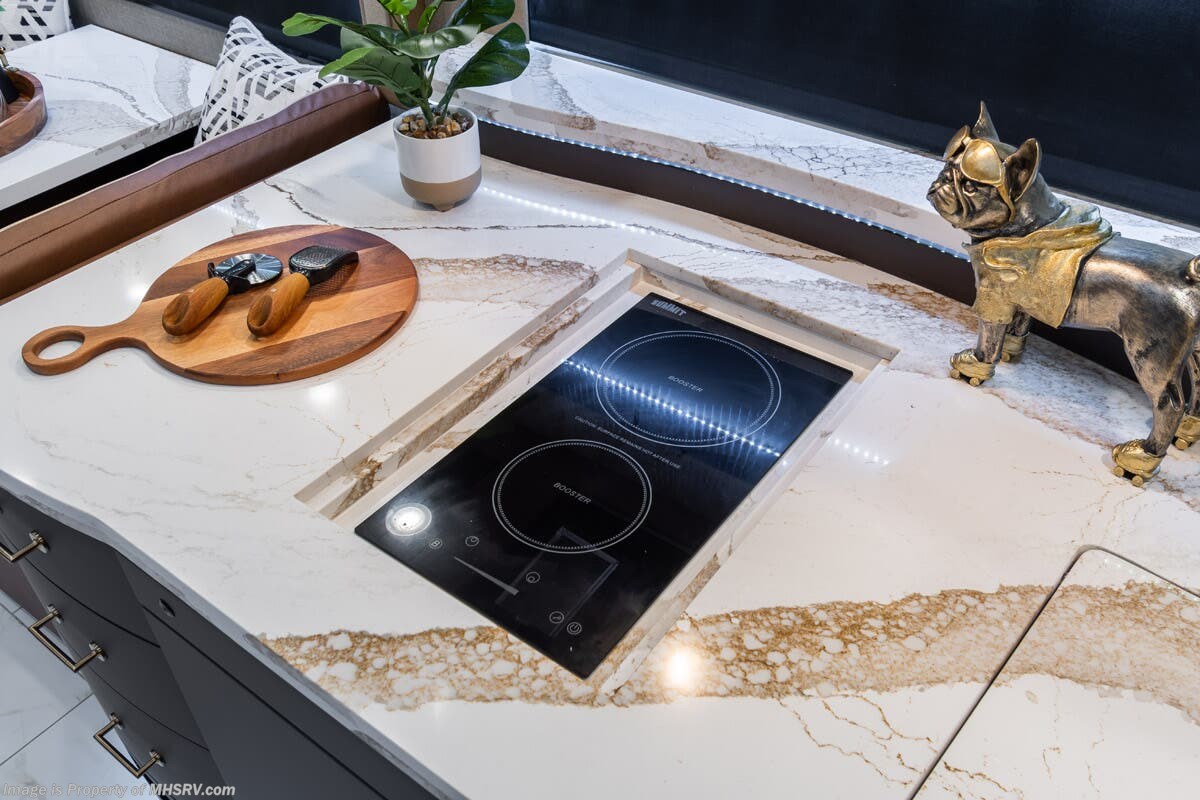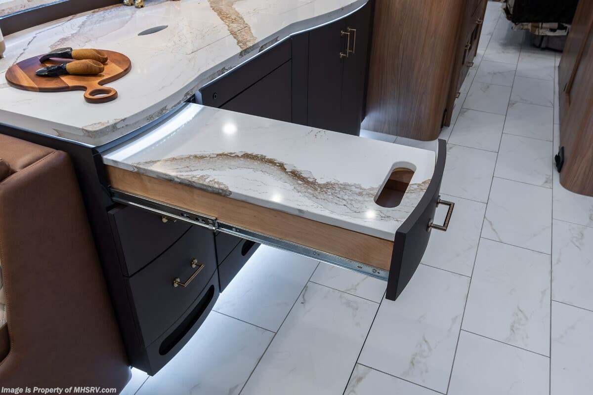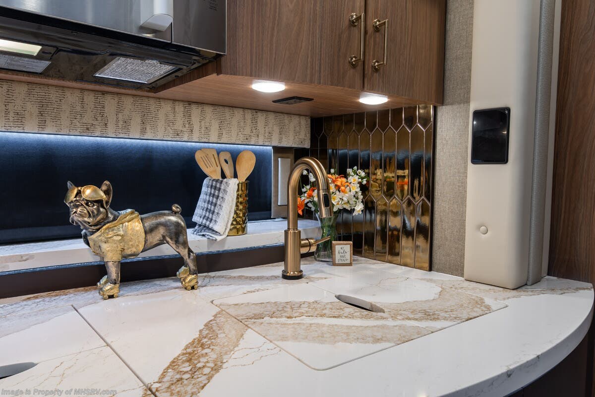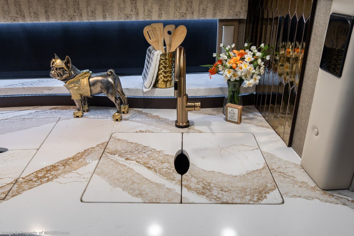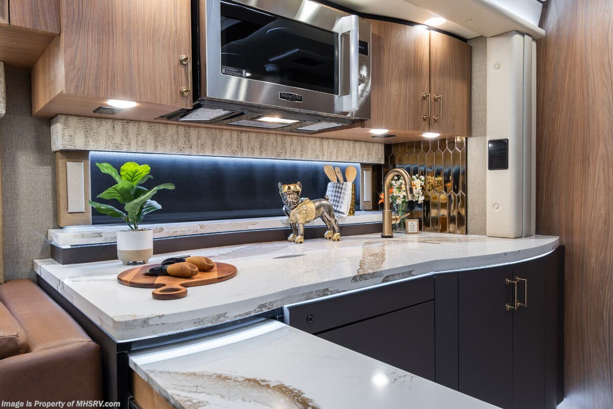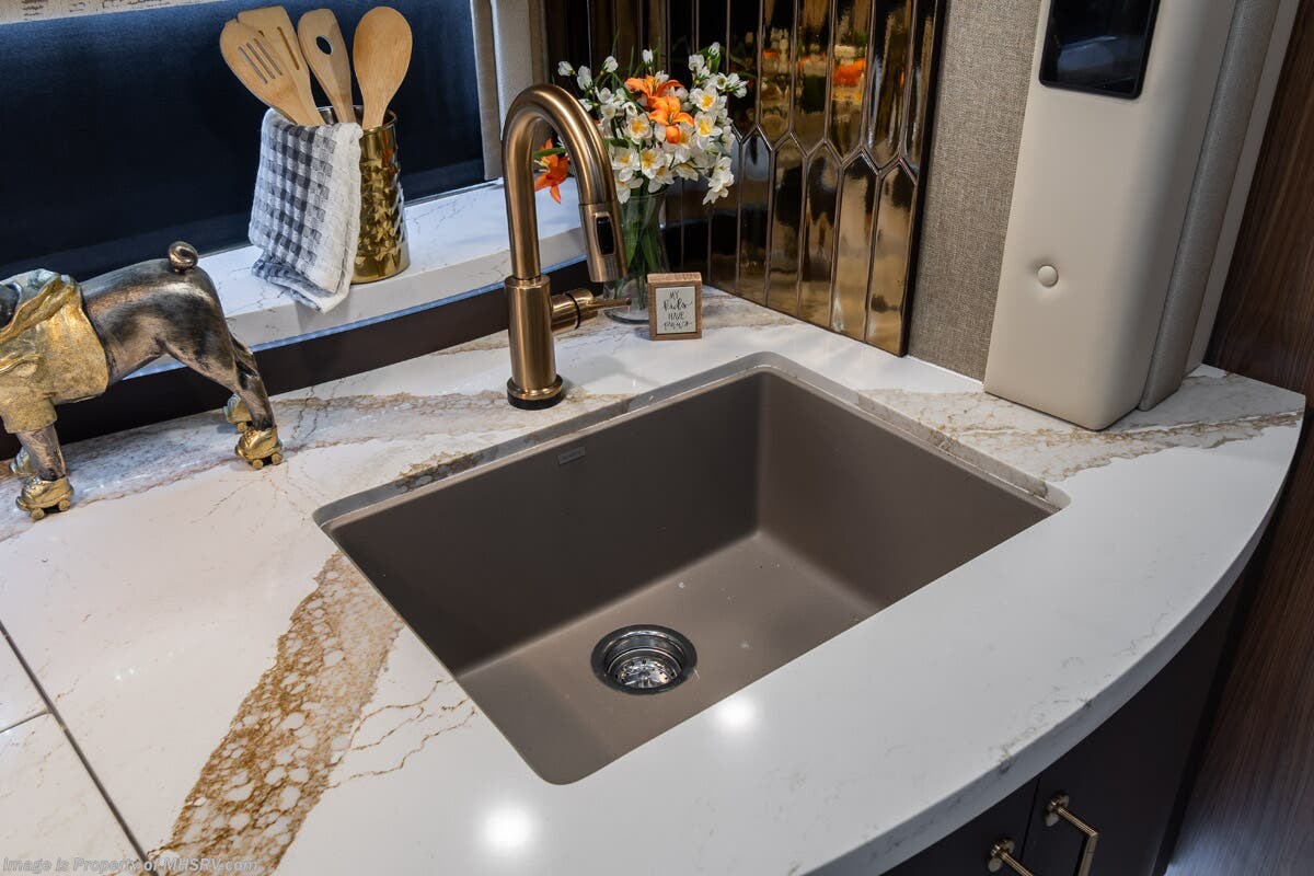 M.S.R.P. $1,778,430 - The 2026 Foretravel Realm Presidential takes the luxury motor coach market to all new heights and further propels the legacy of Foretravel. The Foretravel Realm stands alone as the finest motor coach of its kind available on the market today. It rides on Spartan's Premier K4 chassis, that is exclusive to Foretravel, offering incomparable ride, handling, and safety. This extraordinary motor coach is the Luxury Villa Bunk with Spa (LVB) floor plan with the all-new Sovereign interior décor package that is paired perfectly with the Imperial exterior paint scheme that can only be found on the Realm Presidential Series. Shop a huge selection of luxury diesel pusher motorhomes all at 1 location! Choose from American Coach Eagle – Dream – Entegra Coach Cornerstone – Anthem – Aspire – Fleetwood Palisade – Discovery LXE – Holiday Rambler Armada – Foretravel Realm – Foretravel Realm Presidential and more. We also buy and sell quality pre-owned models such Newmar King Aire – Essex – London Aire – Mountain Aire – Dutch Star - Tiffin Zephyr – Allegro Bus – Phaeton – Prevost Liberty Lady – Millennium - Marathon – Newell and much more. Visit MHSRV.com for our complete line-up and the sale prices that have made us the #1 volume selling motor home dealership in the world 12 years in a row! The LVB floor plan is also unlike that of any other luxury motor coach in the world, offering premier bunk accommodations and 2 full baths. The option that transforms this Realm into a Spa-like retreat is the ultra-high-end massaging tub in the master bath. The Kohler Archer® bath combines BubbleMassage™ and Bask® heated surface to create a soothing spa session. 120 air jets release thousands of heated air bubbles to cushion and massage your body allowing you to massage your back, midsection, and feet as well as control the intensity with 18 different levels. The tub is masterfully tiled and includes a large ledge and a flat-panel TV that is beautifully encased and angled downward for great visibility while using the tub or shower. You will also find a true flat floor design throughout the Realm Presidential Series including, not only Foretravel's premium flat floor slide-out rooms but also the bedroom to master bath transition. The Presidential Series also boasts a 600D Aqua Hot Hydronic Heating system. You will find the premier Valid digital dash with VDC control, along with the Valid air ride suspension, electronic suspension control with self-leveling feature, driver and passenger coach monitors, tire pressure sensors, beautiful full tile floors and back-splashes, ultra-high-end quartz counter tops throughout, premium brand refrigerator and convection microwave, LED accent lighting throughout, a beautiful curved entry way step, Executive entrance steps, a designer entry door with LED accent lighting, 4K QLED TVs where applicable, upgraded cab stereo and sub-woofer, heated and cooled leather pilot and co-pilot seats, recessed and upgraded ceiling features in the galley and bedroom, recessed cook top, an 8-camera system including 6 perimeter 360 Delta Mobile cameras for the ultimate in coach visibility, dual integrated power awnings, power entry door awning, exterior entertainment center, (2) electric sliding cargo trays, exterior freezer, full coach and multi-color LED ground effect lighting package, unmistakable full body paint exterior with Armor-Coat sprayed protection below windshield, chrome grill and accent package, (2) 3000 watt inverters, Gold Heat floor tile heating system, solar panel package, dishwasher drawer, 5.1 surround sound in living room and StarLink antenna. The Spartan K4 chassis is not only massive in stature but boasts a best-in-class Independent Front Suspension system, a passive steering rear tag axle for incomparable handling and maneuverability as well as the Performance Choice® anti-roll bar with selectable drive modes, and automatic traction control. You will know instantly, once behind the wheel of a Realm, that this chassis is truly a cut above all other luxury motor coach chassis. It is powered by a Cummins 605HP diesel. You will also find additional advanced safety features on a Realm like a fire suppression system for the engine, Tyron Bead-Lock wheel safety bands, and steel construction rather than aluminum found in the competition. You will also enjoy the ultimate in slide-out room fit and finish. These slides are undoubtedly head and shoulders above the competition. They feature pneumatic seals that provide a literal airtight seal completely around the entire slide-out room regardless of slide position for the premium in fit, finish, and function. They also feature a power drop-down flooring system that gives the Realm not only a flat-floor when extended, but a true flat-floor when retracted as well. (No uneven floor surfaces, damaging rollers, poorly sealed rubber gaskets, etc.) The Realm also features a flat floor bedroom to master bath transition. You won't find that in the competition; Nor will you find a *3-YEAR or 50K MILE SPARTAN NO-COST MAINTENANCE PLAN INCLUDED - (A Realm Exclusive) and a *2-YEAR or 24K MILE LIMITED WARRANTY. For more details contact Motor Home Specialist today. REALM, by definition, is a royal kingdom; a domain within which anything may occur, prevail, or dominate. The Realm of Dreams is here and available at Motor Home Specialist, the #1 Volume Selling Motor Home Dealership in the World. Visit MHSRV.com or call 800-335-6054 for complete details, photos, videos, brochures, and more. The Foretravel Realm Presidential Series... Your Kingdom Awaits.