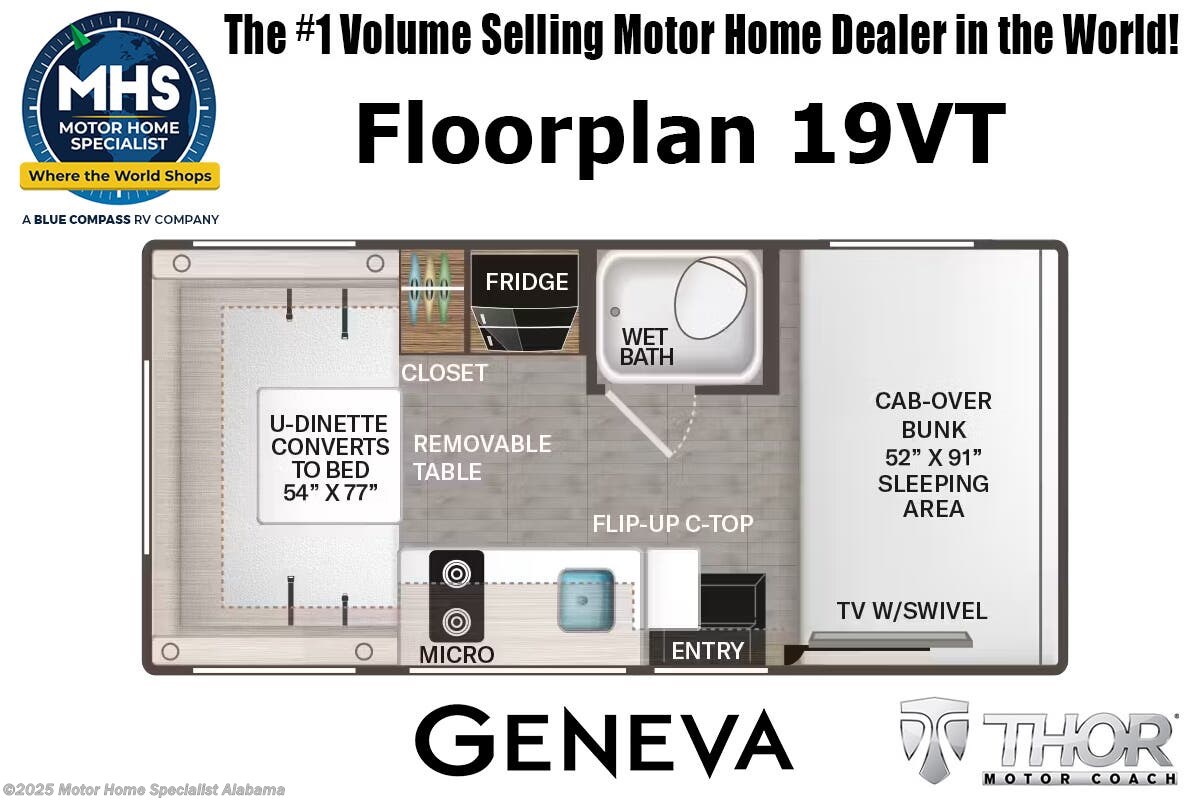 2026 Thor Motor Coach Geneva 19VT W/ SmoothTECH Suspension, Tankless Water Heater, AGS, Cali Collection & More Floorplan