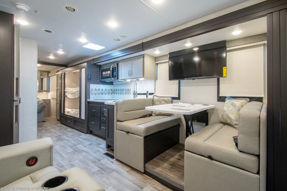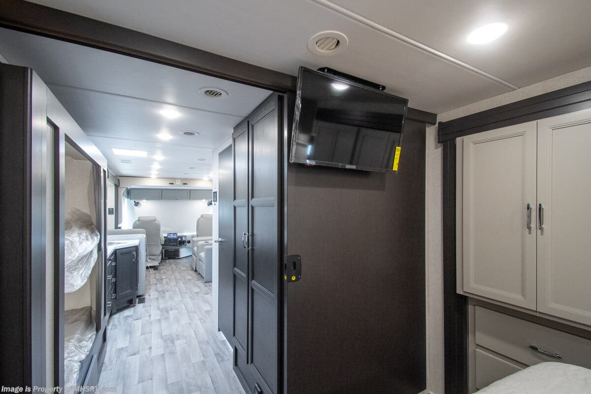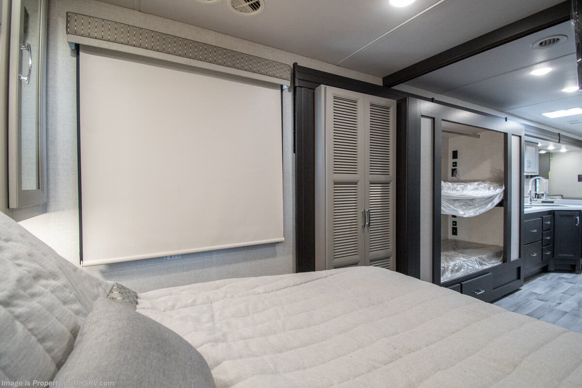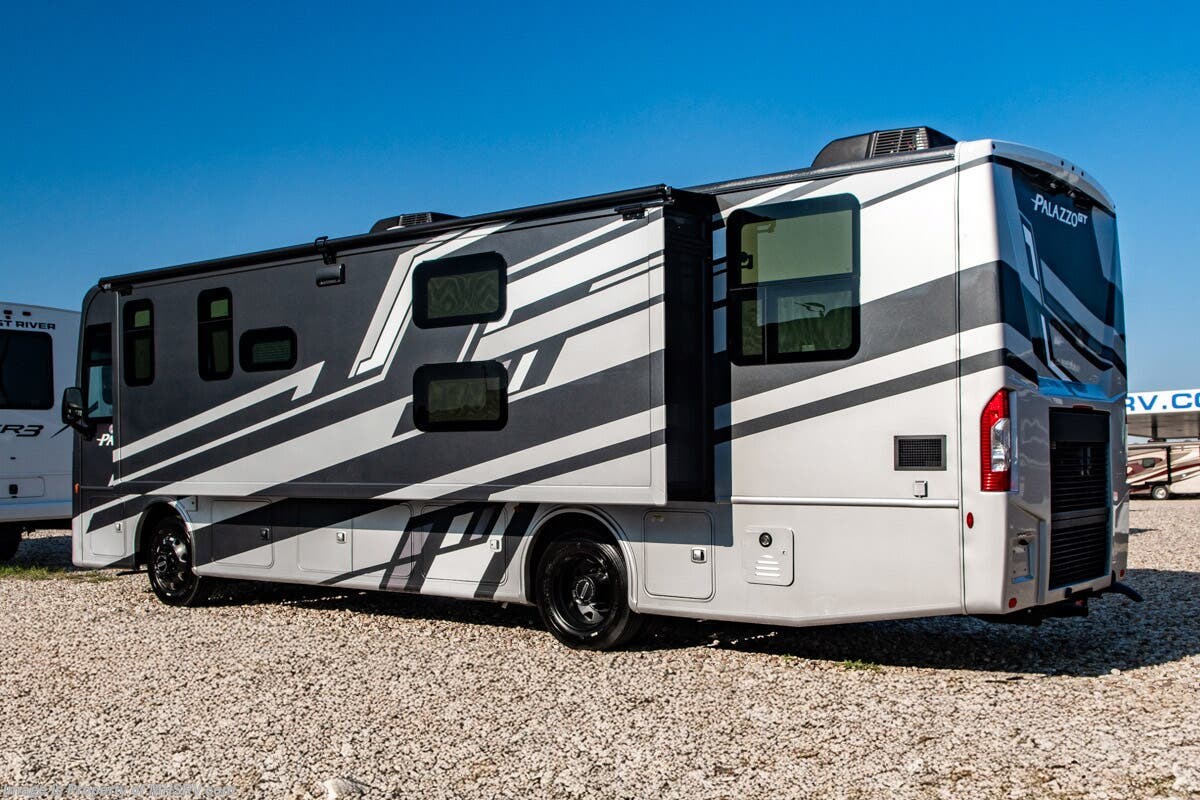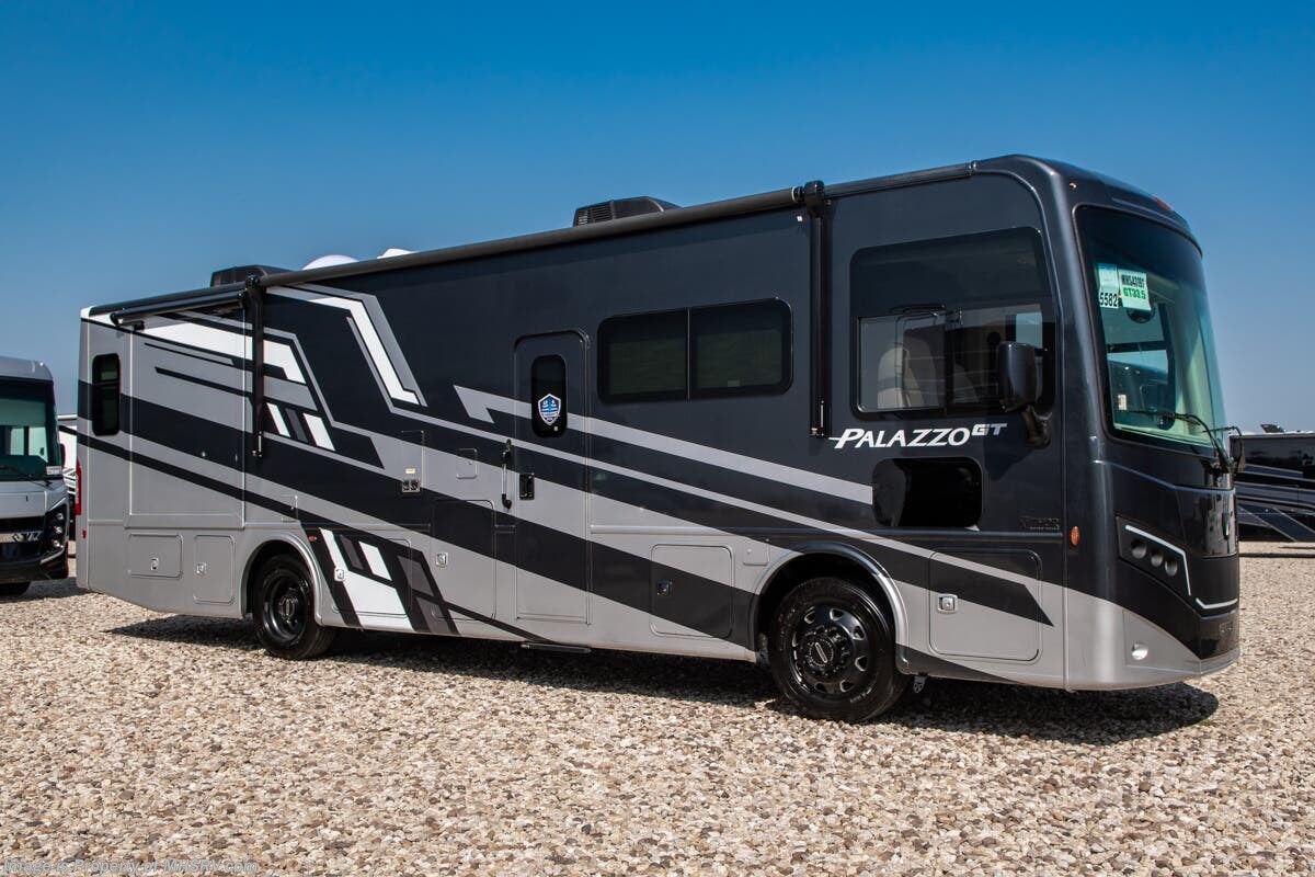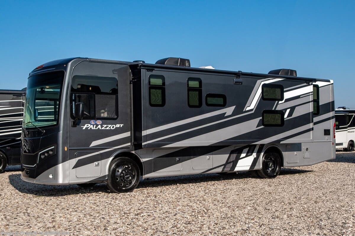 MSRP $309,372. The New 2026 Thor Motor Coach Palazzo GT Diesel Pusher Model 33.5 Bunk House features a power drop down loft, 100-watt solar charging system, 300 HP Cummins diesel engine with 660 lbs. of torque and a Freightliner XC chassis. Standard features include bluetooth soundbar & large LED TV in the exterior entertainment center, induction cooktop, touchscreen multiplex control system with smartphone app, Winegard ConnecT 2.0 4G/Wi-Fi system, 360 Siphon Vent cap and outside shower. This RV features the optional stealth package and theater seating with heat and massage. The Palazzo also features a power patio awning with integrated LED lighting, invisible front paint protection & front electric drop-down overhead loft, diesel generator, solid surface counters, power driver's seat, inverter, residential refrigerator, solid surface countertops, (2) ducted roof A/C units, 3-camera monitoring system, one piece windshield, fiberglass storage compartments, fully automatic hydraulic leveling system, automatic entry step and much more. Shop a huge selection of diesel pusher motorhomes all at 1 location! Choose from Thor Motor Coach Palazzo – Riviera – Aria – Fleetwood Discovery – Frontier – Holiday Rambler Endeavor – Nautica – Entegra Coach Reatta – Aspire and more. We also buy and sell quality pre-owned models such Newmar Mountain Aire – Dutch Star – New Aire – Ventana – Kountry Star – Northern Star - Allegro Bus – Phaeton – Allegro Red – Byway – Allegro Breeze – Winnebago Journey – Forza – Coachmen Sportscoach – Thor Venetian – Tuscany and much more. Visit MHSRV.com for our complete line-up and the sale prices that have made us the #1 volume selling motor home dealership in the world 12 years in a row! For additional details on this unit and our entire inventory including brochures, window sticker, videos, photos, reviews & testimonials as well as additional information about Motor Home Specialist and our manufacturers please visit us at MHSRV.com or call 800-335-6054. At Motor Home Specialist, we DO NOT charge any prep or orientation fees like you will find at other dealerships. All sale prices include a 200-point inspection, interior & exterior wash, detail service and a fully automated high-pressure rain booth test and coach wash that is a standout service unlike that of any other in the industry. You will also receive a thorough coach orientation with an MHSRV technician, a night stay in our delivery park featuring landscaped and covered pads with full hook-ups and much more! Read Thousands upon Thousands of 5-Star Reviews at MHSRV.com and See What They Had to Say About Their Experience at Motor Home Specialist. WHY PAY MORE? WHY SETTLE FOR LESS?