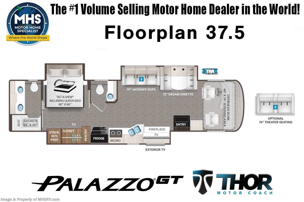 2026 Thor Motor Coach Palazzo GT 37.5 Bath & 1/2 RV W/ Fireplace, Theater Seats, Heated Tanks,  Stealth Pkg., 3 Camera Monitoring & More Floorplan