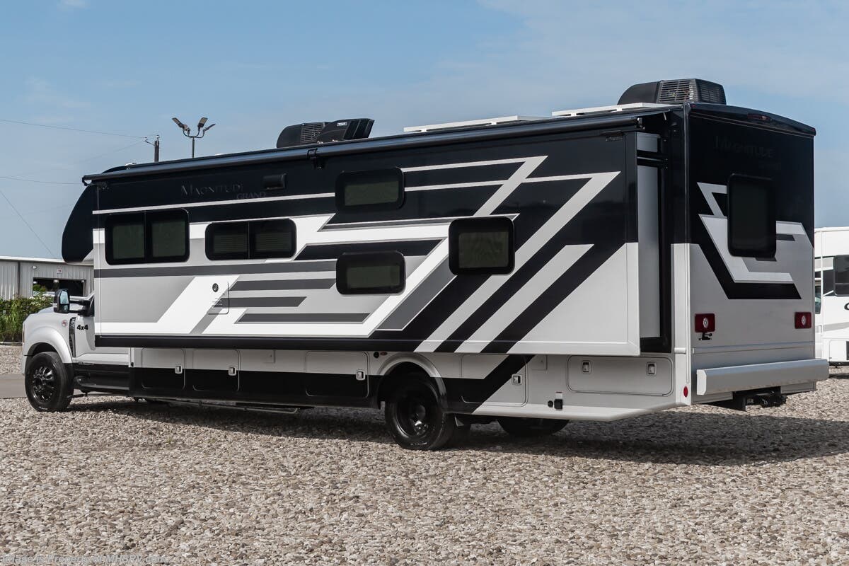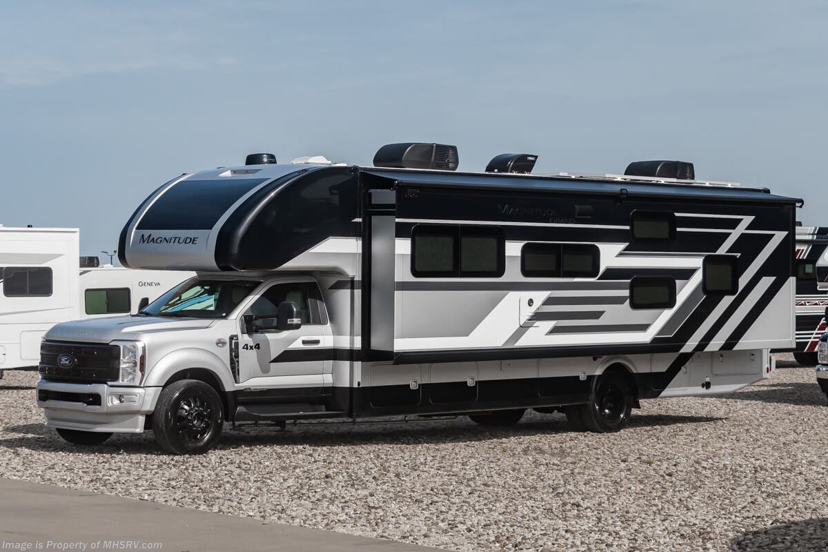 MSRP $289,149. New 2026 Thor Motor Coach Magnitude Grand R36 Super C is approximately 37 feet 2 inches in length with one slide-out and is powered by the Ford® 6.7L Power Stroke® V8 turbo diesel engine with 330HP, 950 lb.-ft. torque and 10-speed transmission with selectable drive modes including Tow/Haul, Eco, Deep Sand/Snow. Also includes automatic leveling jacks, fiberglass front cap, cabover sleeping, powered sky view shade in cab overhead, audible lane departure warning, pre-collision assist with automatic emergency braking and forward collision warning, adjustable accelerator and brake pedals, remote start, SYNC 4 enhanced voice recognition communications and entertainment system, matte black wheels, keyless cab entry, valve stem extenders, fiberglass running boards, bunk beds, king bed, full extension soft close metal ball-bearing drawer guides, residential refrigerator, power vent in kitchen, solid surface kitchen countertops, wireless phone charger, Smart TV’s throughout the RV, Winegard ConnecT, exterior kitchen, solar, tankless water heater, heat pads on the holding tanks and much more. Shop hundreds of motorhomes including Super C RVs at 1 location! Choose from Entegra Accolade – Accolade XL – Accolade XT – Esteem XL – Dynamax DX3 – Dynaquest XL – Europa – isata 5 - Thor Magnitude – Magnitude Grand – Omni – Omni Trail – Pasadena – Inception - East to West Bravado – Nexus Ghost – Wraith – Rebel – Verrado and much more. We also sell quality pre-owned models such as Jayco Seneca XT – Seneca – Seneca Prestige - Greyhawk XL – Tiffin Allegro Bay – Newmar Super Star – Supreme Aire – Renegade Veracruz – Valencia – Verona – Verona LE – Explorer – Coachmen Entourage and much more. Visit MHSRV.com for our complete line-up and the sale prices that have made us the #1 volume selling motor home dealership in the world 12 years in a row! For additional details on this unit and our entire inventory including brochures, window sticker, videos, photos, reviews & testimonials as well as additional information about Motor Home Specialist and our manufacturers please visit us at MHSRV.com or call 800-335-6054. At Motor Home Specialist, we DO NOT charge any prep or orientation fees like you will find at other dealerships. All sale prices include a 200-point inspection, interior & exterior wash, detail service and a fully automated high-pressure rain booth test and coach wash that is a standout service unlike that of any other in the industry. You will also receive a thorough coach orientation with an MHSRV technician, a night stay in our delivery park featuring landscaped and covered pads with full hook-ups and much more! Read Thousands upon Thousands of 5-Star Reviews at MHSRV.com and See What They Had to Say About Their Experience at Motor Home Specialist. WHY PAY MORE? WHY SETTLE FOR LESS?