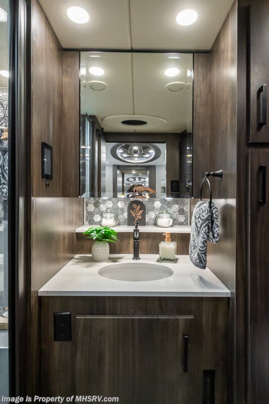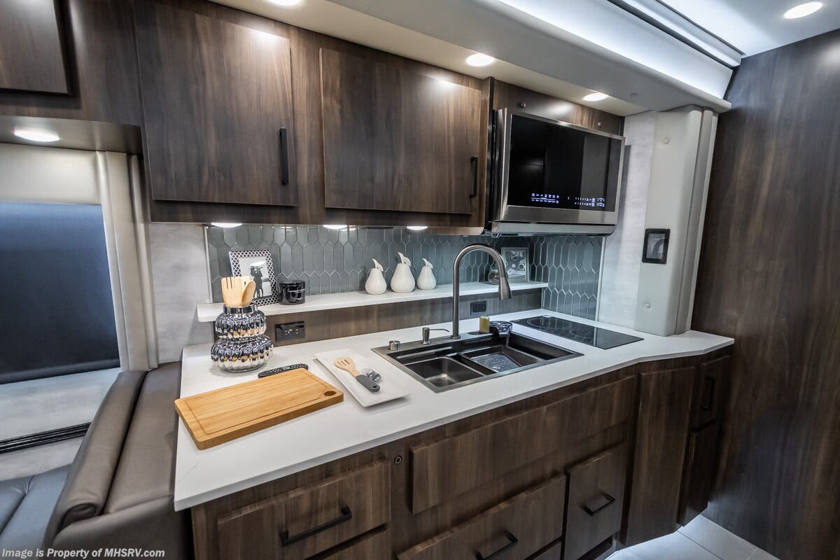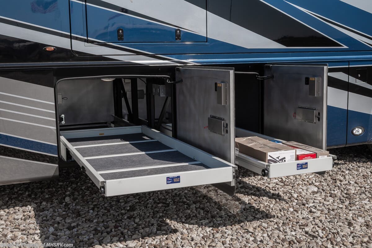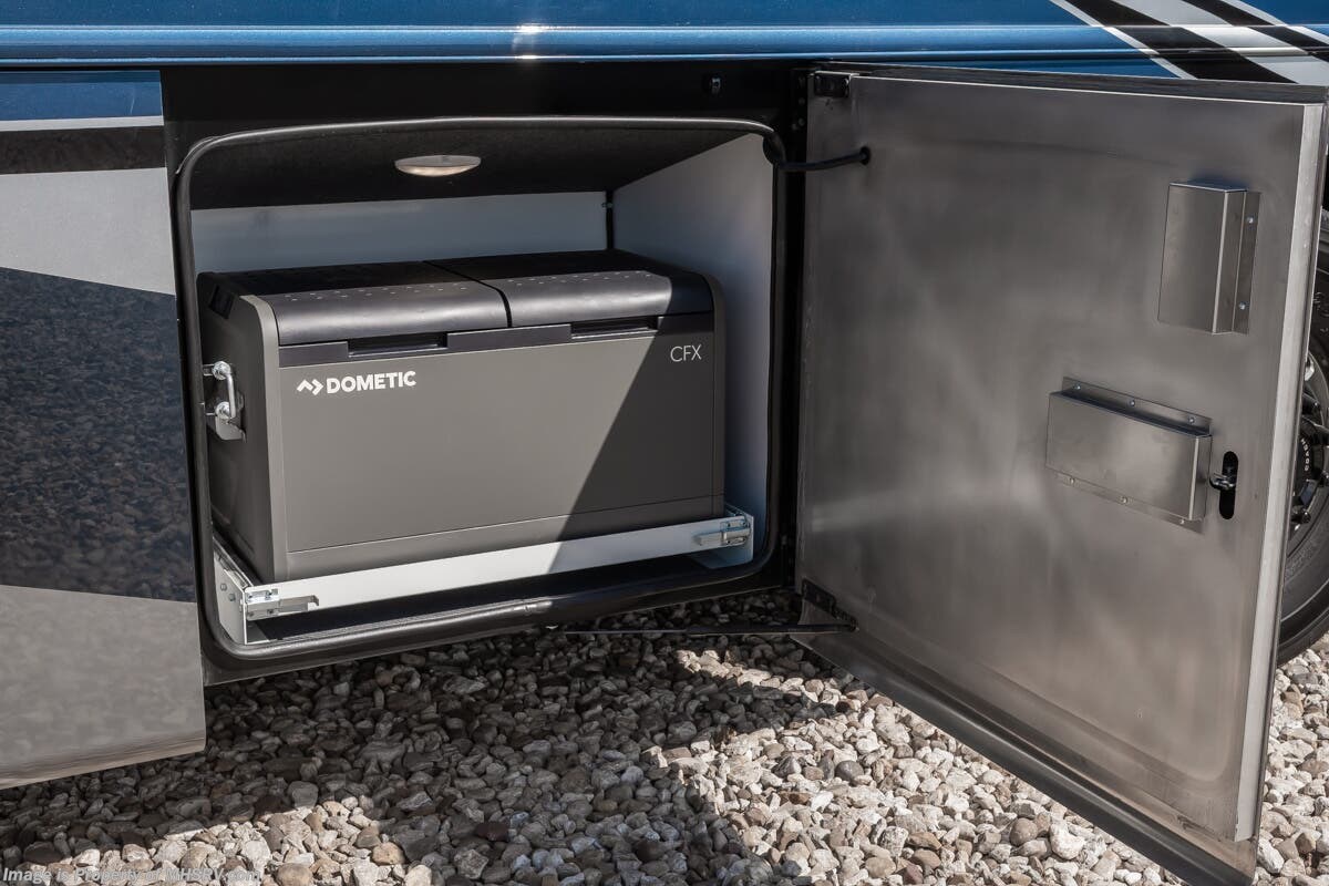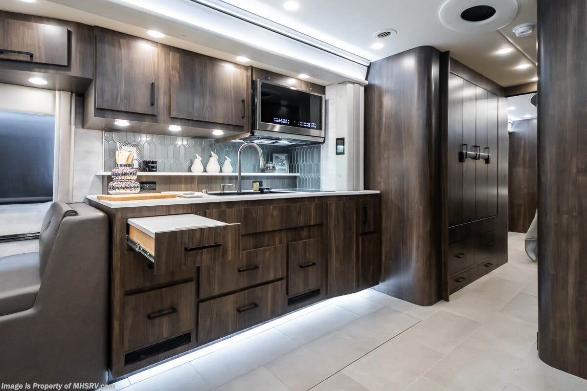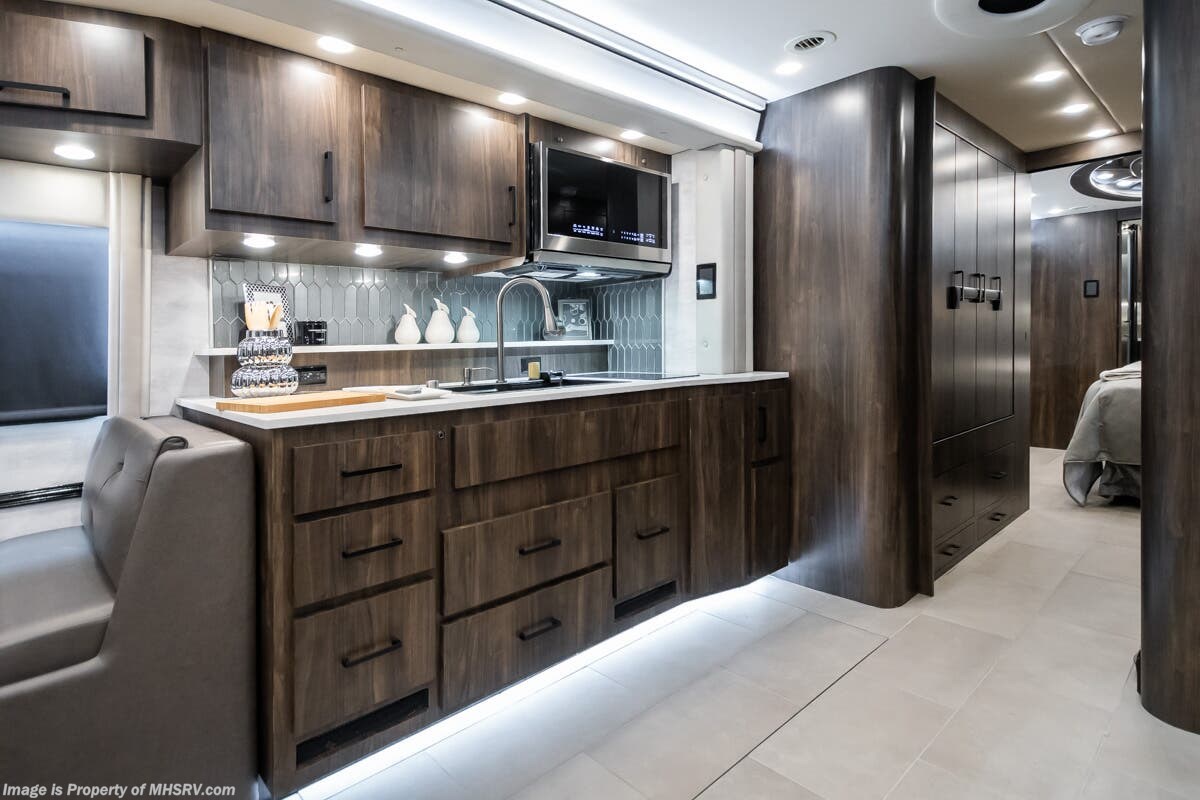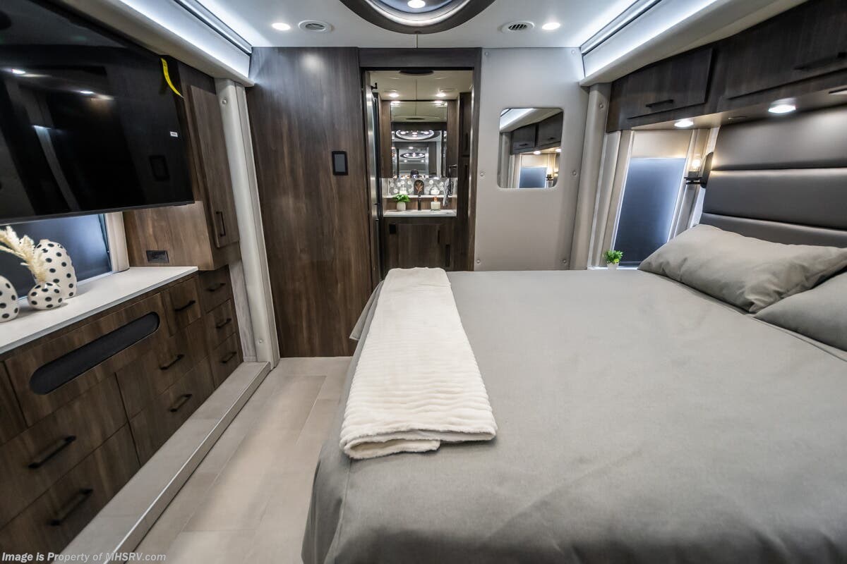 M.S.R.P. $1,428,180. The 2027 Foretravel Realm FL605 is, not only, the premium luxury Motor-Coach on the market today, but the only coach in the industry built on a Freightliner TravelRide IV-SL chassis offering incomparable ride, handling, and safety. This extraordinary motor coach is boasting the extraordinary Apex interior décor. The interior of the coach is paired perfectly with the Ares exterior paint scheme. You will also find a multi-function digital dash and instrumentation display system, the Premier Steer adjustable driver's assist system, a Navigation system with in-dash and additional passenger side monitor, Total Coach Monitoring System, tire pressure sensors, beautiful tile floors and back-splashes, quartz counter tops throughout, ultra-high-end appliances, LED accent lighting throughout, a beautiful curved step entry way, Braun extra heavy duty power entrance step, a designer entry door with LED accent lighting, iPad launch system, 4K TVs where applicable, upgraded cab stereo and sub-woofer, heated and cooled pilot and co-pilot seats, recessed and upgraded ceiling features in the galley, recessed cook top, Mobile Eye Collision Avoidance System, a "Bird's Eye View" camera system for the ultimate in coach visibility along with an additional 3-camera coach monitoring system with power rear camera, dual integrated power awnings, power entry door awning, exterior entertainment center, (2) electric sliding cargo trays, exterior freezer, chrome grill and accent package, (1) 3000W inverter, electric floor heat and (2) solar panels. You will know instantly, once behind the wheel of a Realm FS6, that this chassis is truly a cut above all other luxury motor coach chassis. It is powered by a Cummins X15 605HP diesel. You will also enjoy the ultimate in slide-out room fit and finish. These slides are undoubtedly head and shoulders above the competition. They feature pneumatic seals that provide a literal airtight seal completely around the entire slide-out room regardless of slide position for the premium in fit, finish, and function. For more details contact Motor Home Specialist today. - Realm, by definition, is a royal kingdom; a domain within which anything may occur, prevail or dominate. The Realm of Dreams is here and available exclusively at Motor Home Specialist, the #1 Volume Selling Motor Home Dealership in the World. Visit MHSRV.com or call 800-335-6054 for complete details, photos, videos, brochures, and more. The Foretravel Realm FS6... Your Kingdom Awaits.