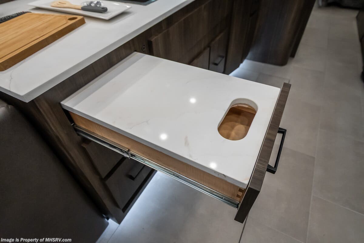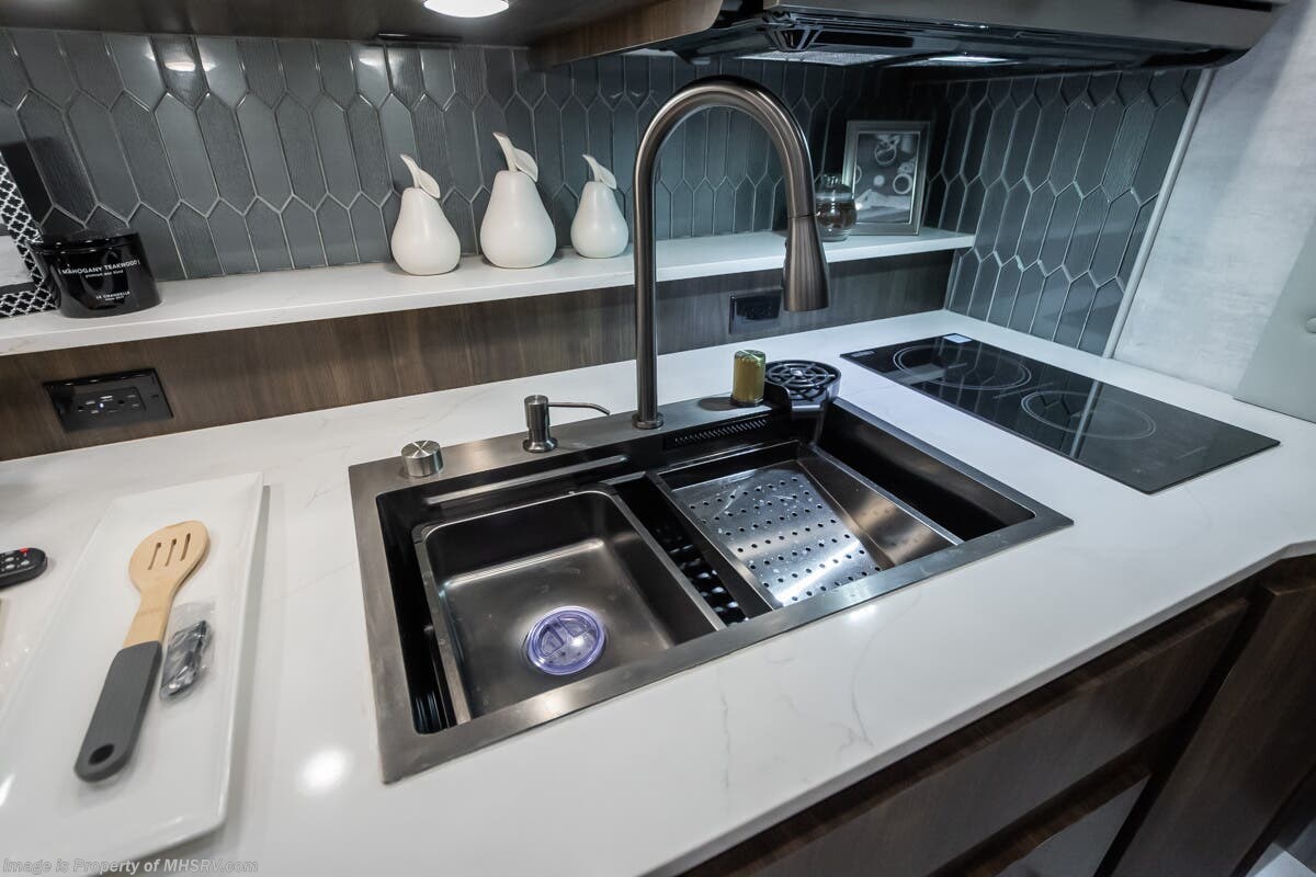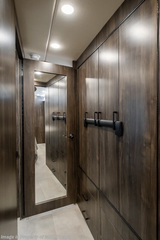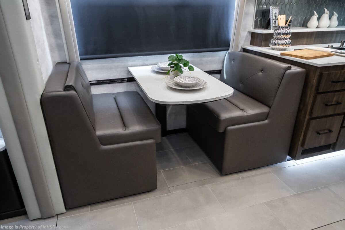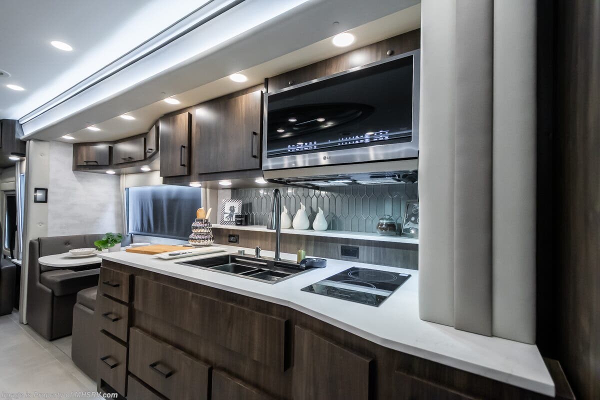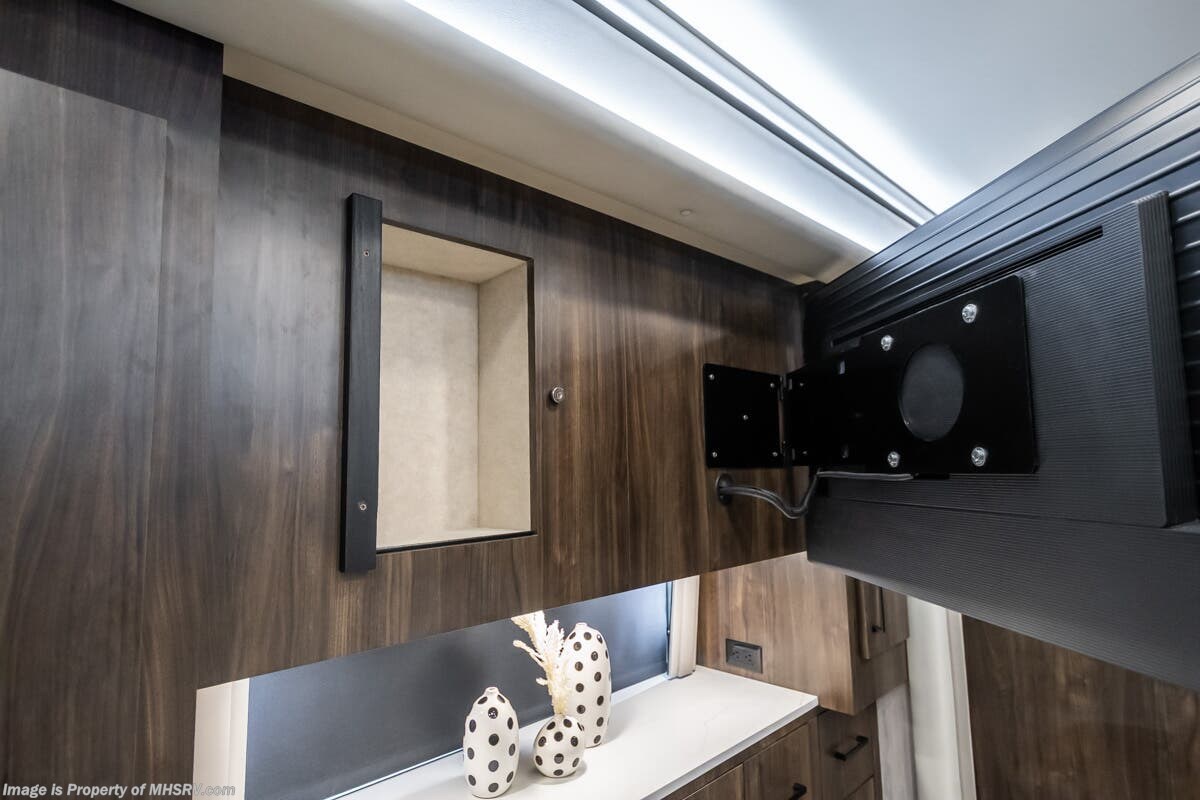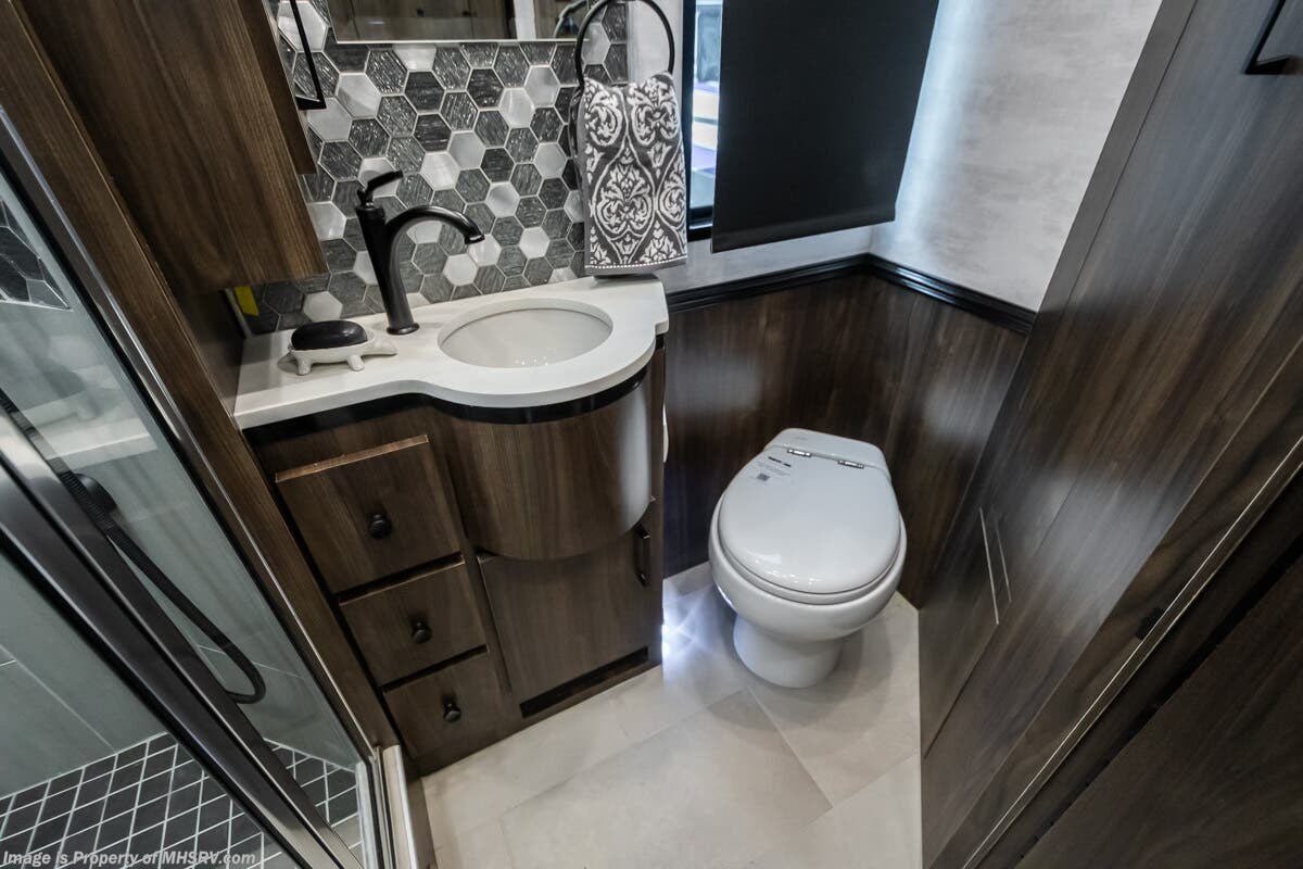 M.S.R.P. $1,428,180. The 2027 Foretravel Realm FL605 is, not only, the premium luxury Motor-Coach on the market today, but the only coach in the industry built on a Freightliner TravelRide IV-SL chassis offering incomparable ride, handling, and safety. This extraordinary motor coach is boasting the extraordinary Apex interior décor. The interior of the coach is paired perfectly with the Ares exterior paint scheme. You will also find a multi-function digital dash and instrumentation display system, the Premier Steer adjustable driver's assist system, a Navigation system with in-dash and additional passenger side monitor, Total Coach Monitoring System, tire pressure sensors, beautiful tile floors and back-splashes, quartz counter tops throughout, ultra-high-end appliances, LED accent lighting throughout, a beautiful curved step entry way, Braun extra heavy duty power entrance step, a designer entry door with LED accent lighting, iPad launch system, 4K TVs where applicable, upgraded cab stereo and sub-woofer, heated and cooled pilot and co-pilot seats, recessed and upgraded ceiling features in the galley, recessed cook top, Mobile Eye Collision Avoidance System, a "Bird's Eye View" camera system for the ultimate in coach visibility along with an additional 3-camera coach monitoring system with power rear camera, dual integrated power awnings, power entry door awning, exterior entertainment center, (2) electric sliding cargo trays, exterior freezer, chrome grill and accent package, (1) 3000W inverter, electric floor heat and (2) solar panels. You will know instantly, once behind the wheel of a Realm FS6, that this chassis is truly a cut above all other luxury motor coach chassis. It is powered by a Cummins X15 605HP diesel. You will also enjoy the ultimate in slide-out room fit and finish. These slides are undoubtedly head and shoulders above the competition. They feature pneumatic seals that provide a literal airtight seal completely around the entire slide-out room regardless of slide position for the premium in fit, finish, and function. For more details contact Motor Home Specialist today. - Realm, by definition, is a royal kingdom; a domain within which anything may occur, prevail or dominate. The Realm of Dreams is here and available exclusively at Motor Home Specialist, the #1 Volume Selling Motor Home Dealership in the World. Visit MHSRV.com or call 800-335-6054 for complete details, photos, videos, brochures, and more. The Foretravel Realm FS6... Your Kingdom Awaits.