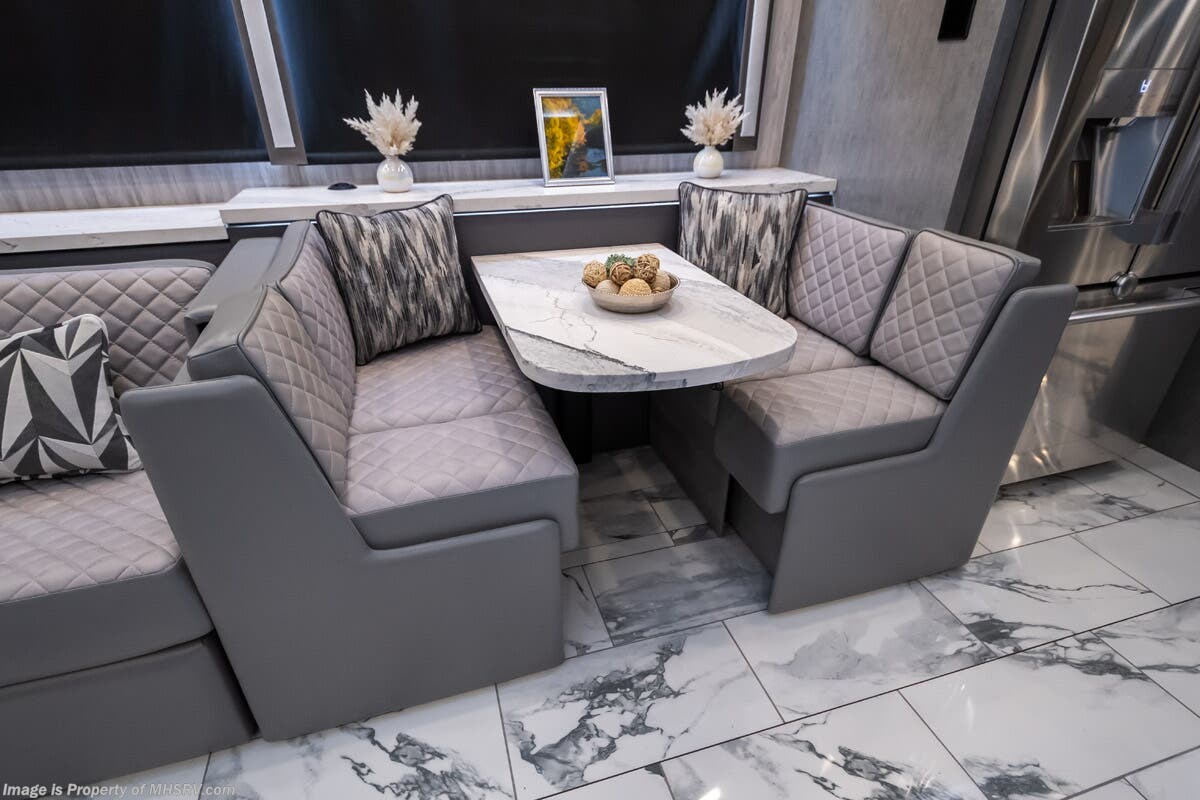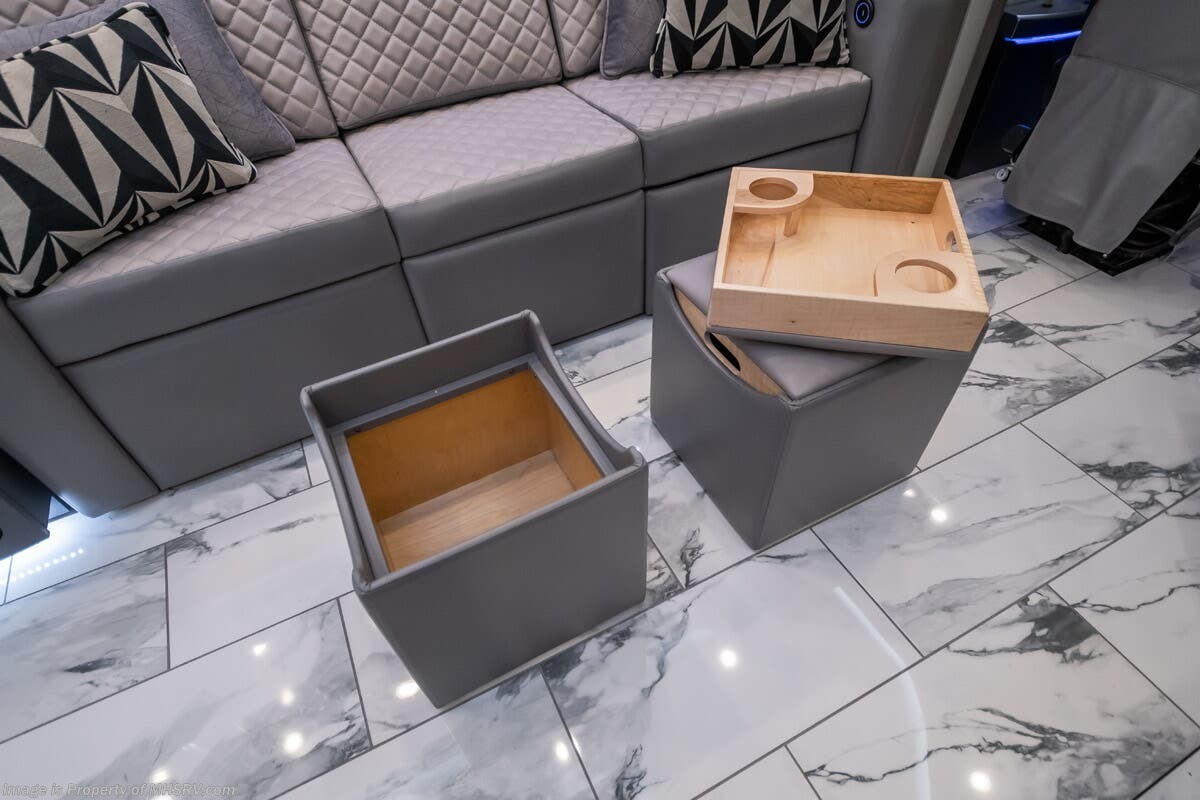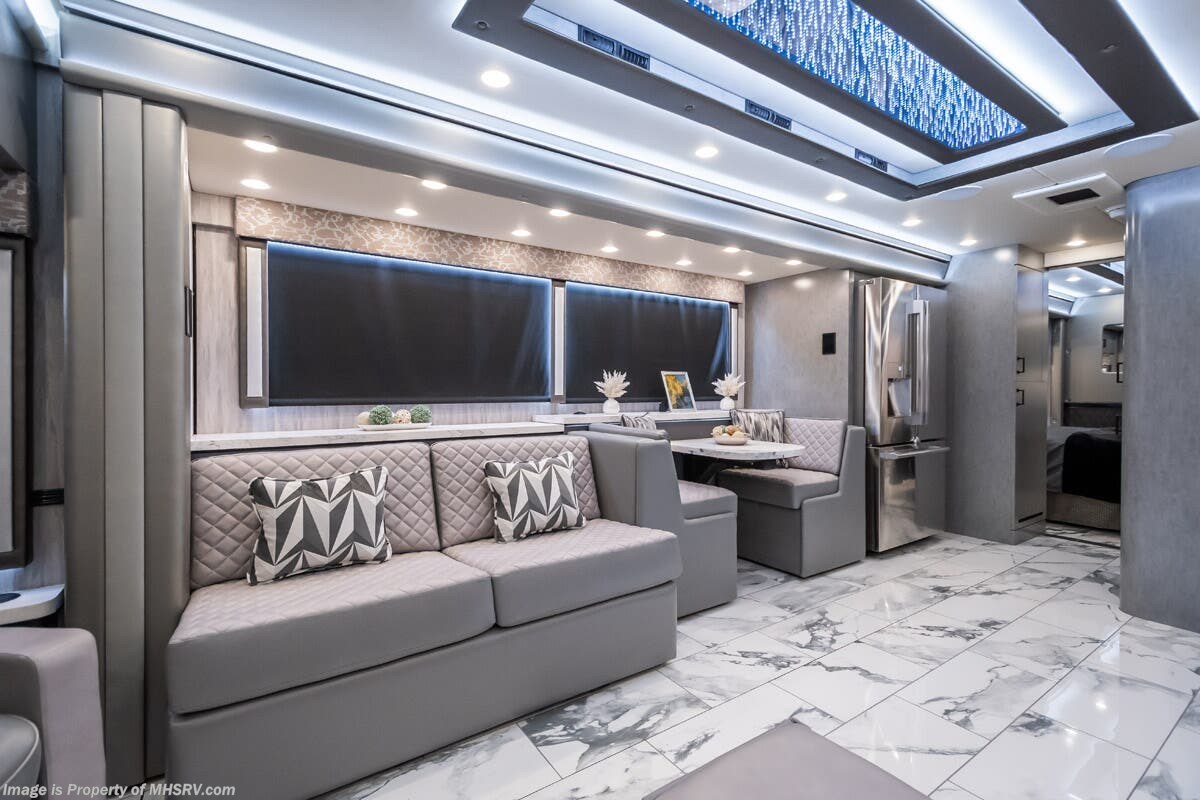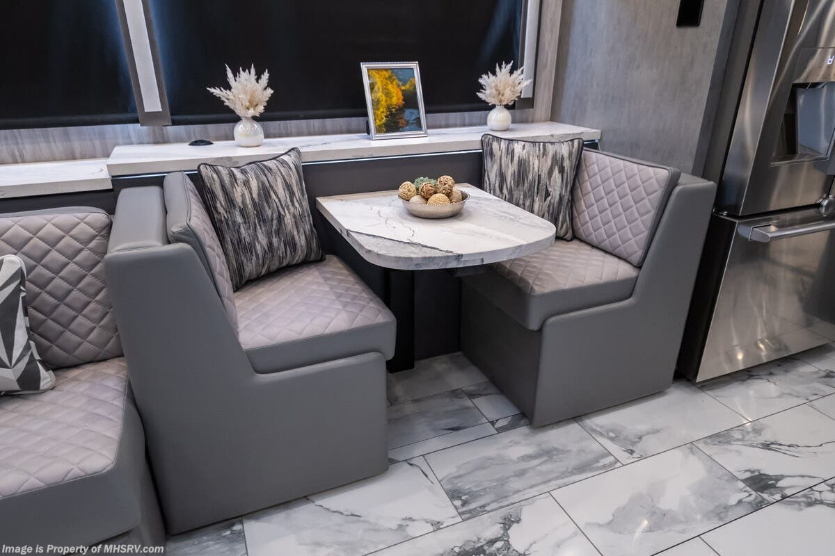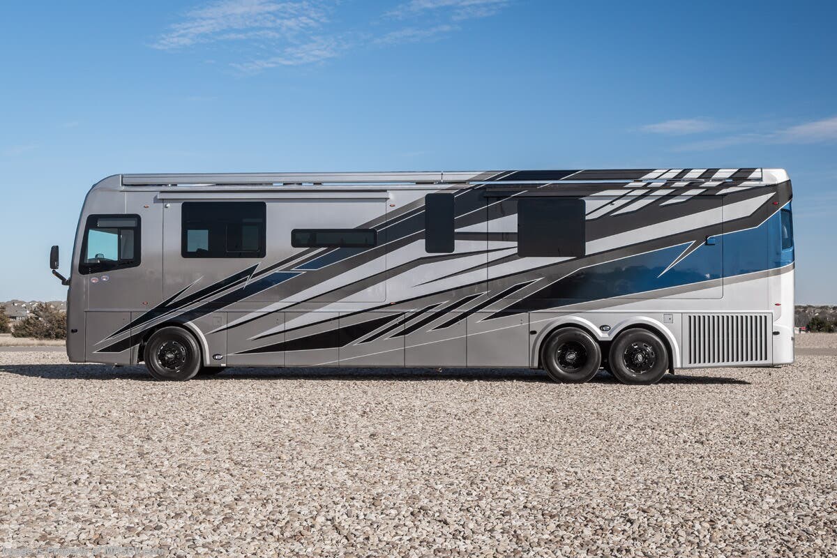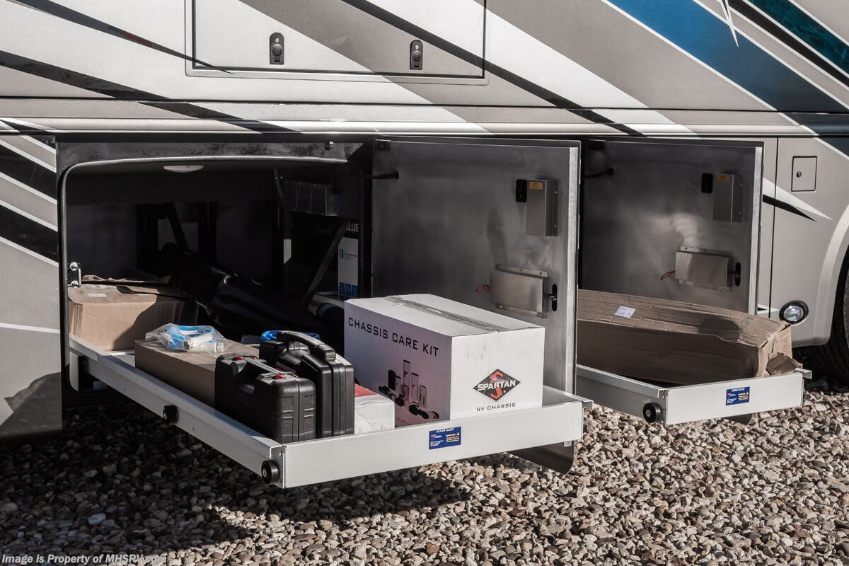 M.S.R.P. $1,823,850 - The 2027 Foretravel Realm Presidential takes the luxury motor coach market to all new heights and further propels the legacy of Foretravel. The Foretravel Realm stands alone as the finest motor coach of its kind available on the market today. It rides on Spartan's Premier K4 chassis, that is exclusive to Foretravel, offering incomparable ride, handling, and safety. This extraordinary motor coach is the Luxury Villa 7 (LV7) floor plan with the incomparable Aristocracy interior décor package that is paired perfectly with the all-new Titan exterior paint scheme that can only be found on the Realm Presidential Series. Shop a huge selection of luxury diesel pusher motorhomes all at 1 location! Choose from American Coach Eagle – Dream – Entegra Coach Cornerstone – Anthem – Aspire – Fleetwood Palisade – Discovery LXE – Holiday Rambler Armada – Foretravel Realm – Foretravel Realm Presidential and more. We also buy and sell quality pre-owned models such Newmar King Aire – Essex – London Aire – Mountain Aire – Dutch Star - Tiffin Zephyr – Allegro Bus – Phaeton – Prevost Liberty Lady – Millennium - Marathon – Newell and much more. Visit MHSRV.com for our complete line-up and the sale prices that have made us the #1 volume selling motor home dealership in the world 12 years in a row! The LV7 is highlighted by a massive power lift living room TV; a stack washer/dryer; a luxurious master bedroom with a Slumber Ease motorized luxury king size mattress and power lift LED TV; and an incredible, residential designed master bath with huge custom tile shower, beautiful sink basins, large pull-out medicine cabinet, private water closet, and large master linen & wardrobe closet. You will also find a true flat floor design throughout the Realm Presidential Series including, not only Foretravel's premium flat floor slide-out rooms but also the bedroom to master bath transition. The Presidential Series also boasts a 600D Aqua Hot Hydronic Heating system. You will find the premier Valid digital dash with VDC control, along with the Valid air ride suspension, electronic suspension control with self-leveling feature, driver and passenger coach monitors, tire pressure sensors, beautiful full tile floors and back-splashes, ultra-high-end quartz counter tops throughout, premium brand refrigerator and convection microwave, LED accent lighting throughout, a beautiful curved entry way step, Executive entrance steps, a designer entry door with LED accent lighting, 4K QLED TVs where applicable, upgraded cab stereo and sub-woofer, heated and cooled leather pilot and co-pilot seats, recessed and upgraded ceiling features in the galley and bedroom, recessed cook top, an 8-camera system including 6 perimeter 360 Delta Mobile cameras for the ultimate in coach visibility, dual integrated power awnings, power entry door awning, exterior entertainment center, (2) electric sliding cargo trays, exterior freezer, full coach and multi-color LED ground effect lighting package, unmistakable full body paint exterior with Armor-Coat sprayed protection below windshield, chrome grill and accent package, (2) 3000 watt inverters, Gold Heat floor tile heating system, solar panel package, dishwasher drawer, 5.1 surround sound in living room and StarLink antenna. The Spartan K4 chassis is not only massive in stature but boasts a best-in-class Independent Front Suspension system, a passive steering rear tag axle for incomparable handling and maneuverability as well as the Performance Choice® anti-roll bar with selectable drive modes, and automatic traction control. You will know instantly, once behind the wheel of a Realm, that this chassis is truly a cut above all other luxury motor coach chassis. It is powered by a Cummins 605HP diesel. You will also find additional advanced safety features on a Realm like a fire suppression system for the engine, Tyron Bead-Lock wheel safety bands, and steel construction rather than aluminum found in the competition. You will also enjoy the ultimate in slide-out room fit and finish. These slides are undoubtedly head and shoulders above the competition. They feature pneumatic seals that provide a literal airtight seal completely around the entire slide-out room regardless of slide position for the premium in fit, finish, and function. They also feature a power drop-down flooring system that gives the Realm not only a flat-floor when extended, but a true flat-floor when retracted as well. (No uneven floor surfaces, damaging rollers, poorly sealed rubber gaskets, etc.) The Realm also features a flat floor bedroom to master bath transition. You won't find that in the competition; Nor will you find a *3-YEAR or 50K MILE SPARTAN NO-COST MAINTENANCE PLAN INCLUDED - (A Realm Exclusive) and a *2-YEAR or 24K MILE LIMITED WARRANTY. For more details contact Motor Home Specialist today. REALM, by definition, is a royal kingdom; a domain within which anything may occur, prevail, or dominate. The Realm of Dreams is here and available at Motor Home Specialist, the #1 Volume Selling Motor Home Dealership in the World. Visit MHSRV.com or call 800-335-6054 for complete details, photos, videos, brochures, and more. The Foretravel Realm Presidential Series... Your Kingdom Awaits.