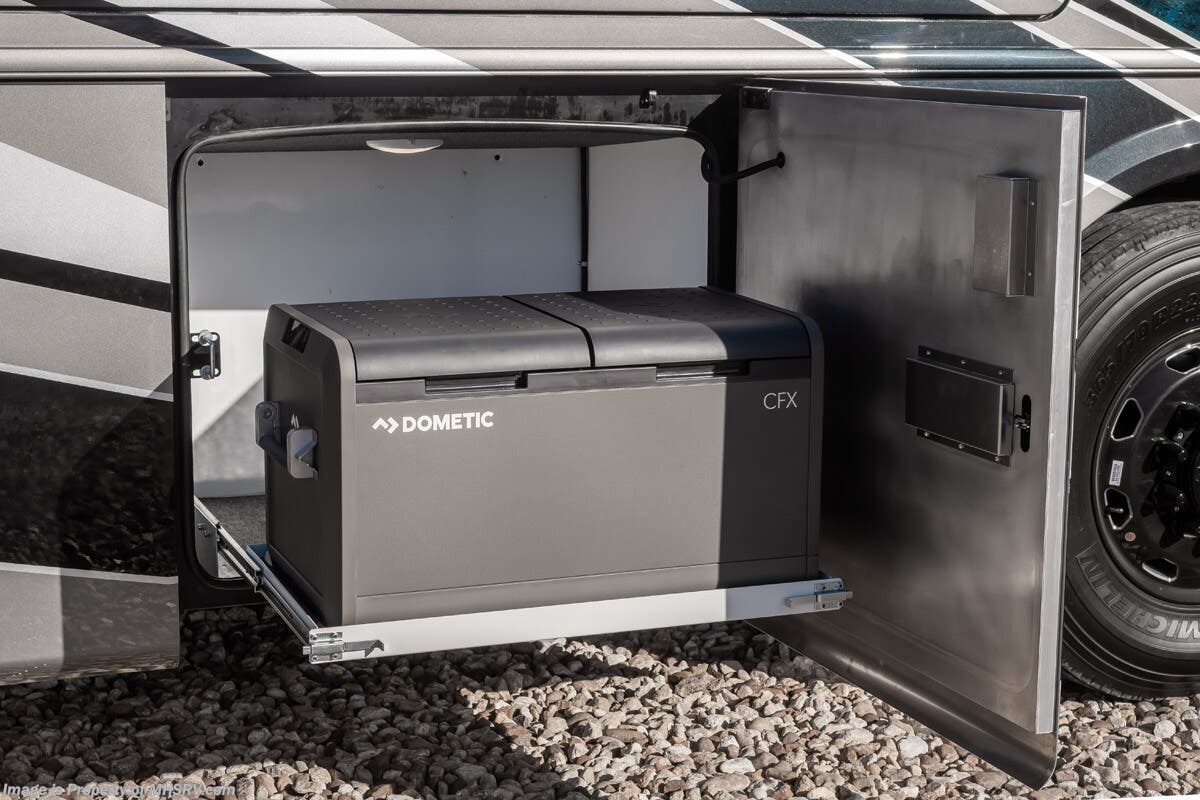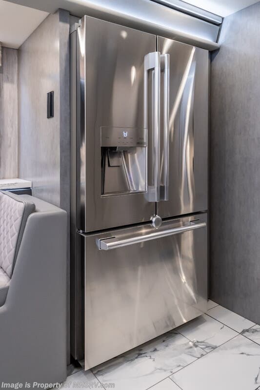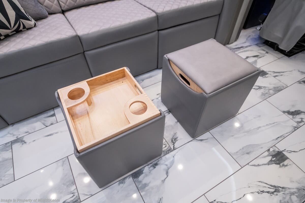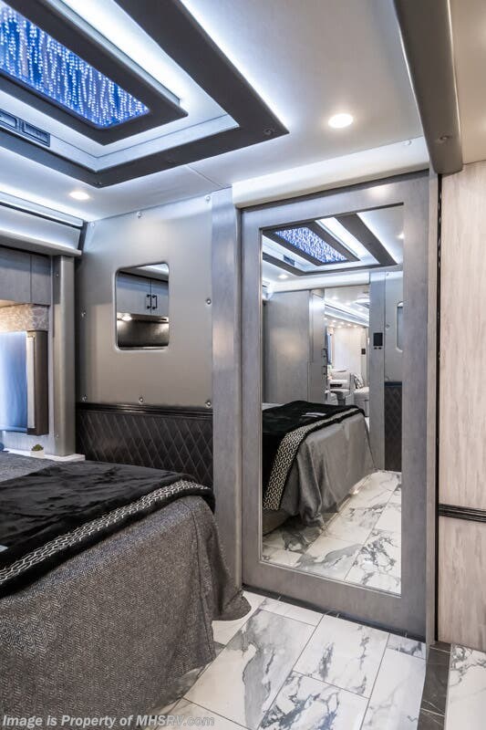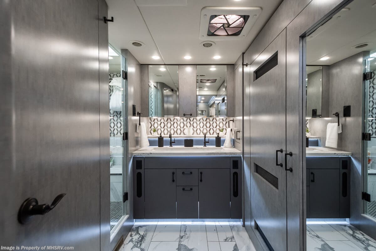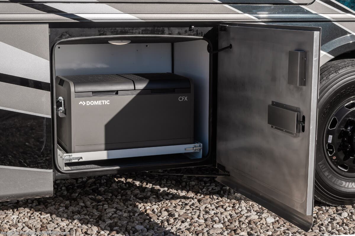 M.S.R.P. $1,823,850 - The 2027 Foretravel Realm Presidential takes the luxury motor coach market to all new heights and further propels the legacy of Foretravel. The Foretravel Realm stands alone as the finest motor coach of its kind available on the market today. It rides on Spartan's Premier K4 chassis, that is exclusive to Foretravel, offering incomparable ride, handling, and safety. This extraordinary motor coach is the Luxury Villa 7 (LV7) floor plan with the incomparable Aristocracy interior décor package that is paired perfectly with the all-new Titan exterior paint scheme that can only be found on the Realm Presidential Series. Shop a huge selection of luxury diesel pusher motorhomes all at 1 location! Choose from American Coach Eagle – Dream – Entegra Coach Cornerstone – Anthem – Aspire – Fleetwood Palisade – Discovery LXE – Holiday Rambler Armada – Foretravel Realm – Foretravel Realm Presidential and more. We also buy and sell quality pre-owned models such Newmar King Aire – Essex – London Aire – Mountain Aire – Dutch Star - Tiffin Zephyr – Allegro Bus – Phaeton – Prevost Liberty Lady – Millennium - Marathon – Newell and much more. Visit MHSRV.com for our complete line-up and the sale prices that have made us the #1 volume selling motor home dealership in the world 12 years in a row! The LV7 is highlighted by a massive power lift living room TV; a stack washer/dryer; a luxurious master bedroom with a Slumber Ease motorized luxury king size mattress and power lift LED TV; and an incredible, residential designed master bath with huge custom tile shower, beautiful sink basins, large pull-out medicine cabinet, private water closet, and large master linen & wardrobe closet. You will also find a true flat floor design throughout the Realm Presidential Series including, not only Foretravel's premium flat floor slide-out rooms but also the bedroom to master bath transition. The Presidential Series also boasts a 600D Aqua Hot Hydronic Heating system. You will find the premier Valid digital dash with VDC control, along with the Valid air ride suspension, electronic suspension control with self-leveling feature, driver and passenger coach monitors, tire pressure sensors, beautiful full tile floors and back-splashes, ultra-high-end quartz counter tops throughout, premium brand refrigerator and convection microwave, LED accent lighting throughout, a beautiful curved entry way step, Executive entrance steps, a designer entry door with LED accent lighting, 4K QLED TVs where applicable, upgraded cab stereo and sub-woofer, heated and cooled leather pilot and co-pilot seats, recessed and upgraded ceiling features in the galley and bedroom, recessed cook top, an 8-camera system including 6 perimeter 360 Delta Mobile cameras for the ultimate in coach visibility, dual integrated power awnings, power entry door awning, exterior entertainment center, (2) electric sliding cargo trays, exterior freezer, full coach and multi-color LED ground effect lighting package, unmistakable full body paint exterior with Armor-Coat sprayed protection below windshield, chrome grill and accent package, (2) 3000 watt inverters, Gold Heat floor tile heating system, solar panel package, dishwasher drawer, 5.1 surround sound in living room and StarLink antenna. The Spartan K4 chassis is not only massive in stature but boasts a best-in-class Independent Front Suspension system, a passive steering rear tag axle for incomparable handling and maneuverability as well as the Performance Choice® anti-roll bar with selectable drive modes, and automatic traction control. You will know instantly, once behind the wheel of a Realm, that this chassis is truly a cut above all other luxury motor coach chassis. It is powered by a Cummins 605HP diesel. You will also find additional advanced safety features on a Realm like a fire suppression system for the engine, Tyron Bead-Lock wheel safety bands, and steel construction rather than aluminum found in the competition. You will also enjoy the ultimate in slide-out room fit and finish. These slides are undoubtedly head and shoulders above the competition. They feature pneumatic seals that provide a literal airtight seal completely around the entire slide-out room regardless of slide position for the premium in fit, finish, and function. They also feature a power drop-down flooring system that gives the Realm not only a flat-floor when extended, but a true flat-floor when retracted as well. (No uneven floor surfaces, damaging rollers, poorly sealed rubber gaskets, etc.) The Realm also features a flat floor bedroom to master bath transition. You won't find that in the competition; Nor will you find a *3-YEAR or 50K MILE SPARTAN NO-COST MAINTENANCE PLAN INCLUDED - (A Realm Exclusive) and a *2-YEAR or 24K MILE LIMITED WARRANTY. For more details contact Motor Home Specialist today. REALM, by definition, is a royal kingdom; a domain within which anything may occur, prevail, or dominate. The Realm of Dreams is here and available at Motor Home Specialist, the #1 Volume Selling Motor Home Dealership in the World. Visit MHSRV.com or call 800-335-6054 for complete details, photos, videos, brochures, and more. The Foretravel Realm Presidential Series... Your Kingdom Awaits.