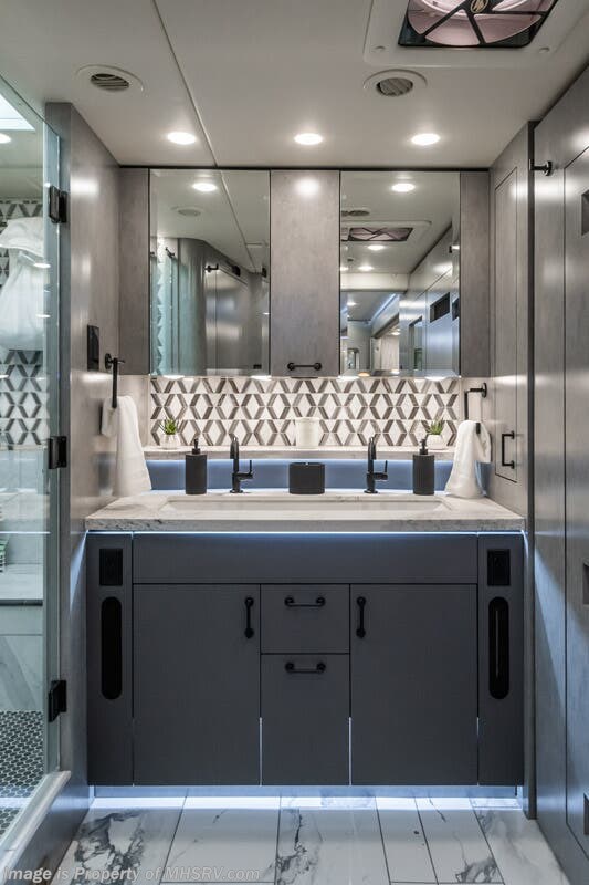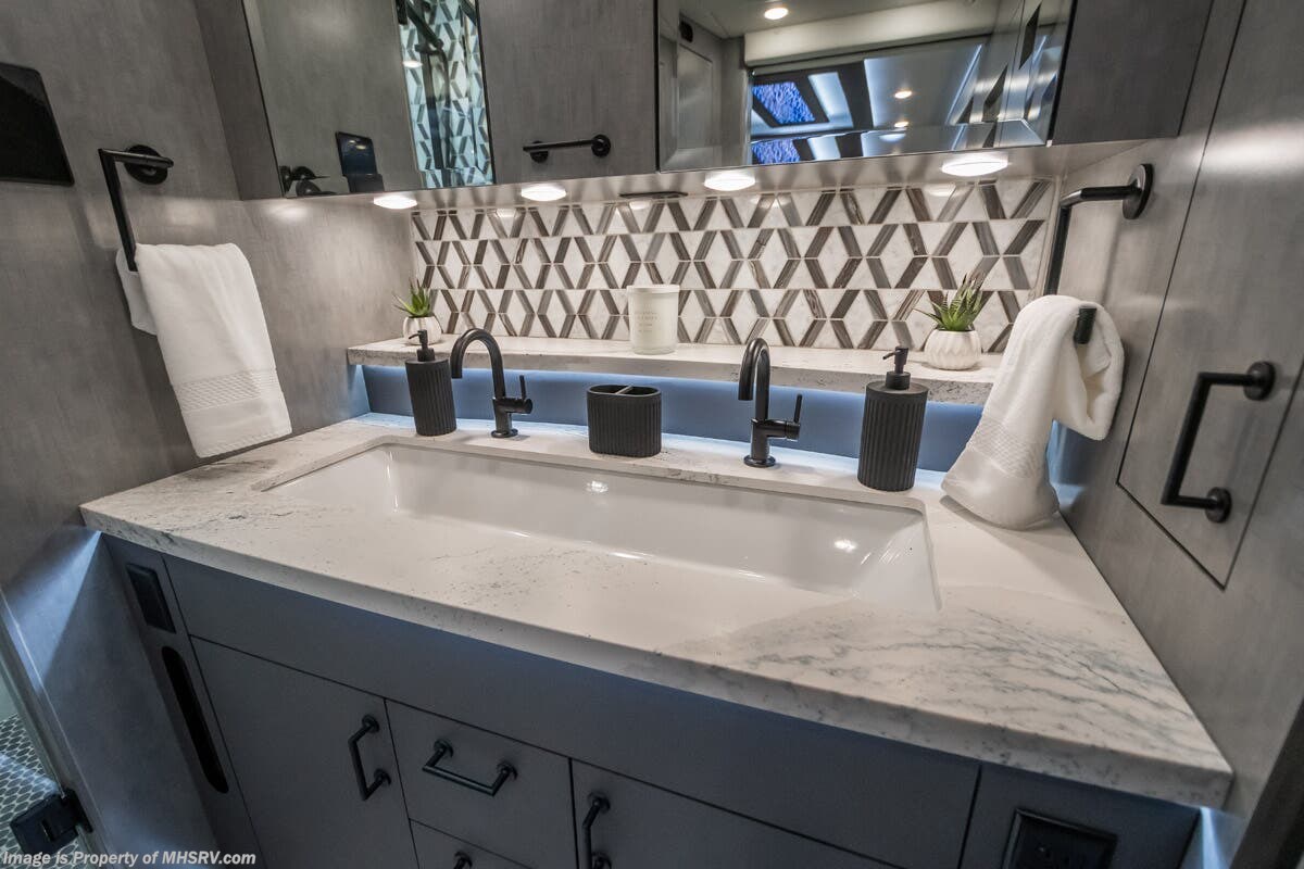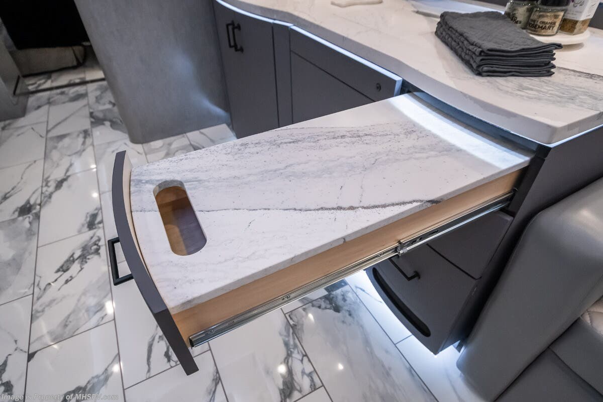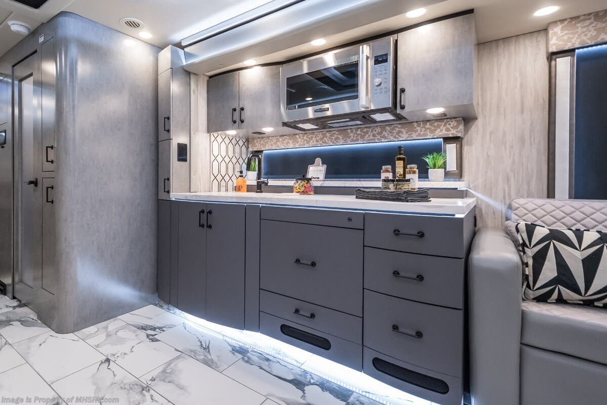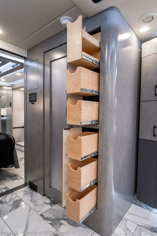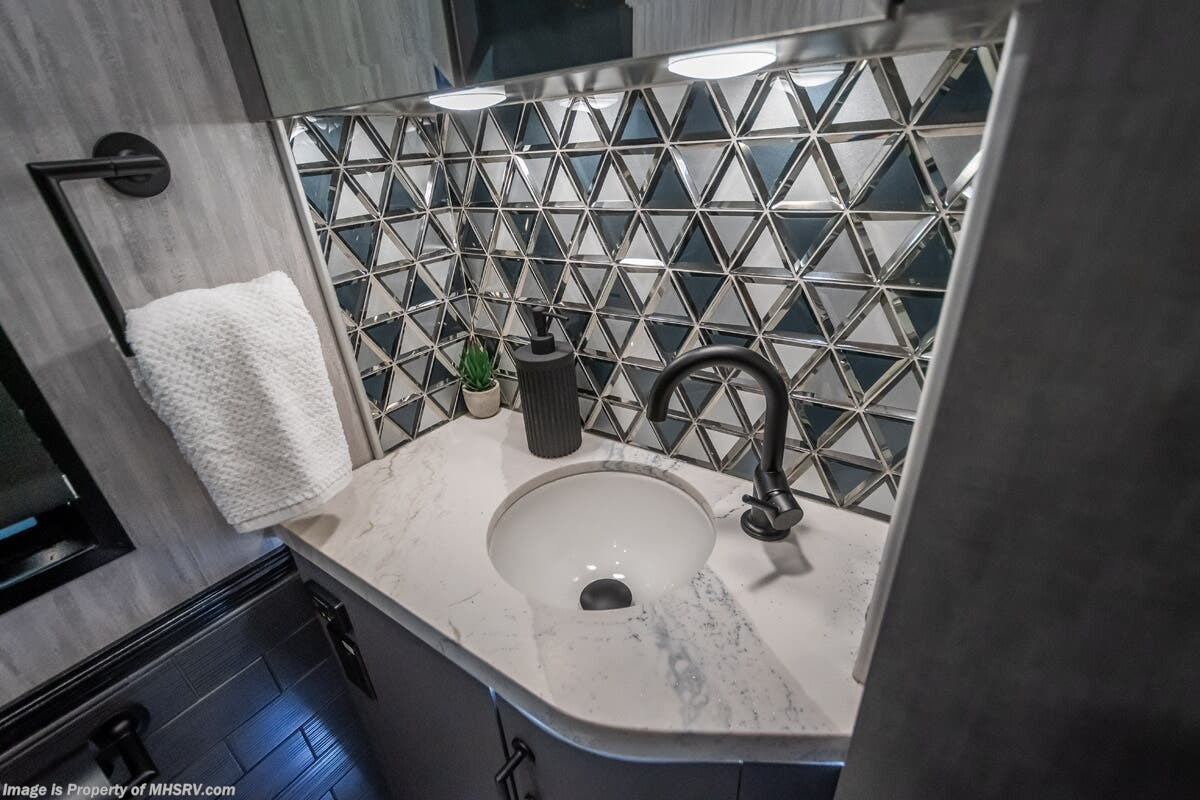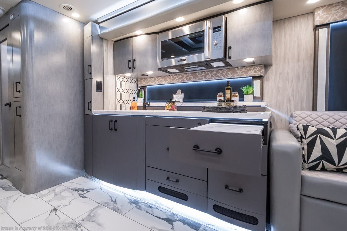 M.S.R.P. $1,823,850 - The 2027 Foretravel Realm Presidential takes the luxury motor coach market to all new heights and further propels the legacy of Foretravel. The Foretravel Realm stands alone as the finest motor coach of its kind available on the market today. It rides on Spartan's Premier K4 chassis, that is exclusive to Foretravel, offering incomparable ride, handling, and safety. This extraordinary motor coach is the Luxury Villa 7 (LV7) floor plan with the incomparable Aristocracy interior décor package that is paired perfectly with the all-new Titan exterior paint scheme that can only be found on the Realm Presidential Series. Shop a huge selection of luxury diesel pusher motorhomes all at 1 location! Choose from American Coach Eagle – Dream – Entegra Coach Cornerstone – Anthem – Aspire – Fleetwood Palisade – Discovery LXE – Holiday Rambler Armada – Foretravel Realm – Foretravel Realm Presidential and more. We also buy and sell quality pre-owned models such Newmar King Aire – Essex – London Aire – Mountain Aire – Dutch Star - Tiffin Zephyr – Allegro Bus – Phaeton – Prevost Liberty Lady – Millennium - Marathon – Newell and much more. Visit MHSRV.com for our complete line-up and the sale prices that have made us the #1 volume selling motor home dealership in the world 12 years in a row! The LV7 is highlighted by a massive power lift living room TV; a stack washer/dryer; a luxurious master bedroom with a Slumber Ease motorized luxury king size mattress and power lift LED TV; and an incredible, residential designed master bath with huge custom tile shower, beautiful sink basins, large pull-out medicine cabinet, private water closet, and large master linen & wardrobe closet. You will also find a true flat floor design throughout the Realm Presidential Series including, not only Foretravel's premium flat floor slide-out rooms but also the bedroom to master bath transition. The Presidential Series also boasts a 600D Aqua Hot Hydronic Heating system. You will find the premier Valid digital dash with VDC control, along with the Valid air ride suspension, electronic suspension control with self-leveling feature, driver and passenger coach monitors, tire pressure sensors, beautiful full tile floors and back-splashes, ultra-high-end quartz counter tops throughout, premium brand refrigerator and convection microwave, LED accent lighting throughout, a beautiful curved entry way step, Executive entrance steps, a designer entry door with LED accent lighting, 4K QLED TVs where applicable, upgraded cab stereo and sub-woofer, heated and cooled leather pilot and co-pilot seats, recessed and upgraded ceiling features in the galley and bedroom, recessed cook top, an 8-camera system including 6 perimeter 360 Delta Mobile cameras for the ultimate in coach visibility, dual integrated power awnings, power entry door awning, exterior entertainment center, (2) electric sliding cargo trays, exterior freezer, full coach and multi-color LED ground effect lighting package, unmistakable full body paint exterior with Armor-Coat sprayed protection below windshield, chrome grill and accent package, (2) 3000 watt inverters, Gold Heat floor tile heating system, solar panel package, dishwasher drawer, 5.1 surround sound in living room and StarLink antenna. The Spartan K4 chassis is not only massive in stature but boasts a best-in-class Independent Front Suspension system, a passive steering rear tag axle for incomparable handling and maneuverability as well as the Performance Choice® anti-roll bar with selectable drive modes, and automatic traction control. You will know instantly, once behind the wheel of a Realm, that this chassis is truly a cut above all other luxury motor coach chassis. It is powered by a Cummins 605HP diesel. You will also find additional advanced safety features on a Realm like a fire suppression system for the engine, Tyron Bead-Lock wheel safety bands, and steel construction rather than aluminum found in the competition. You will also enjoy the ultimate in slide-out room fit and finish. These slides are undoubtedly head and shoulders above the competition. They feature pneumatic seals that provide a literal airtight seal completely around the entire slide-out room regardless of slide position for the premium in fit, finish, and function. They also feature a power drop-down flooring system that gives the Realm not only a flat-floor when extended, but a true flat-floor when retracted as well. (No uneven floor surfaces, damaging rollers, poorly sealed rubber gaskets, etc.) The Realm also features a flat floor bedroom to master bath transition. You won't find that in the competition; Nor will you find a *3-YEAR or 50K MILE SPARTAN NO-COST MAINTENANCE PLAN INCLUDED - (A Realm Exclusive) and a *2-YEAR or 24K MILE LIMITED WARRANTY. For more details contact Motor Home Specialist today. REALM, by definition, is a royal kingdom; a domain within which anything may occur, prevail, or dominate. The Realm of Dreams is here and available at Motor Home Specialist, the #1 Volume Selling Motor Home Dealership in the World. Visit MHSRV.com or call 800-335-6054 for complete details, photos, videos, brochures, and more. The Foretravel Realm Presidential Series... Your Kingdom Awaits.