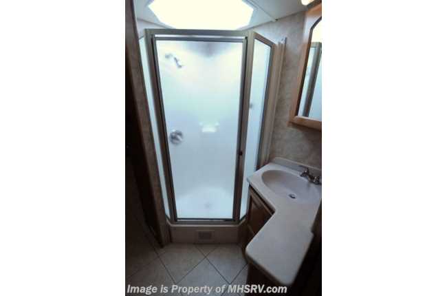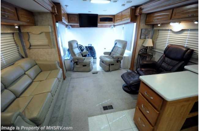 /FL 4/15/14 **Consignment** Used Forest River RV for Sale- 2006 Forest River Charleston 400QS with 4 slides and 45,507 miles. This RV is approximately 39 feet in length with a 330HP Caterpillar engine, Freightliner raised rail chassis, Winegard slimline Hi Definition satellite system, power mirrors with heat, 8KW Power Tech generator with AGS on a power slide, power patio and door awnings, window awnings, slide-out room toppers, gas/electric water heater, pass-thru storage with side swing baggage doors, full length slide-out cargo tray, aluminum wheels, automatic hydraulic leveling system, back up camera, Magnum inverter, ceramic tile floors, dual pane windows, convection microwave, solid surface counter, 2 ducted roof A/Cs with heat pumps and 2 LCD TVs. For additional information and photos please visit Motor Home Specialist at www.MHSRV .com or call 800-335-6054.