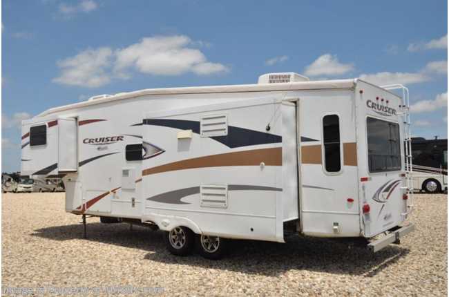 /NM 7-11-16 Used Crossroads Fifth Wheel RV for Sale- 2010 Crossroads Cruiser 30SK is approximately 33 feet 4 inches in length with 3 slides, power patio awning, water heater, 50 amp service, pass-thru storage, aluminum wheels, exterior shower, roof ladder, exterior speakers, day/night shades, Fantastic Vent, ceiling fan, fireplace, microwave, 3 burner range with oven, solid surface counter, sink covers, all in 1 bath, glass door shower, 2 ducted A/Cs and much more. For additional information and photos please visit Motor Home Specialist at www.MHSRV.com or call 800-335-6054.